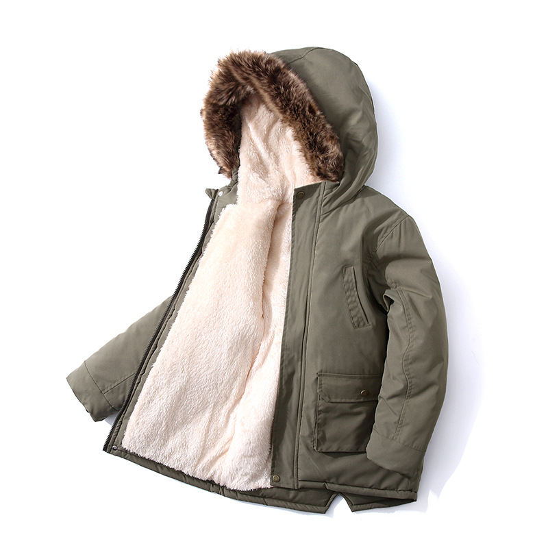 冬季新款男童棉服小中大童装儿童大口袋风衣连帽外套加绒加厚棉衣