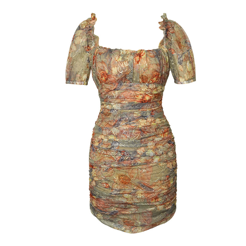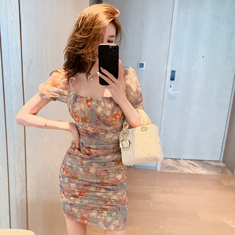 复古碎花连衣裙子女夏季茶歇法式别致漂亮小个子显瘦包臀裙20426