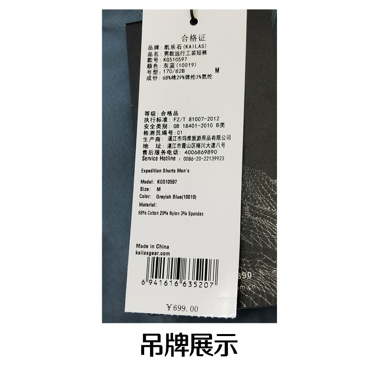 KAILAS凱樂石KG510597戶外男款遠行工裝短褲透氣速幹休閒多口袋褲