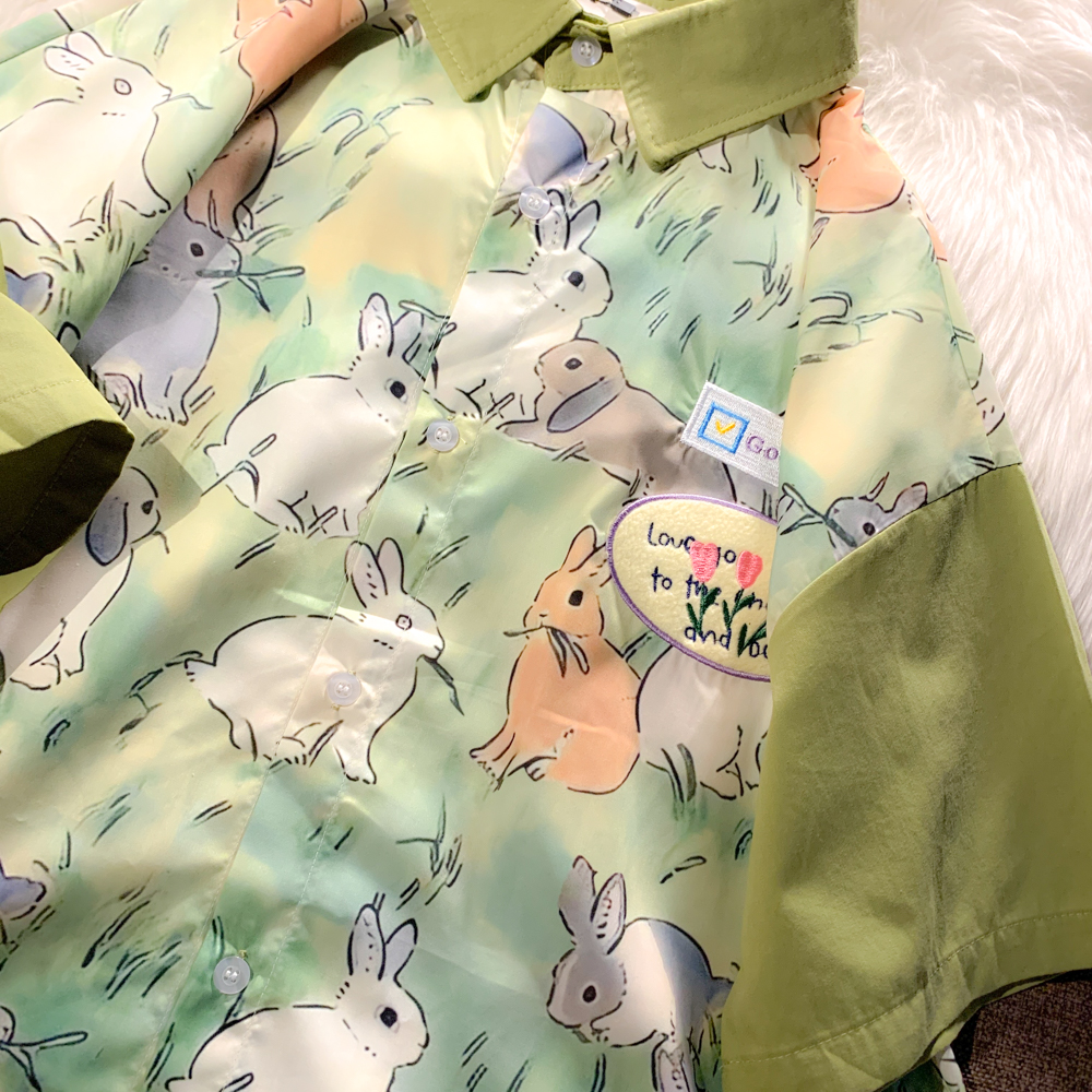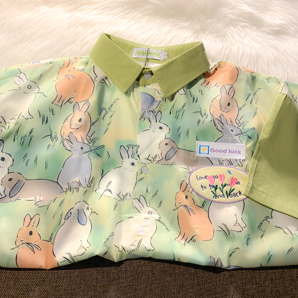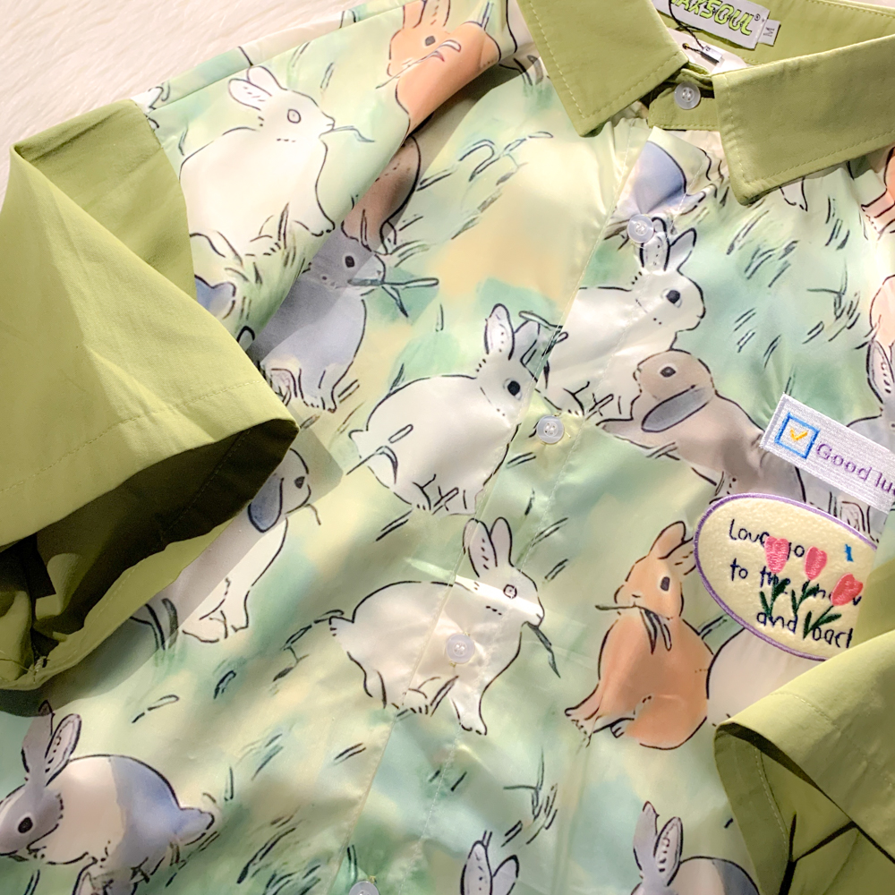 EACH ROOM 夏天的晚風 卡通兔子情侶短袖寬鬆襯衫學生男女半袖