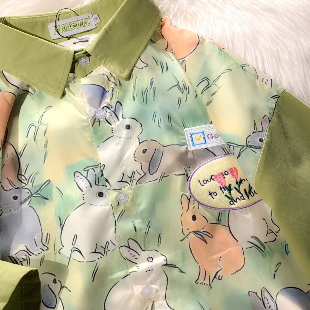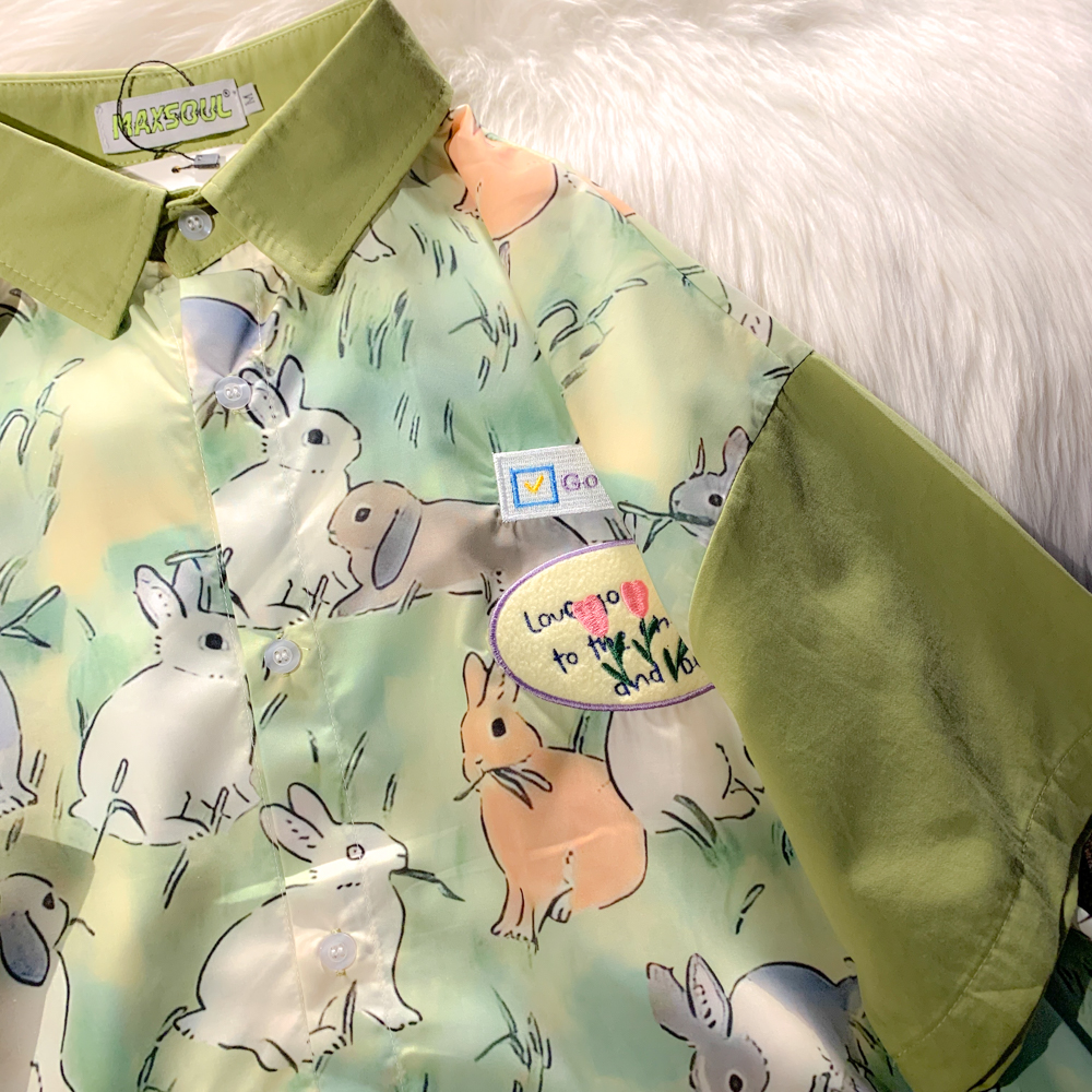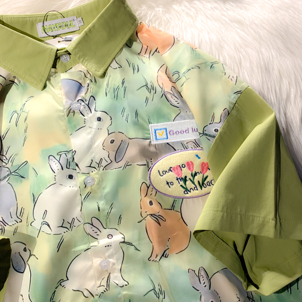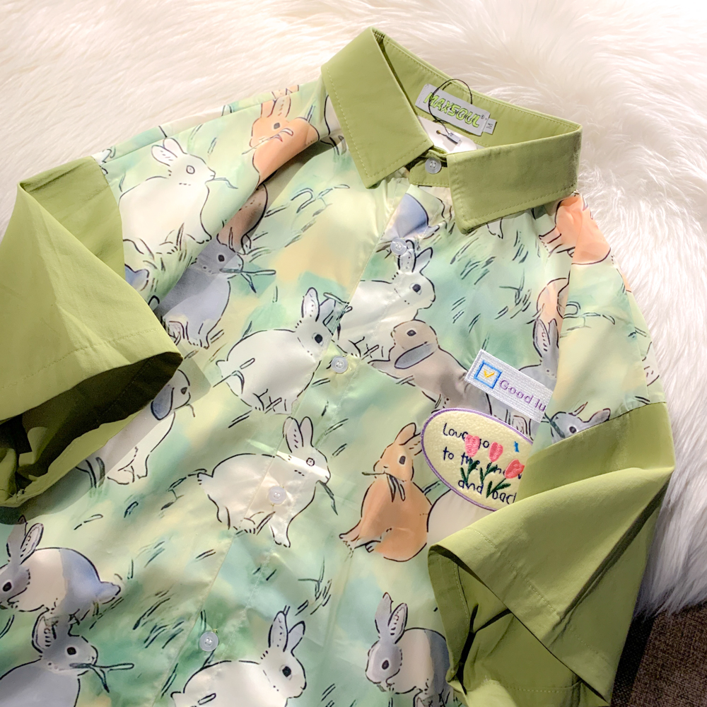 EACH ROOM 夏天的晚風 卡通兔子情侶短袖寬鬆襯衫學生男女半袖