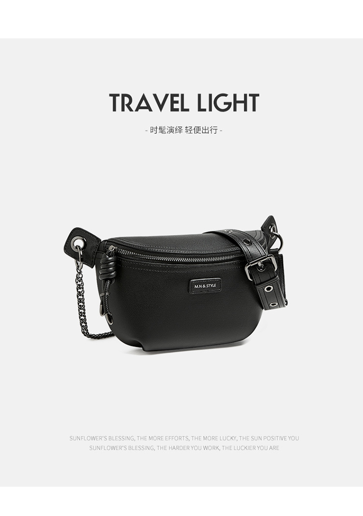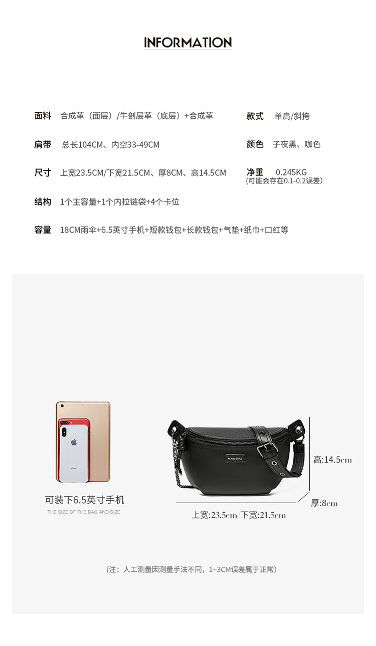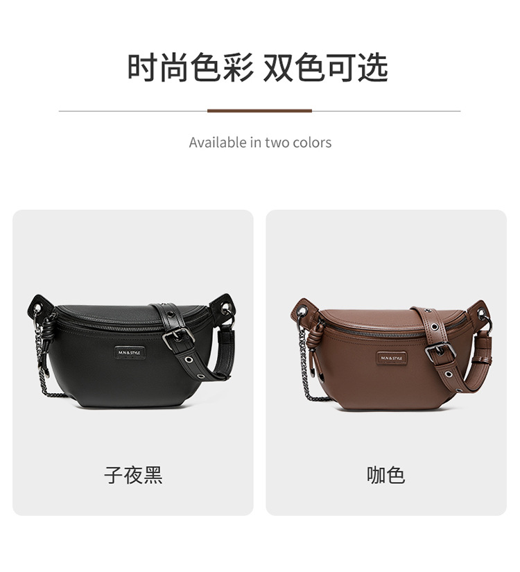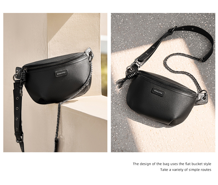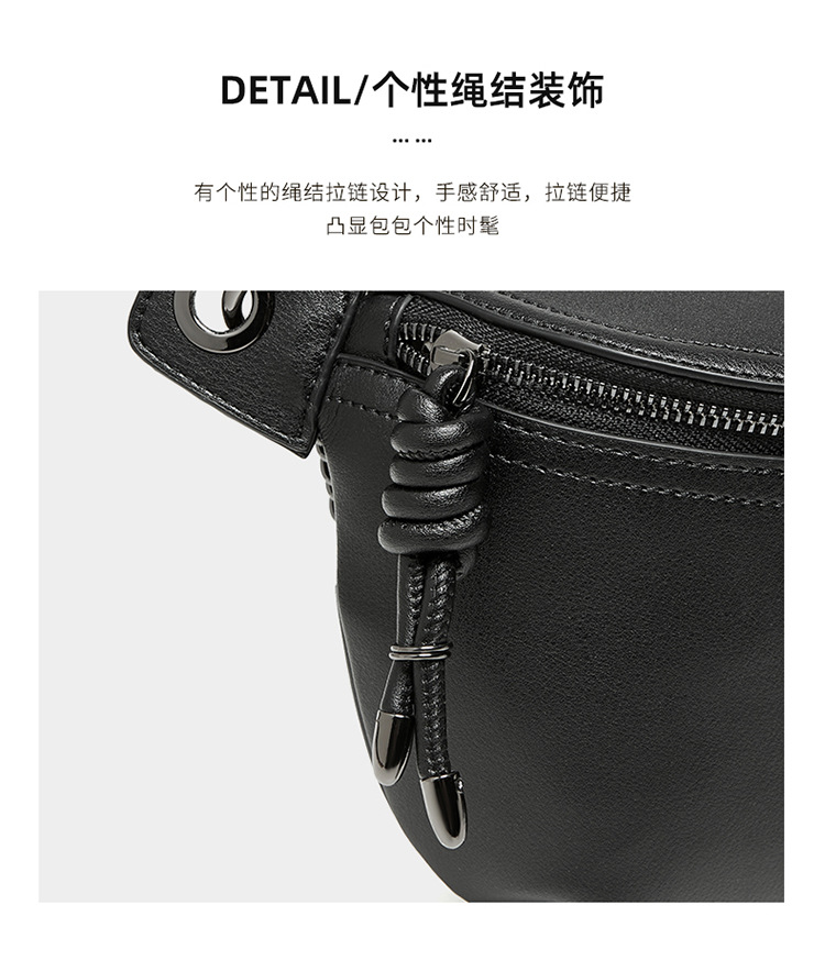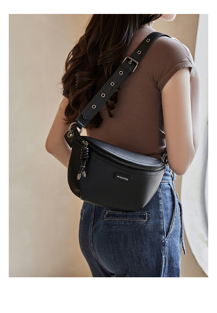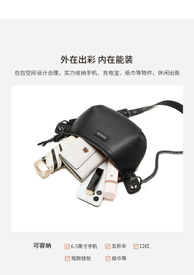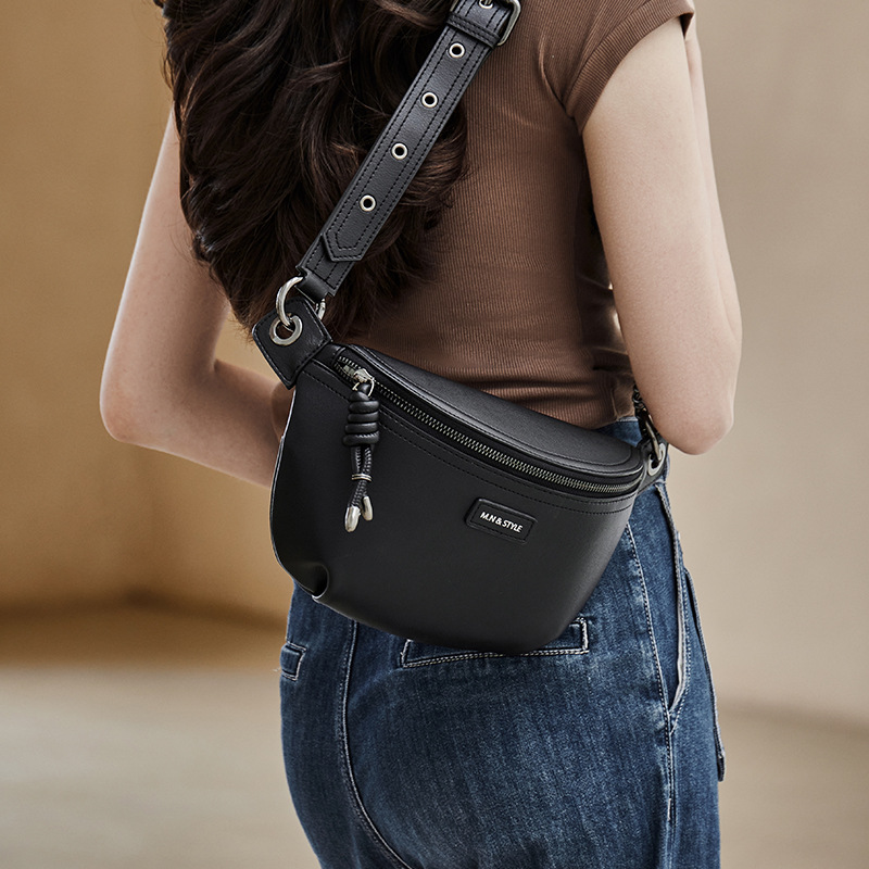 纳兰杜黑色包包2024新款女士斜挎包女包胸包女纯皮马鞍包真皮腰包