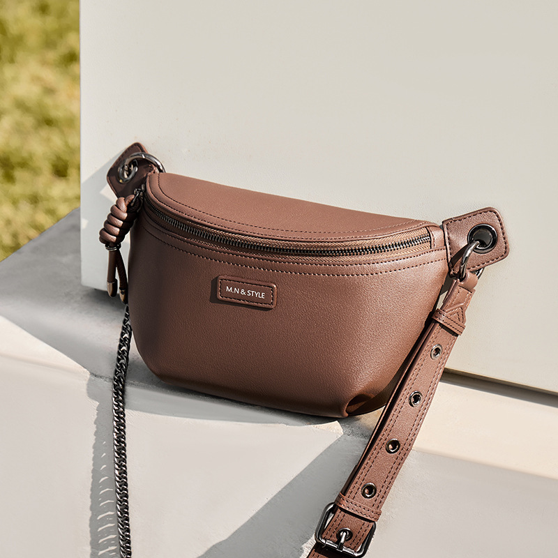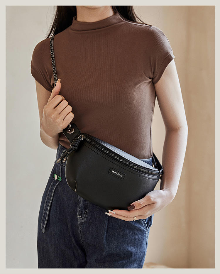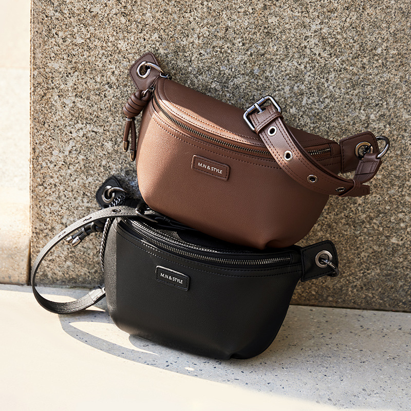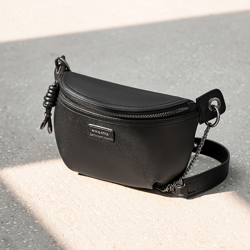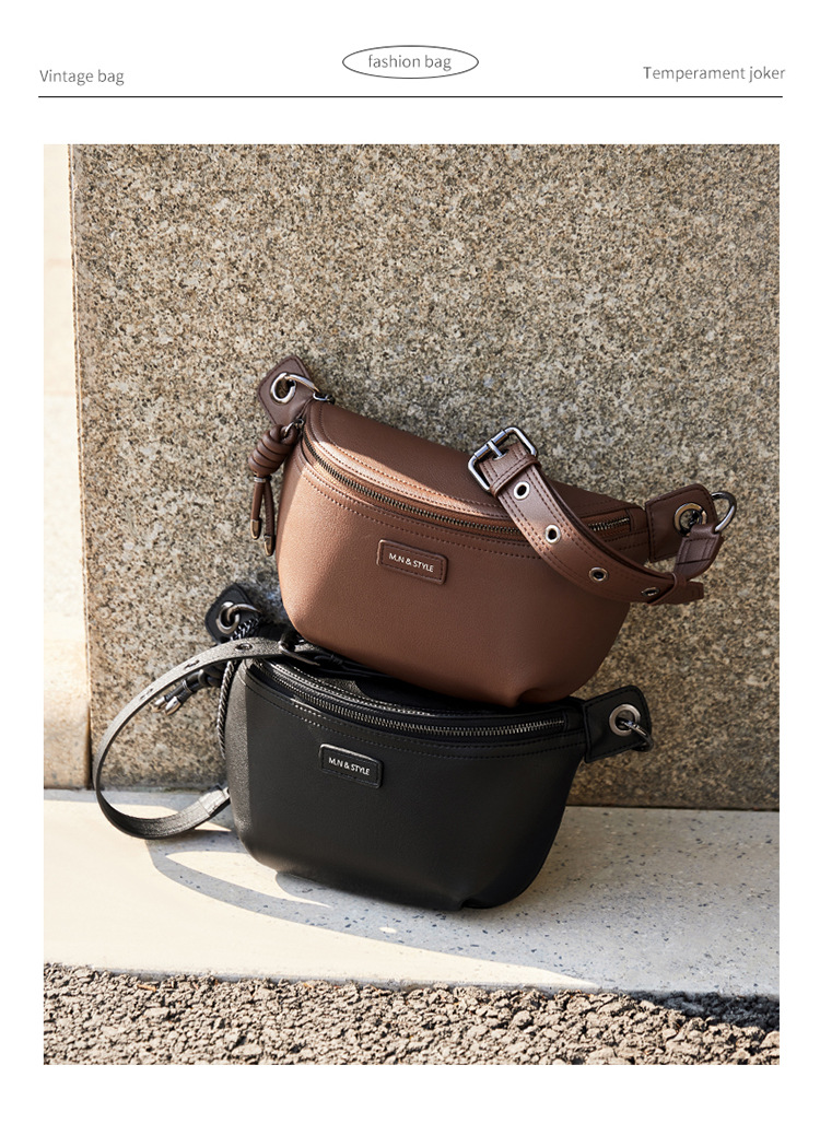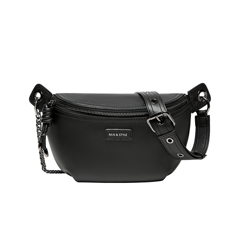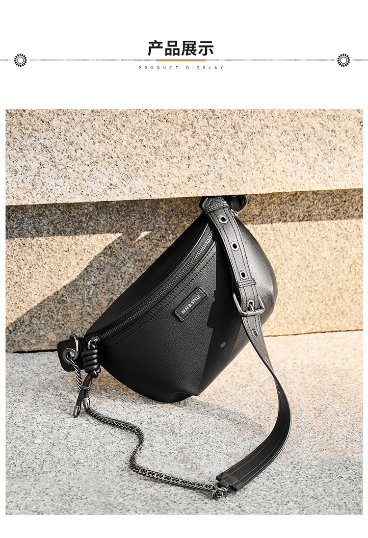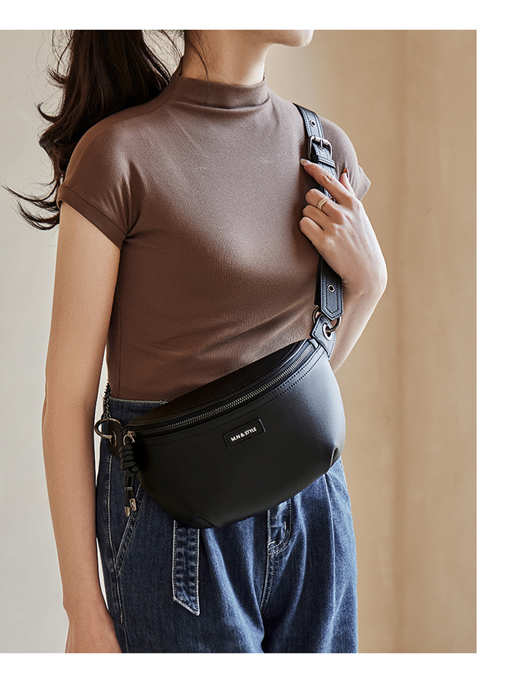 纳兰杜黑色包包2024新款女士斜挎包女包胸包女纯皮马鞍包真皮腰包