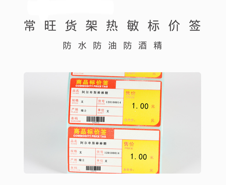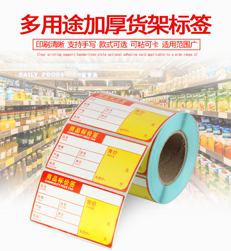 超市标价签商品标价签不干胶条码签热敏条码纸货架标签纸牌价卡