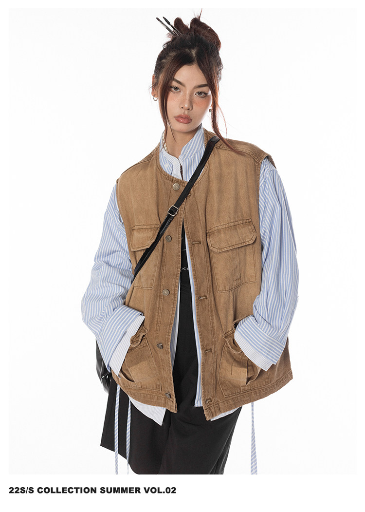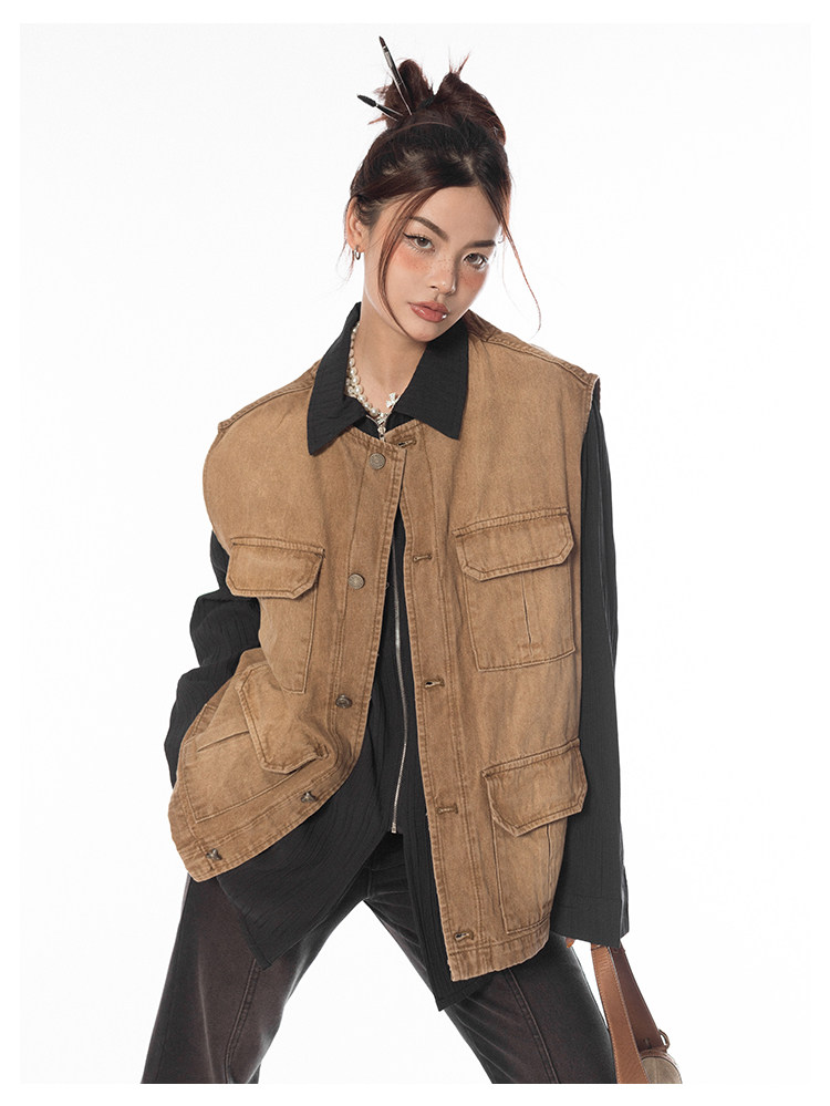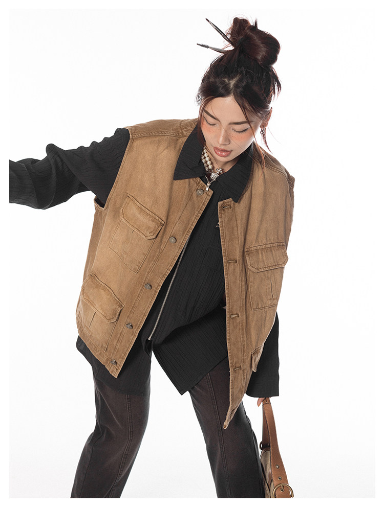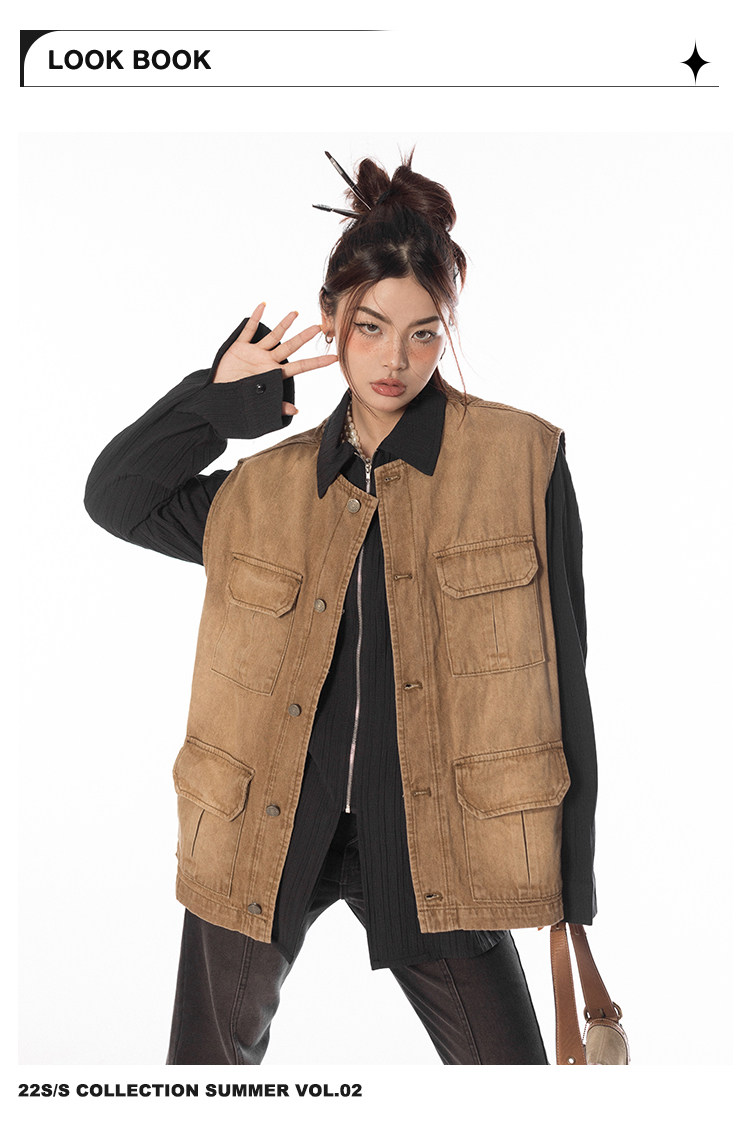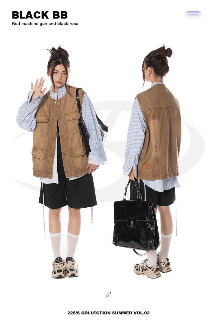 BLACKBB/潮流聚集地美式復古做舊工裝馬甲女休閒百搭坎肩背心外套