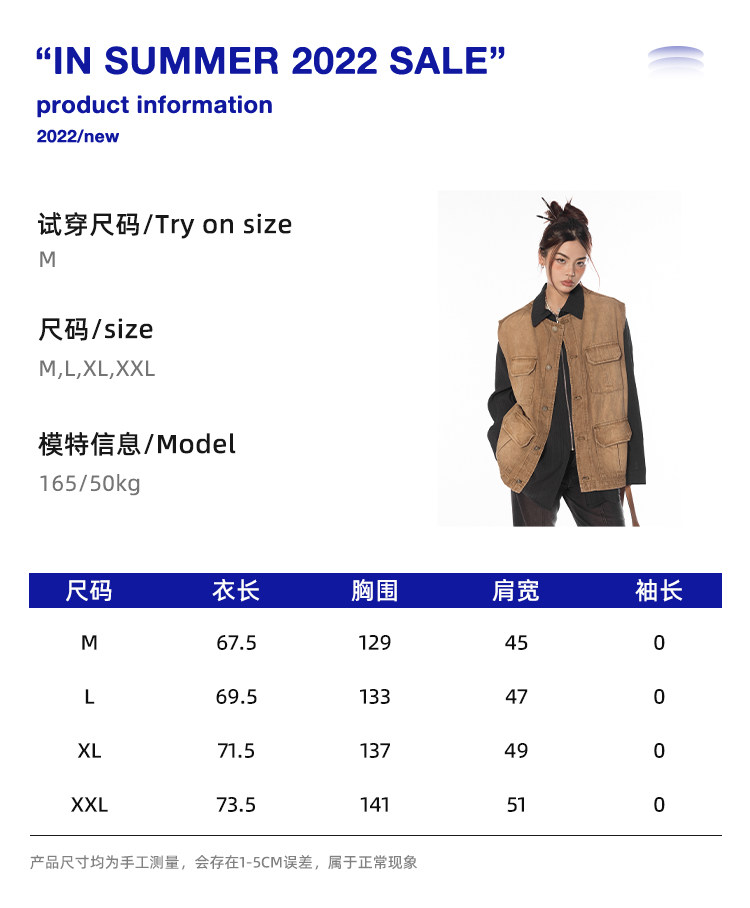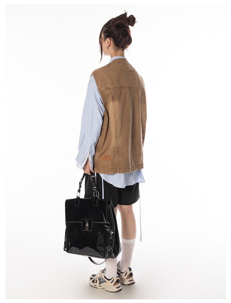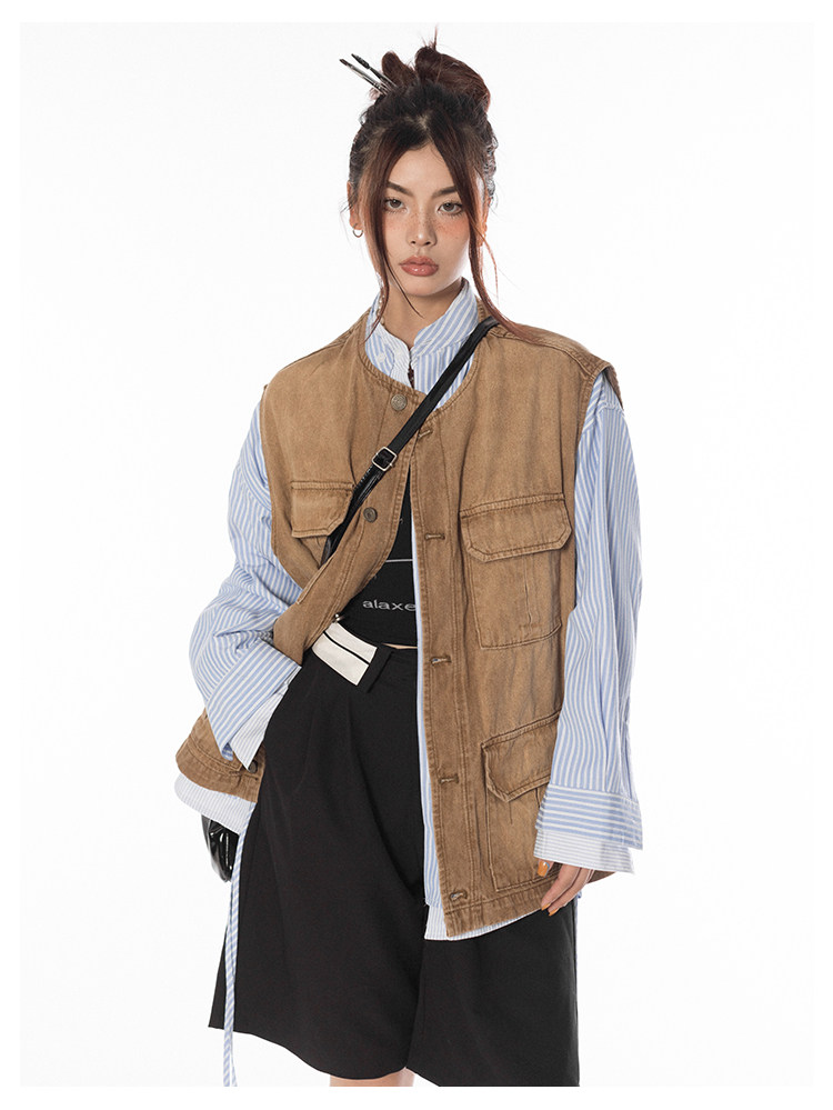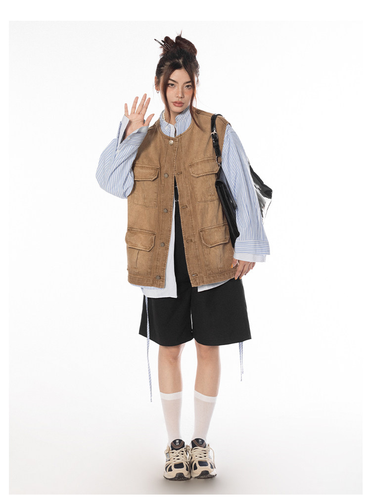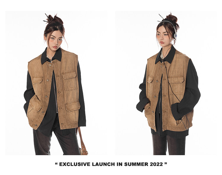 BLACKBB/潮流聚集地美式復古做舊工裝馬甲女休閒百搭坎肩背心外套