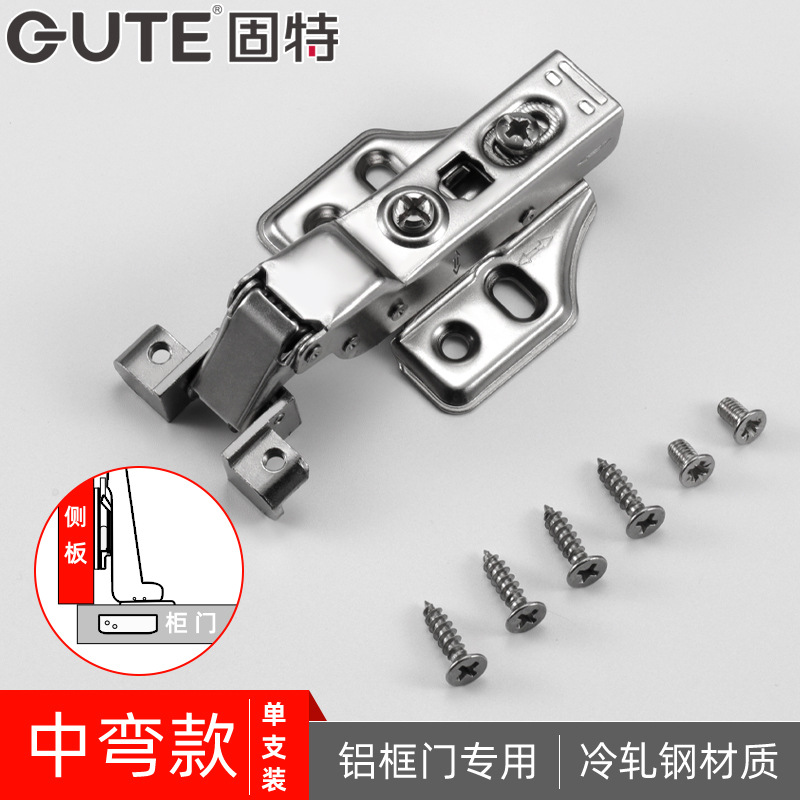 固特铝框门铰链玻璃橱柜门铝合金门液压缓冲阻尼中弯飞机弹簧合页