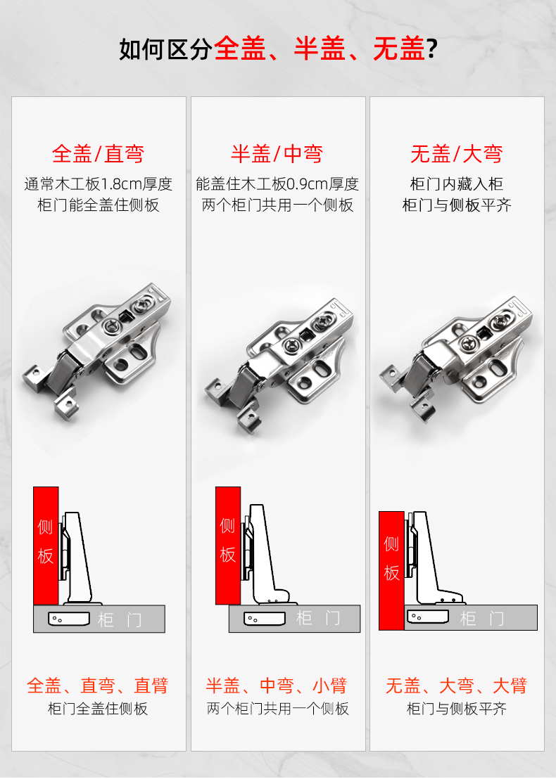 规格 液压铝框门铰链-直弯/全盖,液压铝框门铰链-中弯/半盖,液压铝框门铰链-大弯/无盖