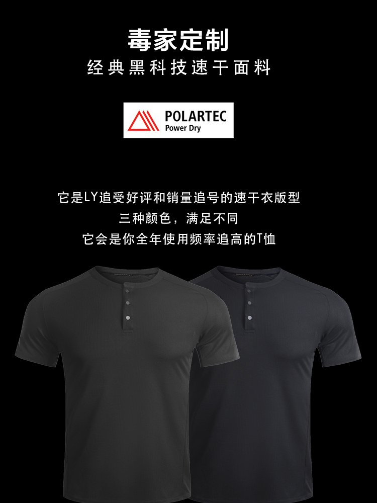 戶外亨利圓領男速乾短袖夏季透氣排汗速乾衣power運動T恤dry上衣