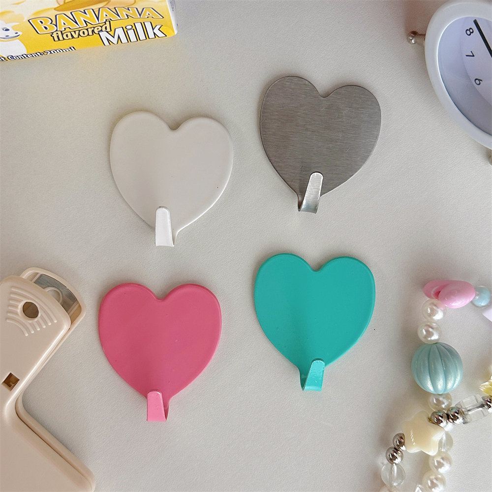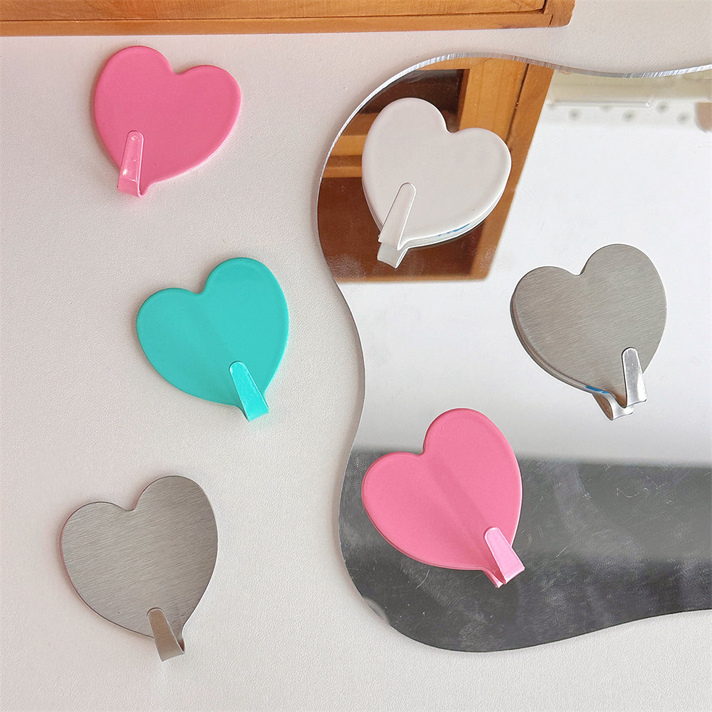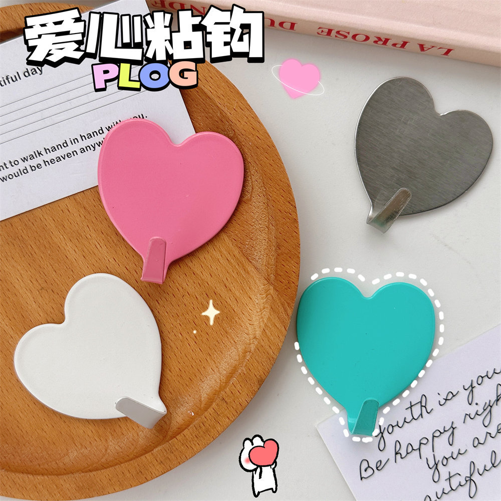 韩国ins可爱粉色爱心挂钩简约创意爱心粘钩不锈钢挂钩无痕装饰钩