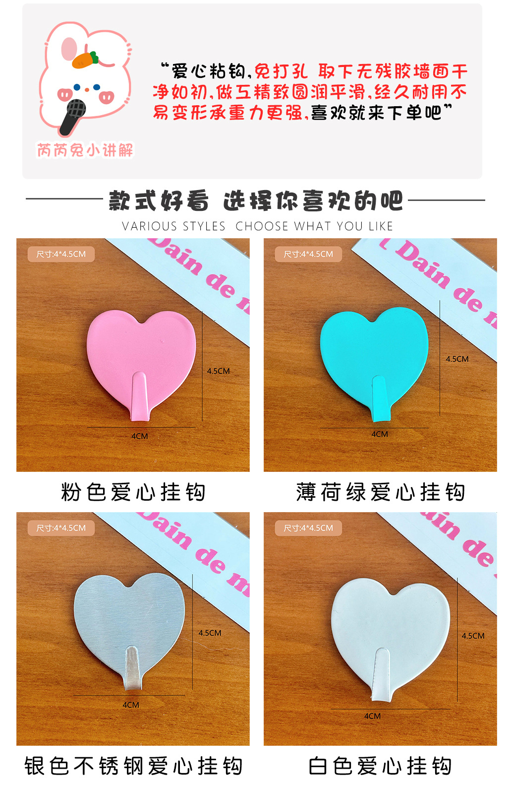 颜色 粉色爱心挂钩,白色爱心挂钩,薄荷绿爱心挂钩,银色不锈钢爱心挂钩
