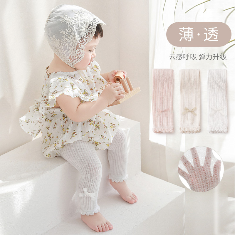 2023夏季新品女童打底裤超薄网眼宝宝九分裤蝴蝶结公主白色舞蹈裤