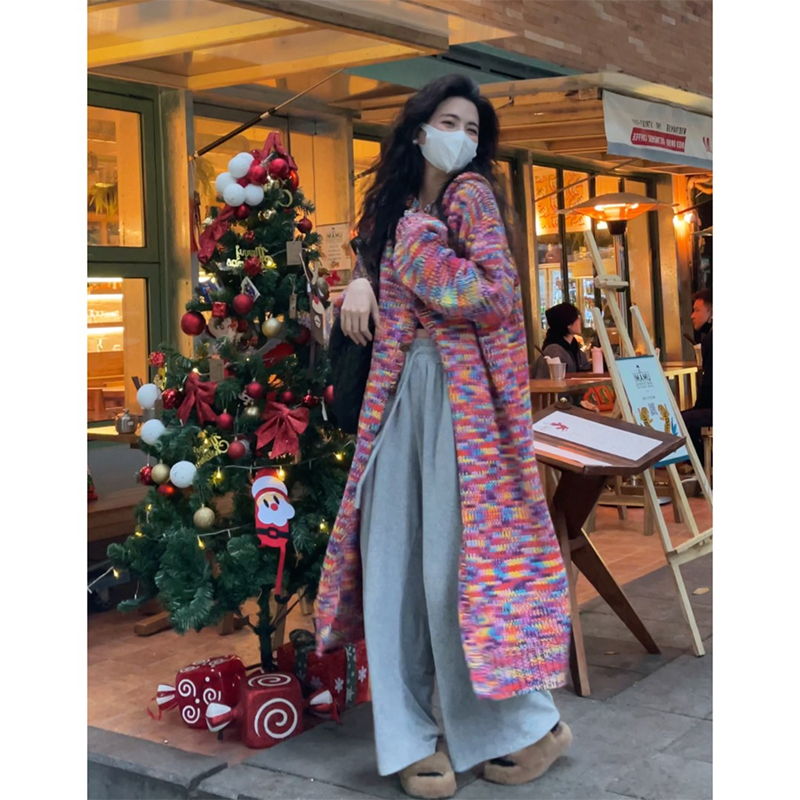 今年流行2023新款老錢風仙女彩色復古長版針織毛衣開衫外套女秋季