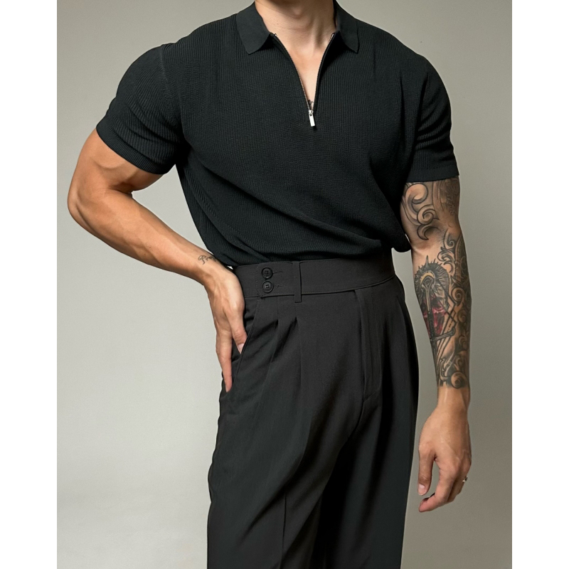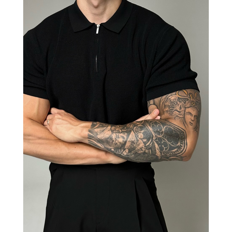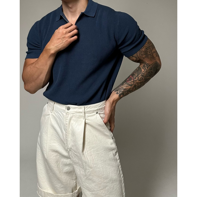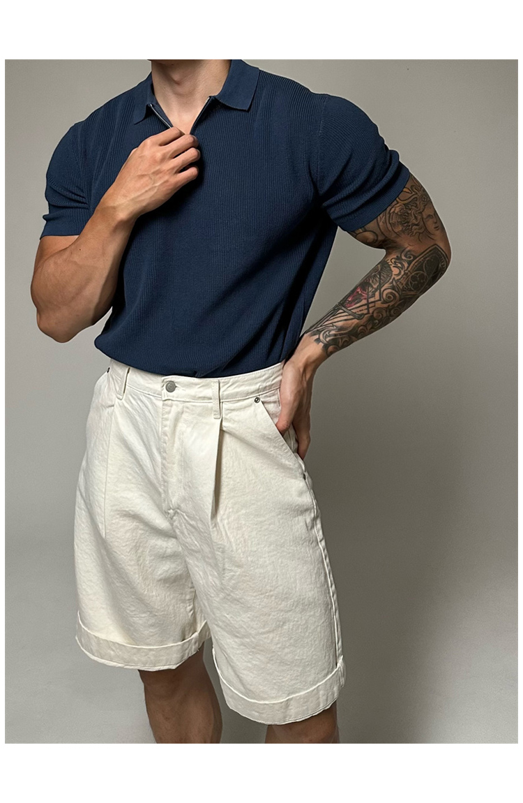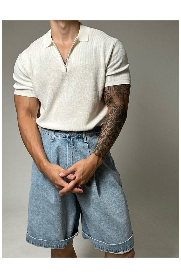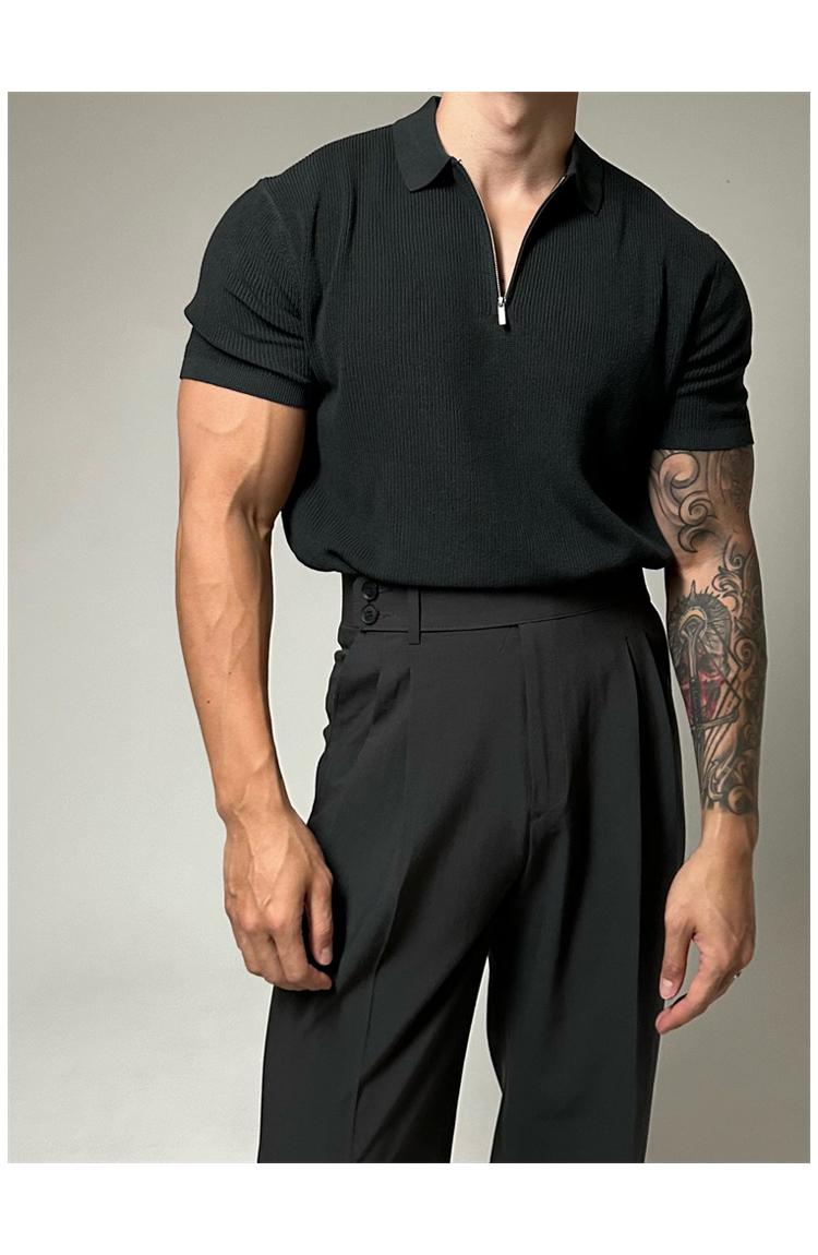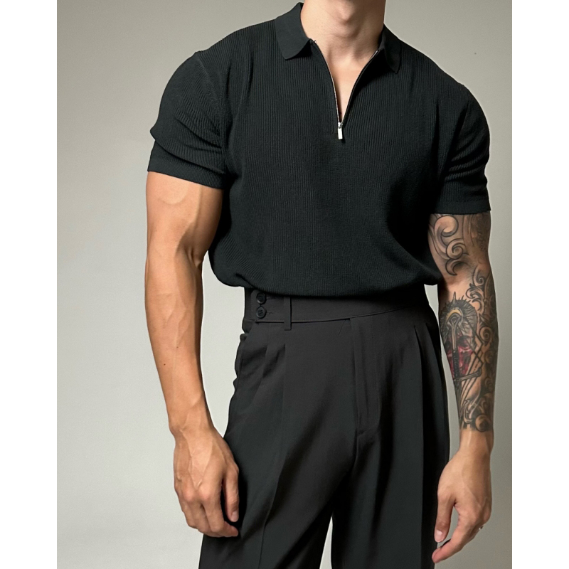 半拉鍊翻領polo針織衫男短袖寬鬆休閒T恤2023新款潮流百搭高級感