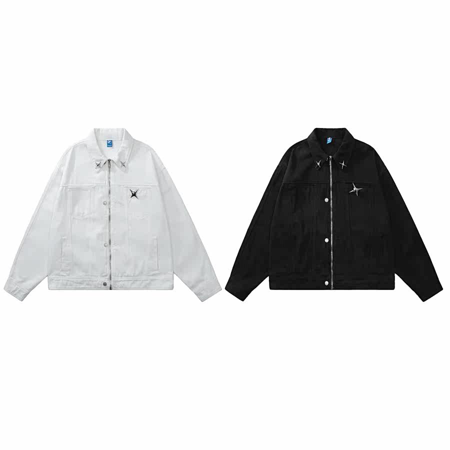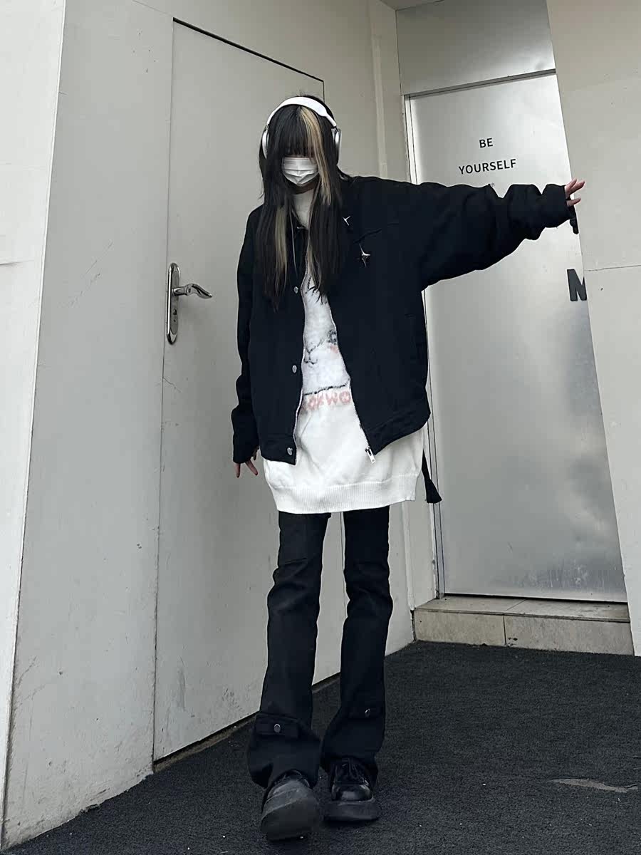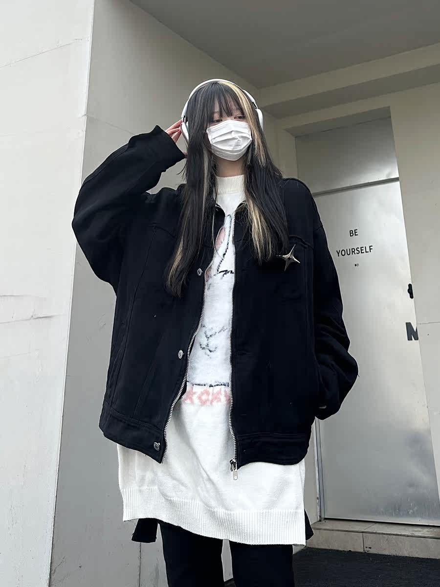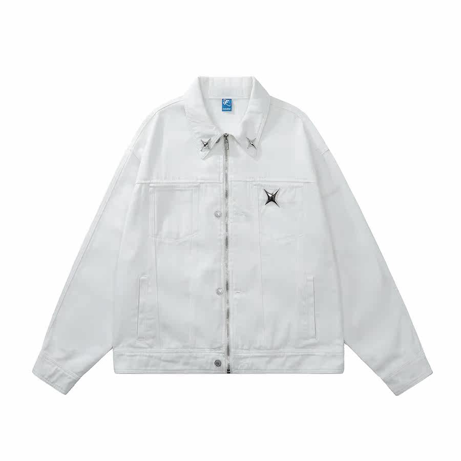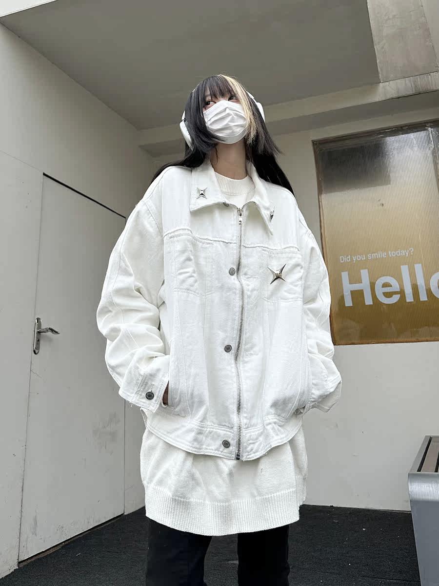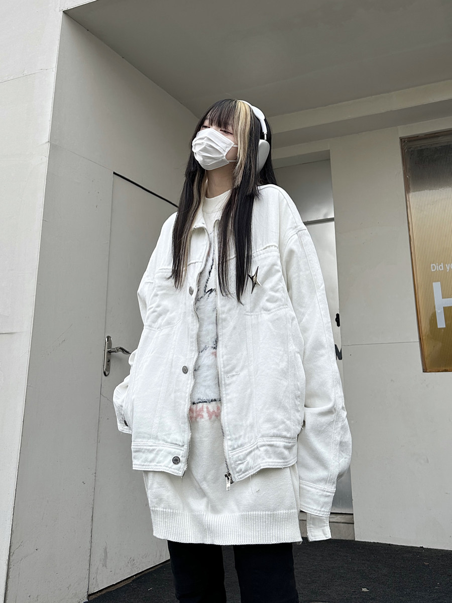 咖哩人春新款美式設計感星星寬鬆街頭牛仔潮外套夾克百搭上衣男女