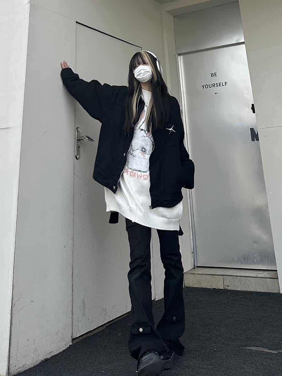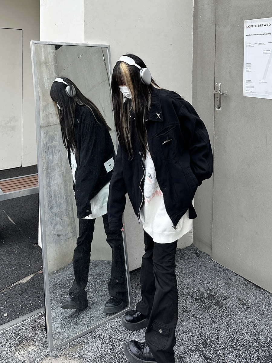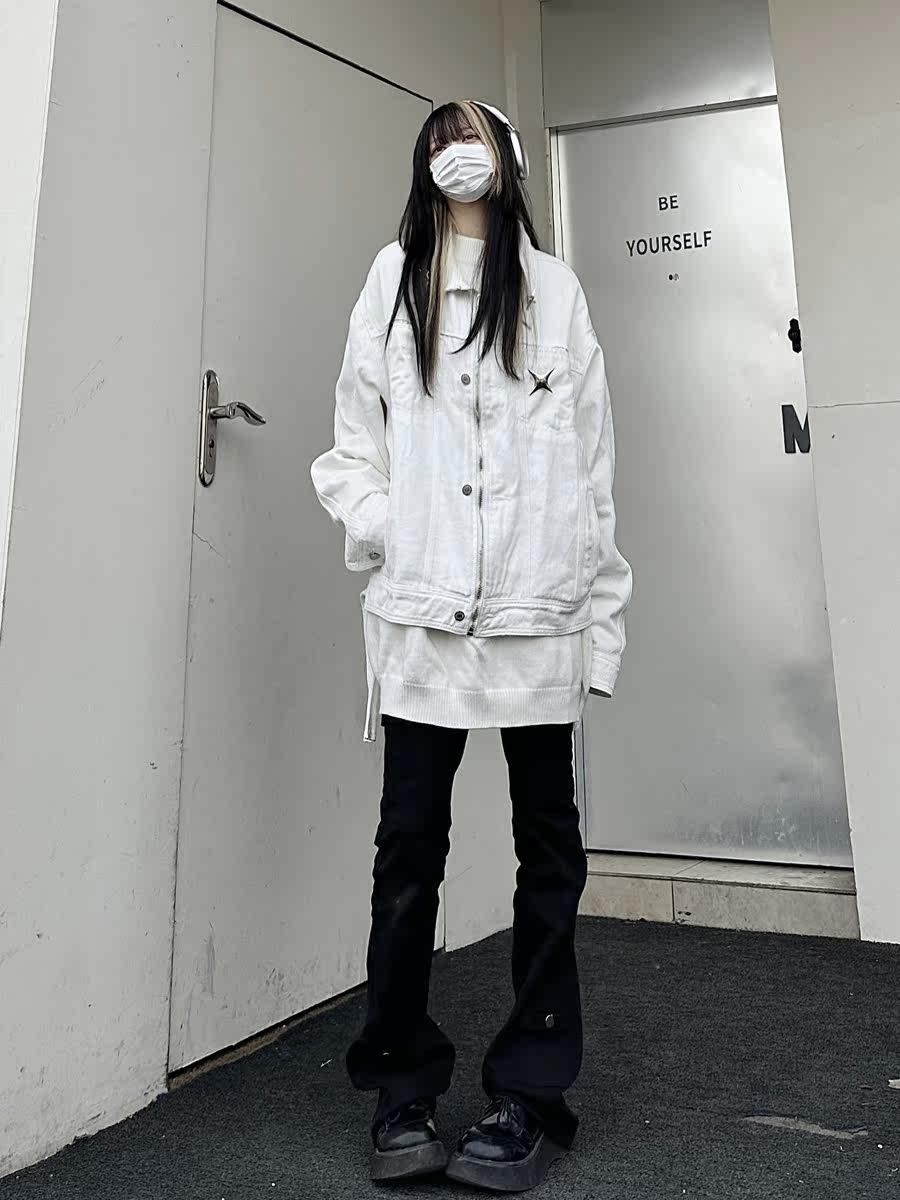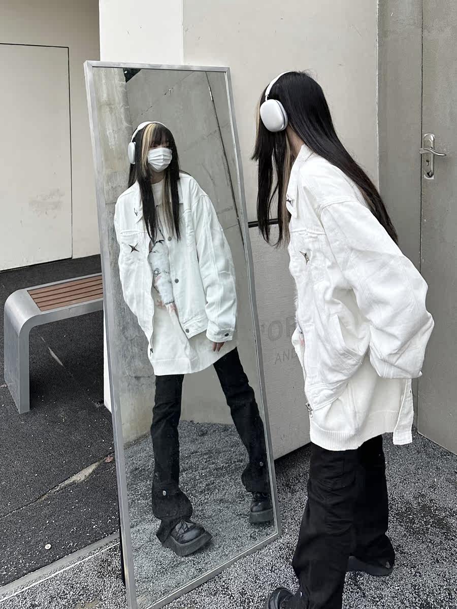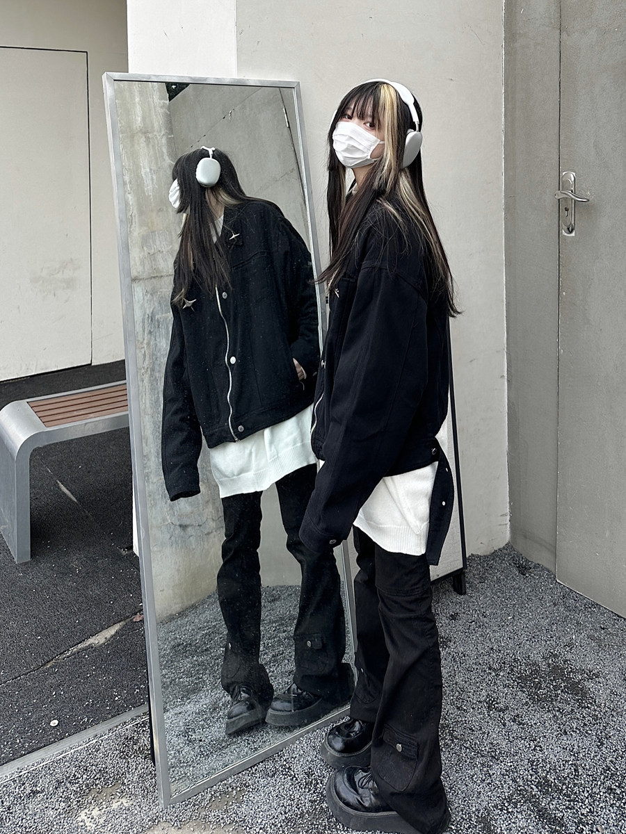 咖哩人春新款美式設計感星星寬鬆街頭牛仔潮外套夾克百搭上衣男女