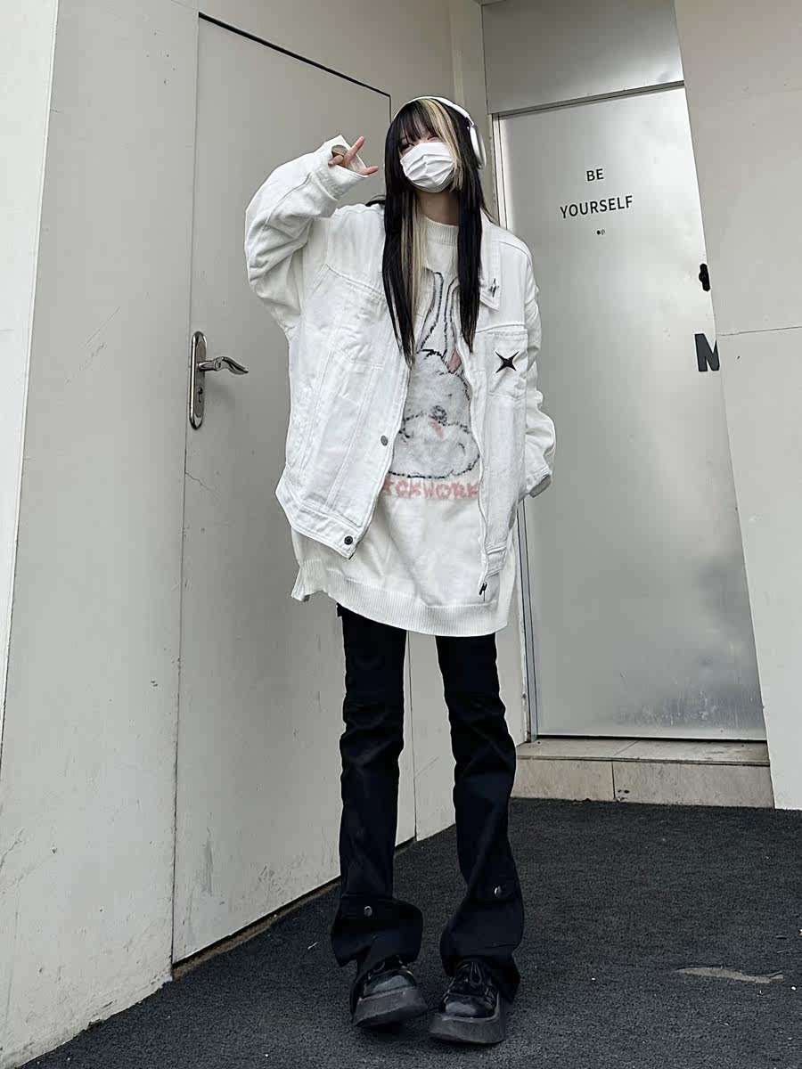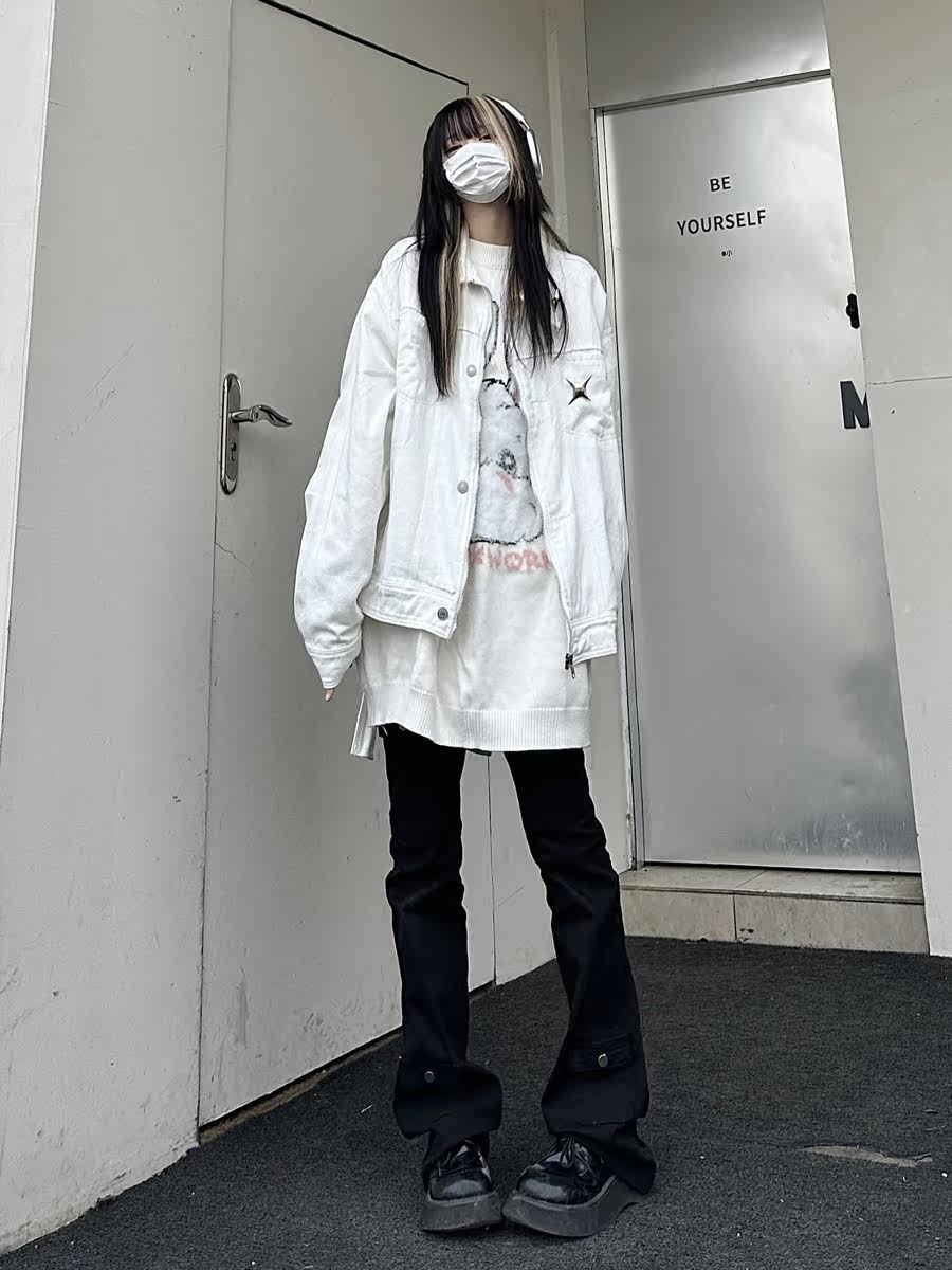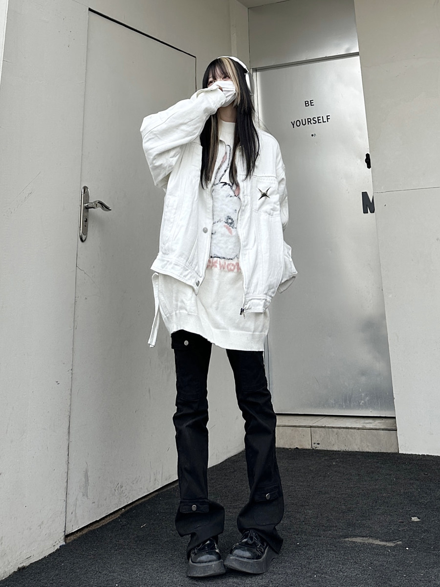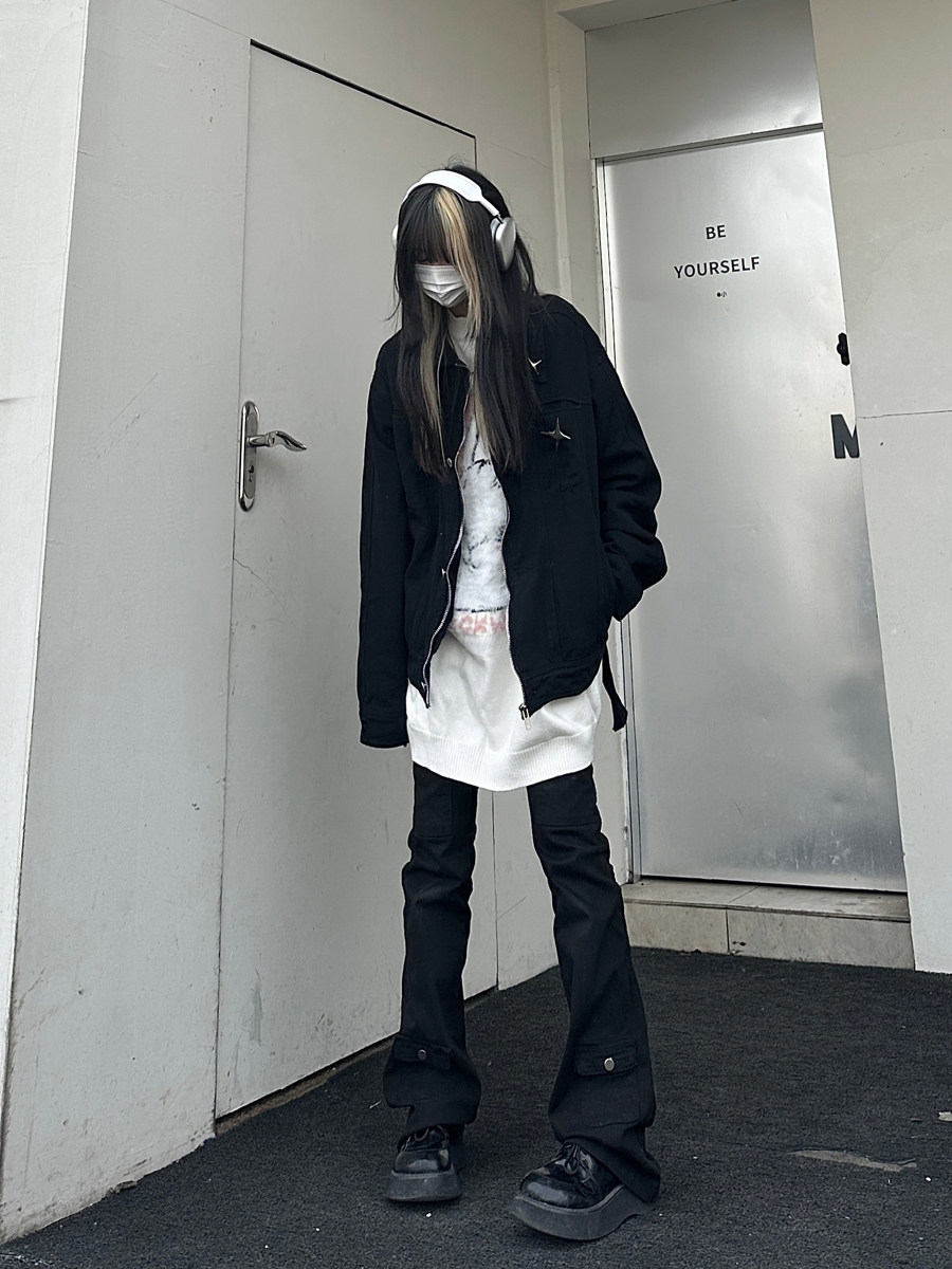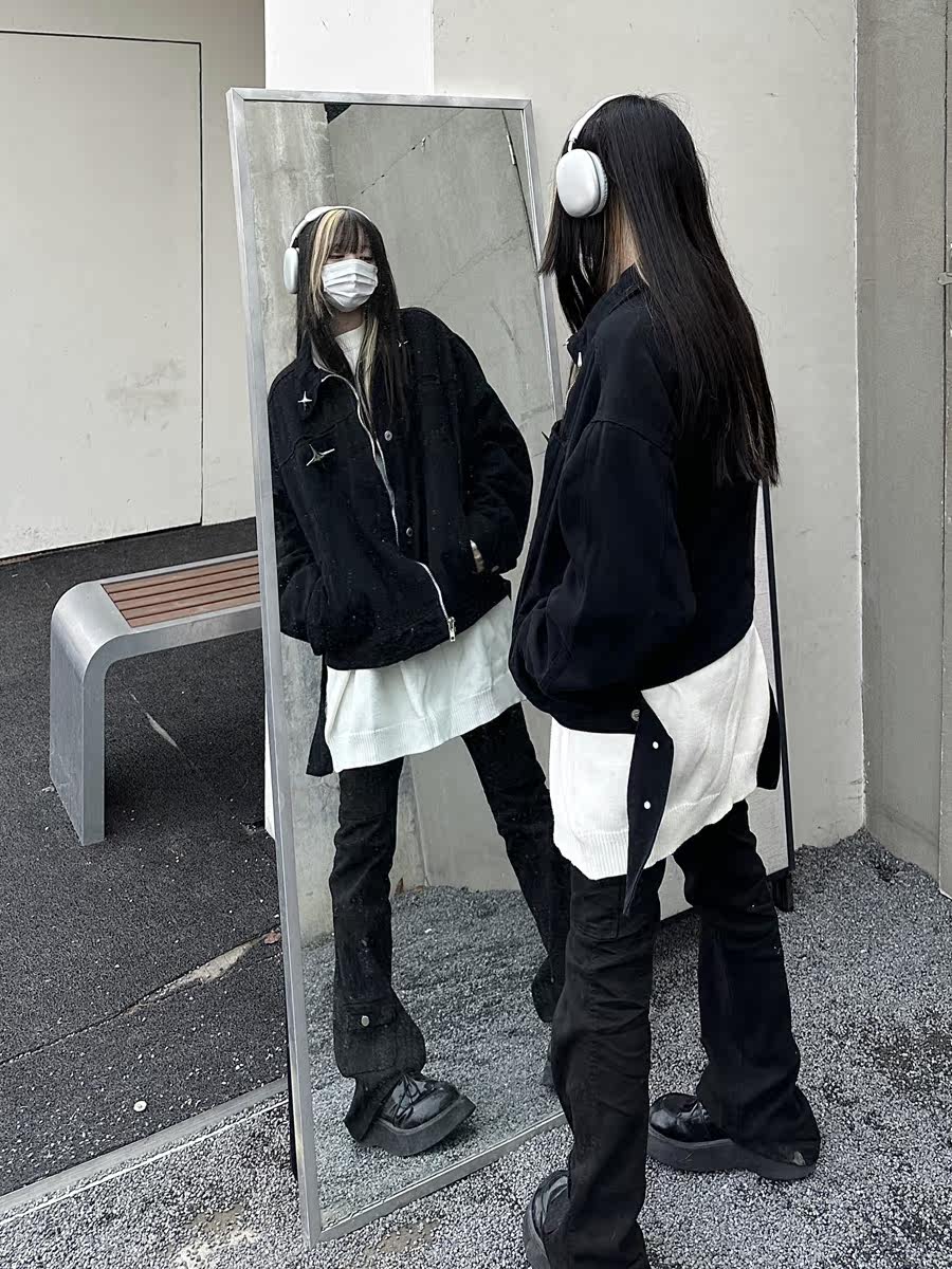 咖哩人春新款美式設計感星星寬鬆街頭牛仔潮外套夾克百搭上衣男女