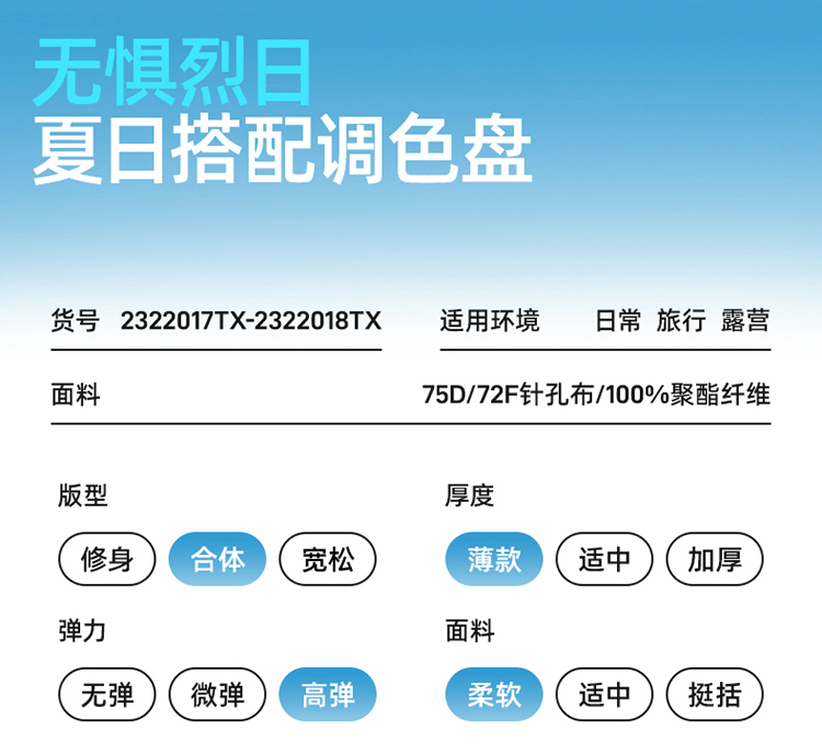 主要功能 抗UV,透氣,耐磨,速乾,吸汗