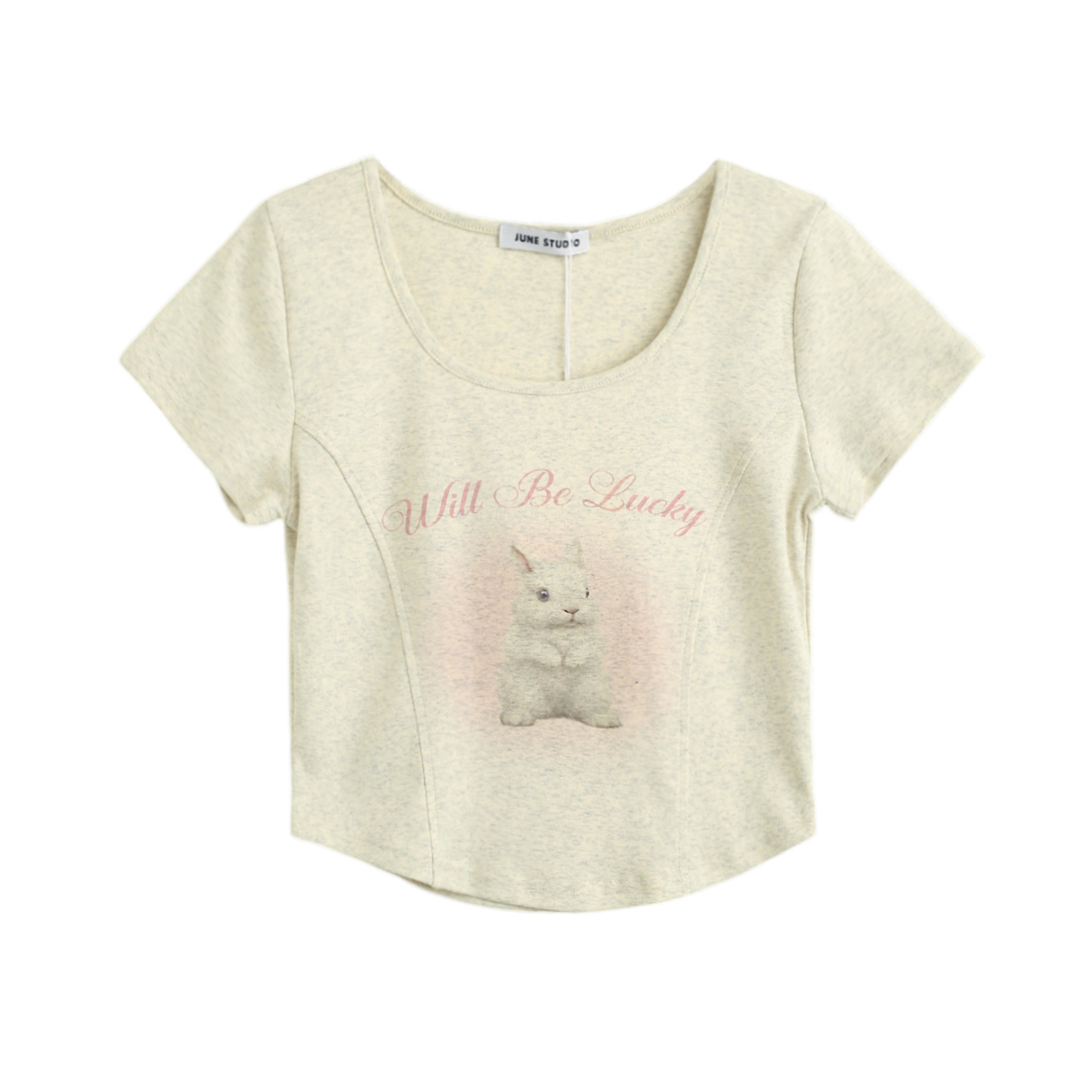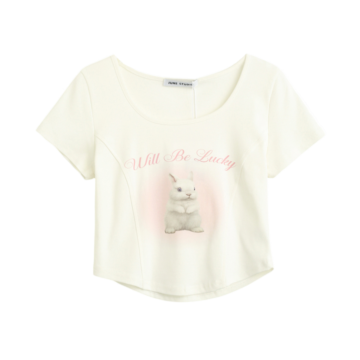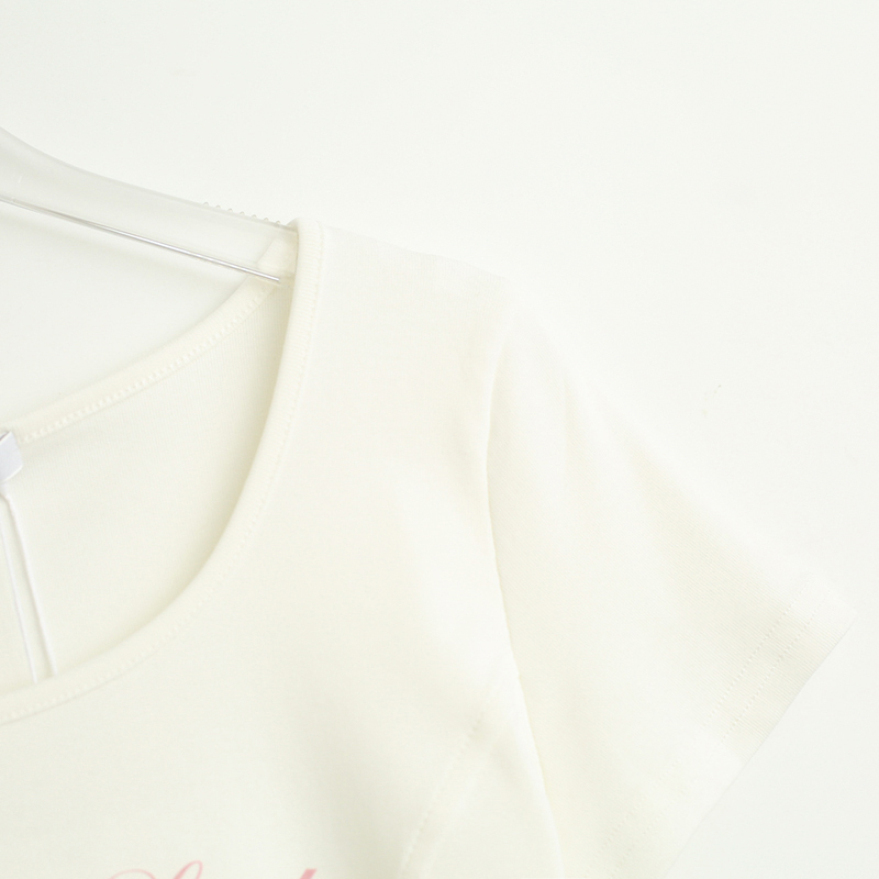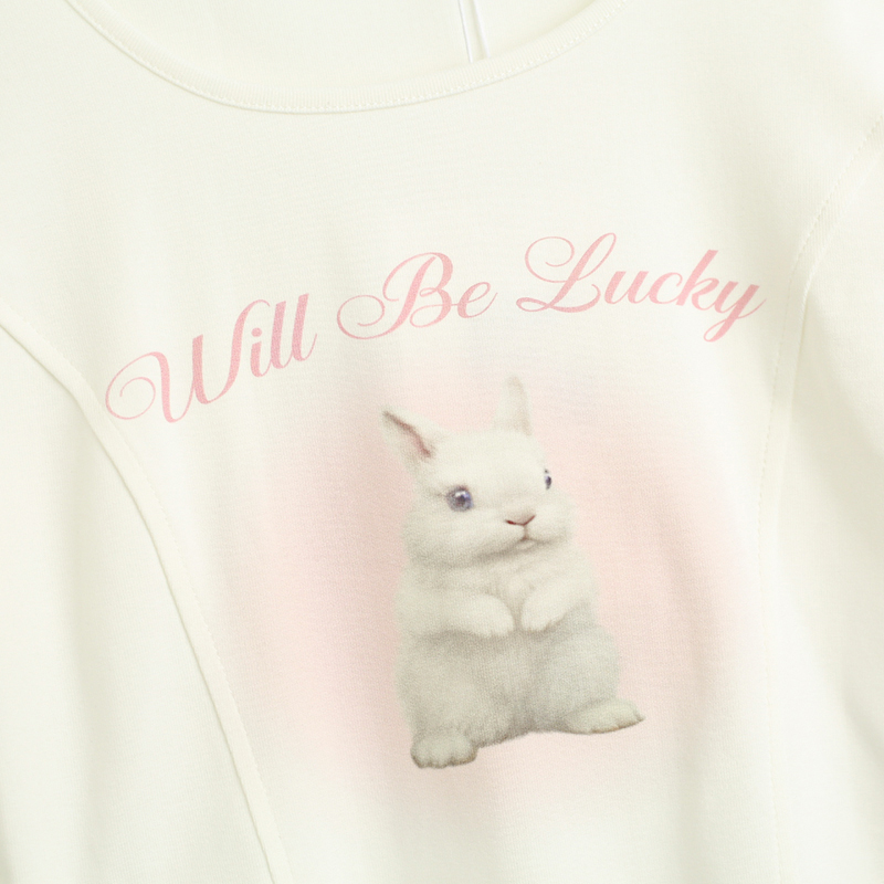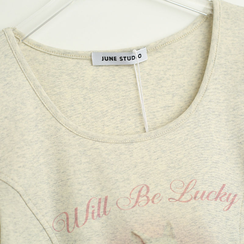 拾野森 夏裝新款bm風純欲短款魚骨弧形兔子印花U領短袖T恤女上衣