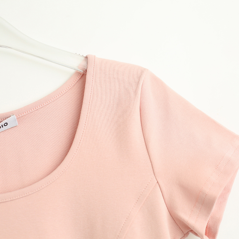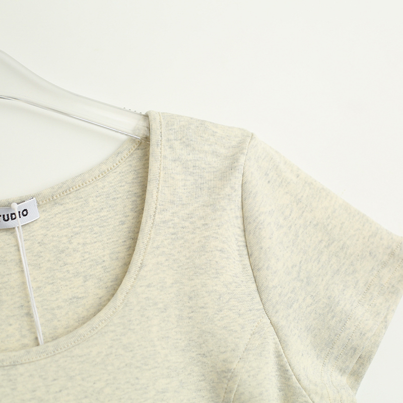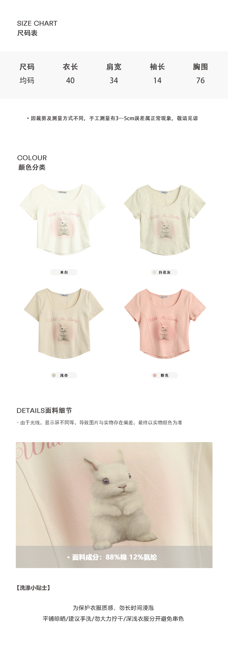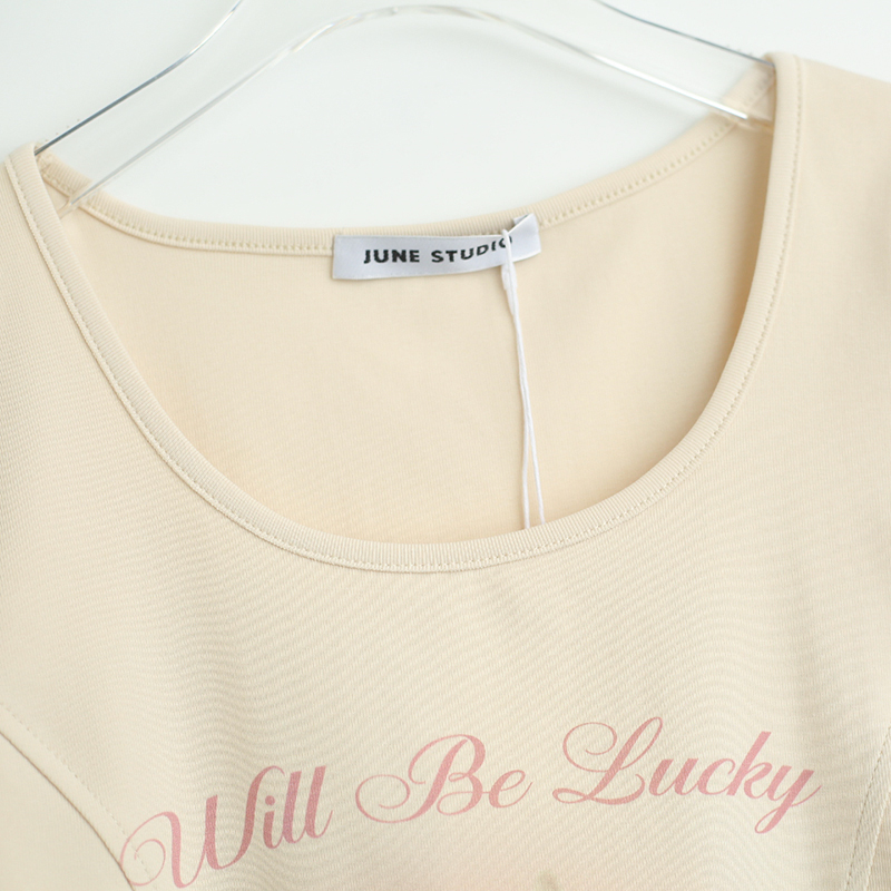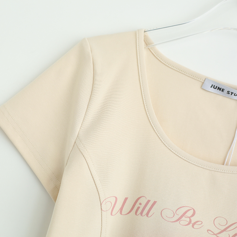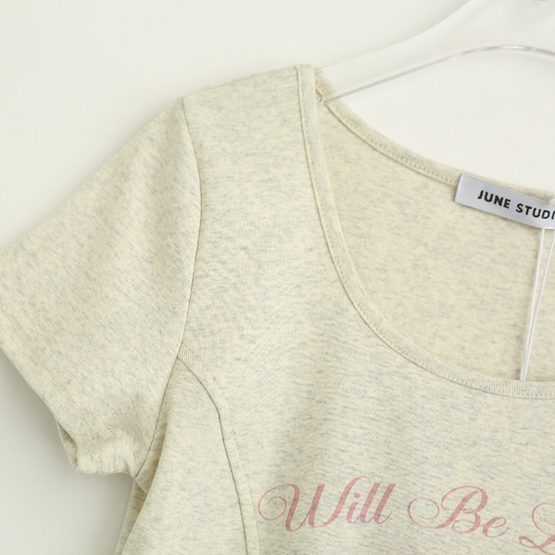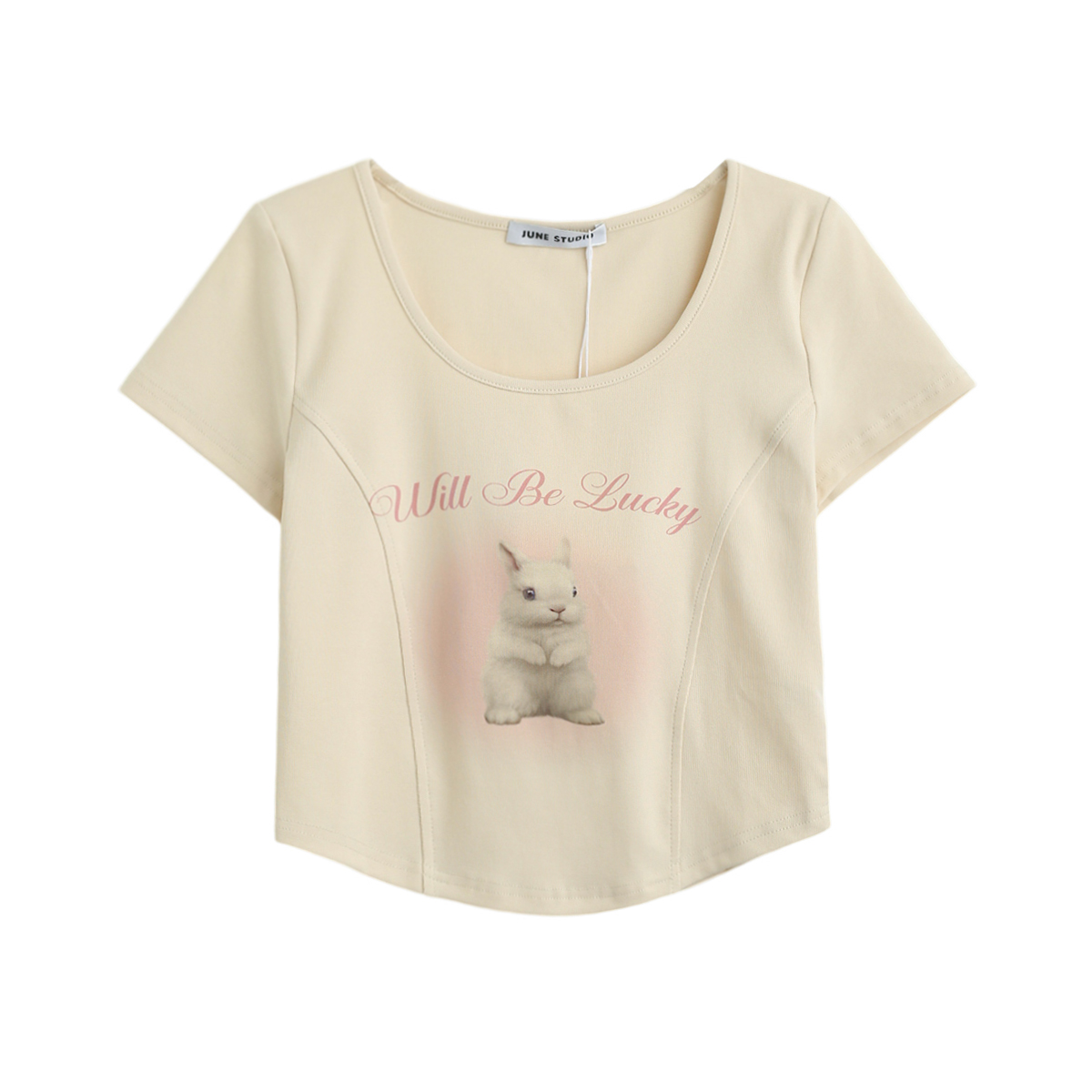 拾野森 夏裝新款bm風純欲短款魚骨弧形兔子印花U領短袖T恤女上衣