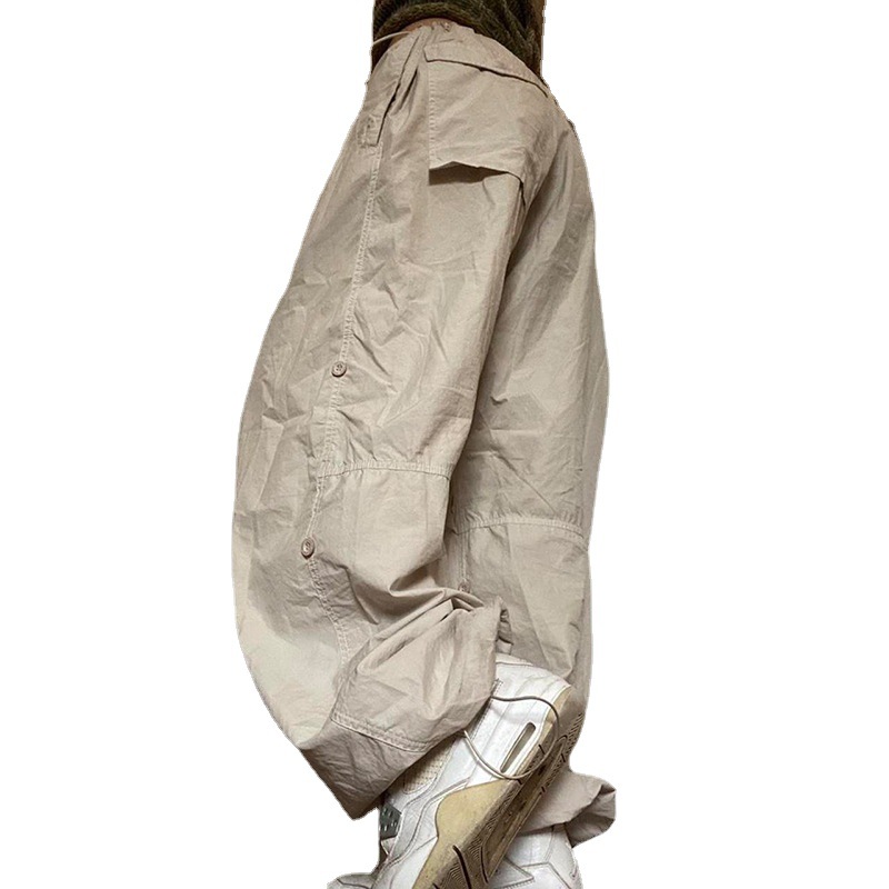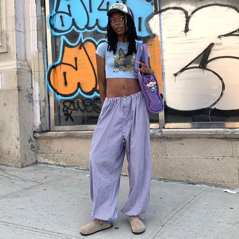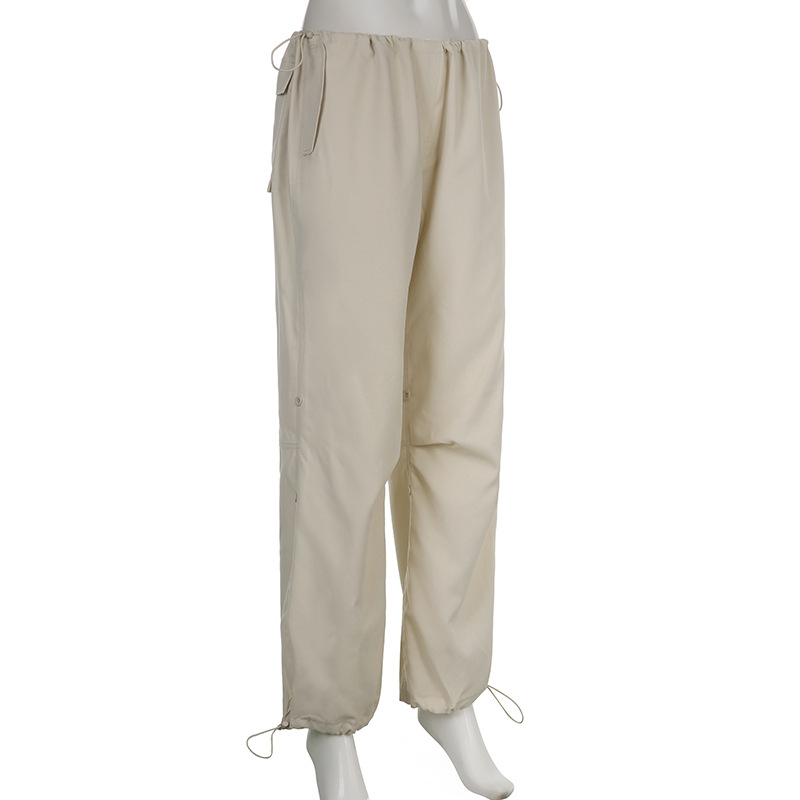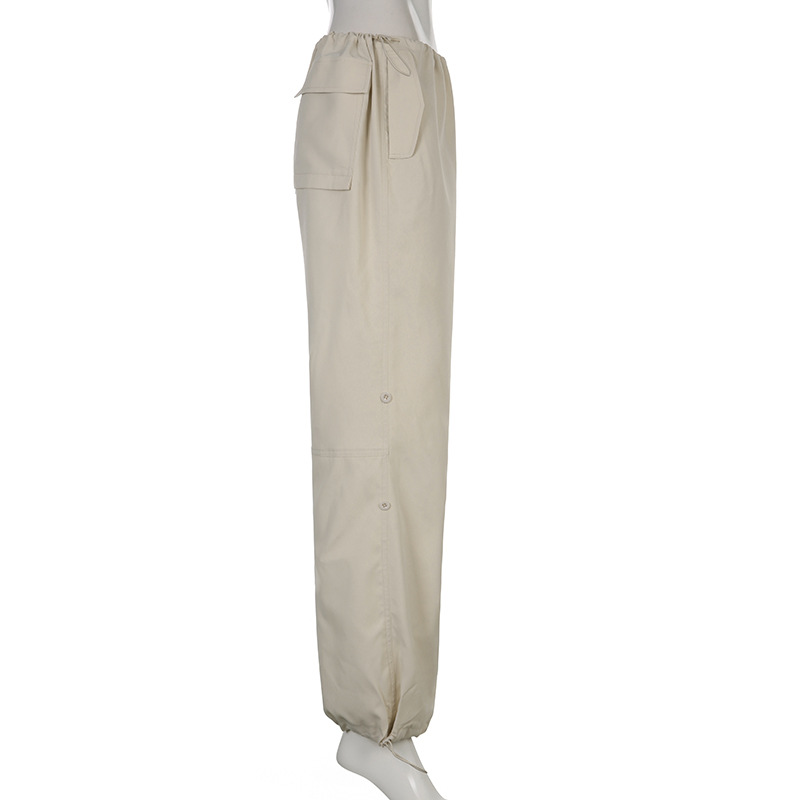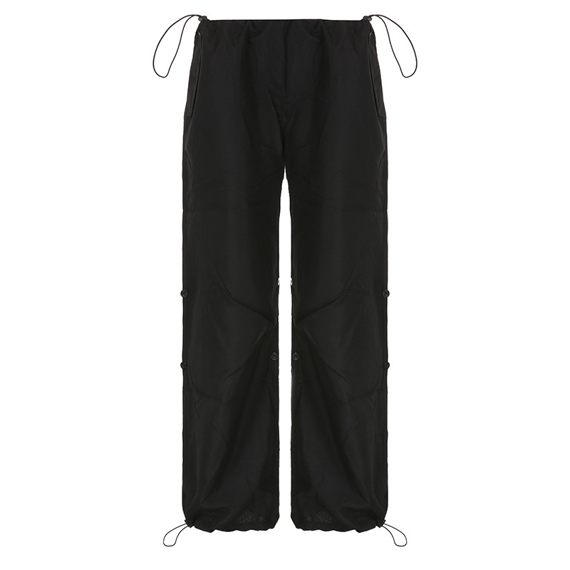 美式复古街头宽松阔腿工装裤束脚长裤腿部调节纽高腰休闲梭织裤