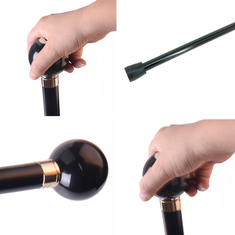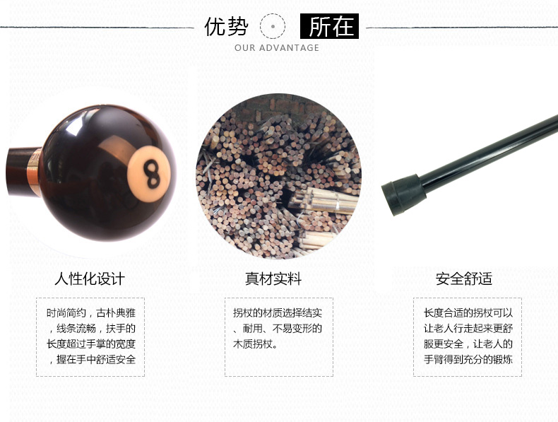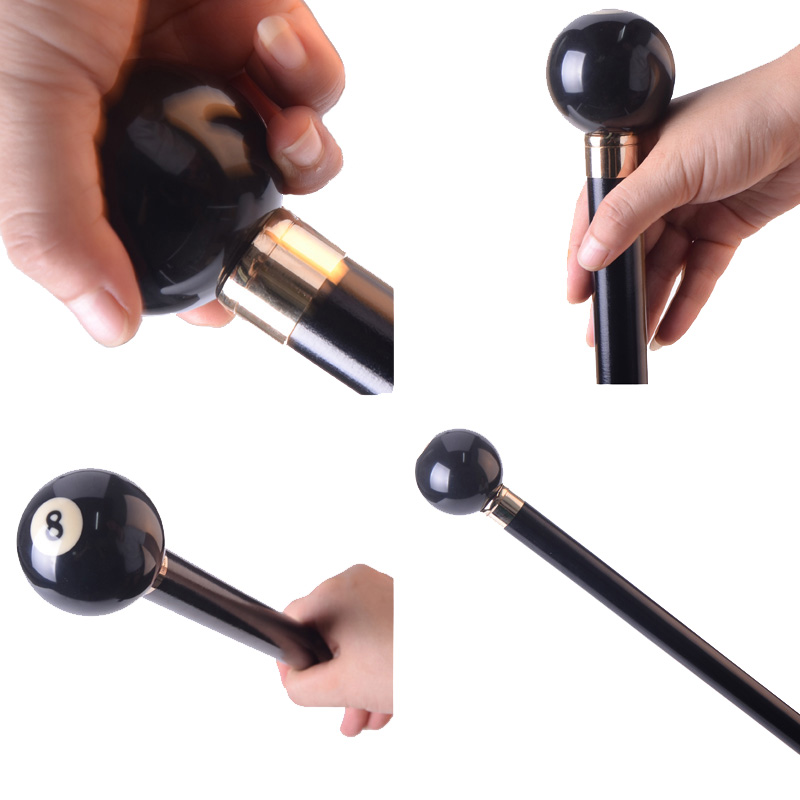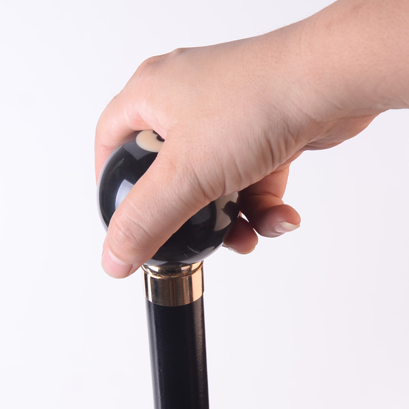 柺杖圓頭黑8檯球實木手杖老年人文明柺棍 戶外徒步登山祝壽送禮品