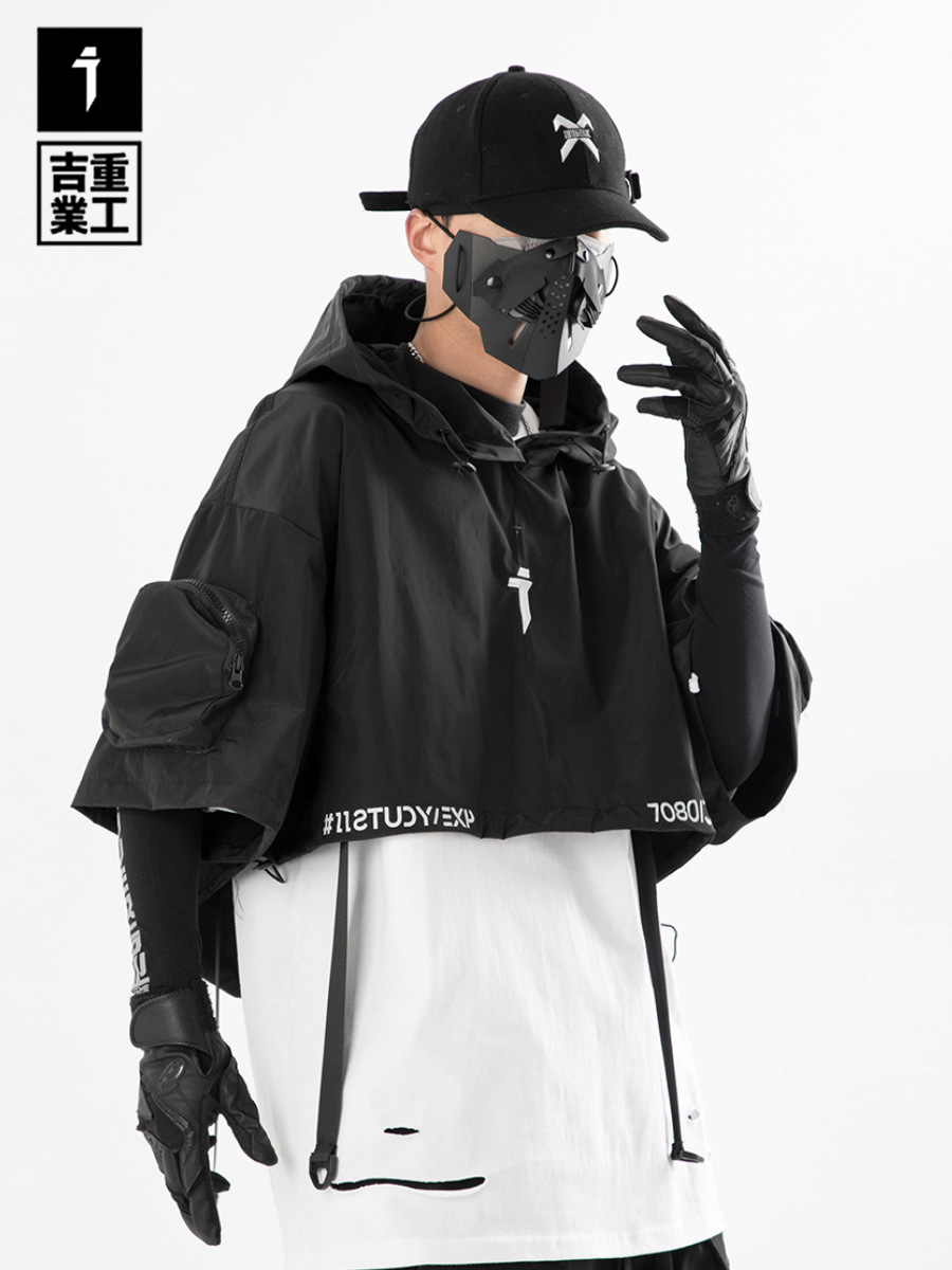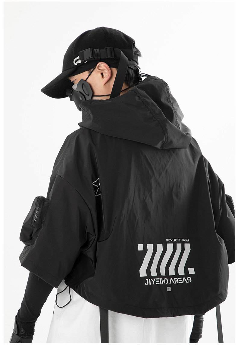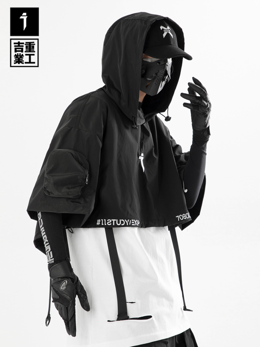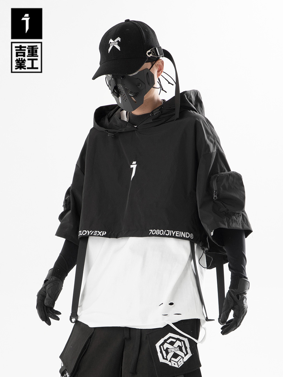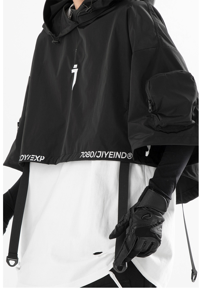 吉業重工2023春夏機能風連帽披肩短夾克男女休閒嘻哈潮牌短外套