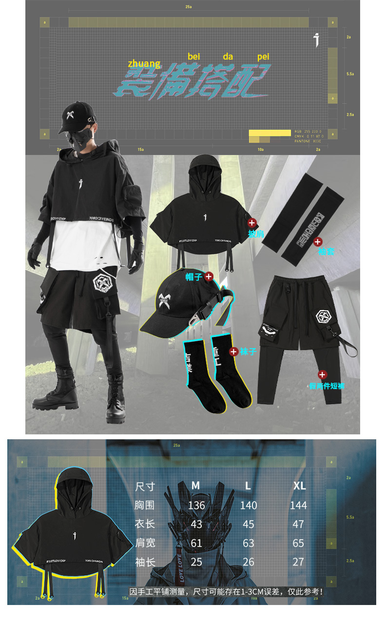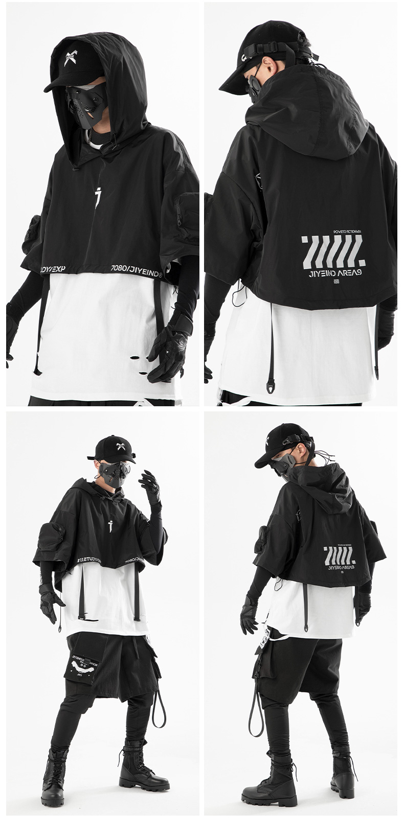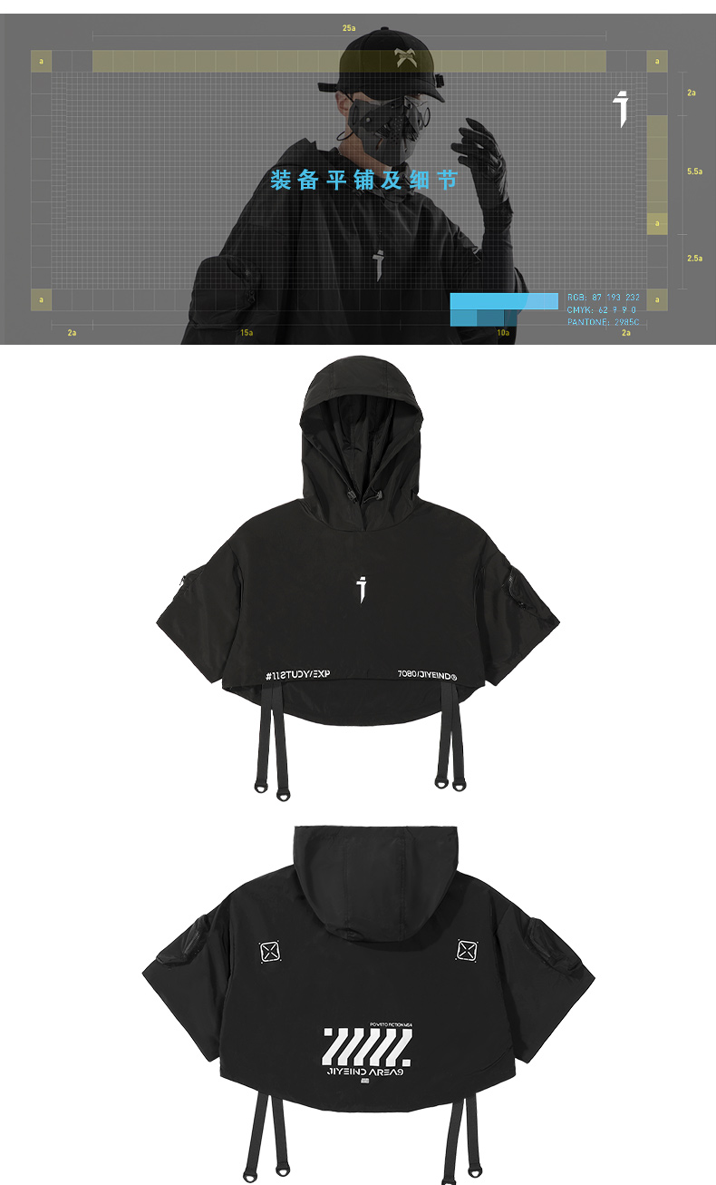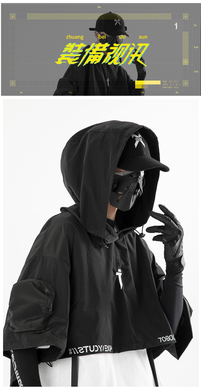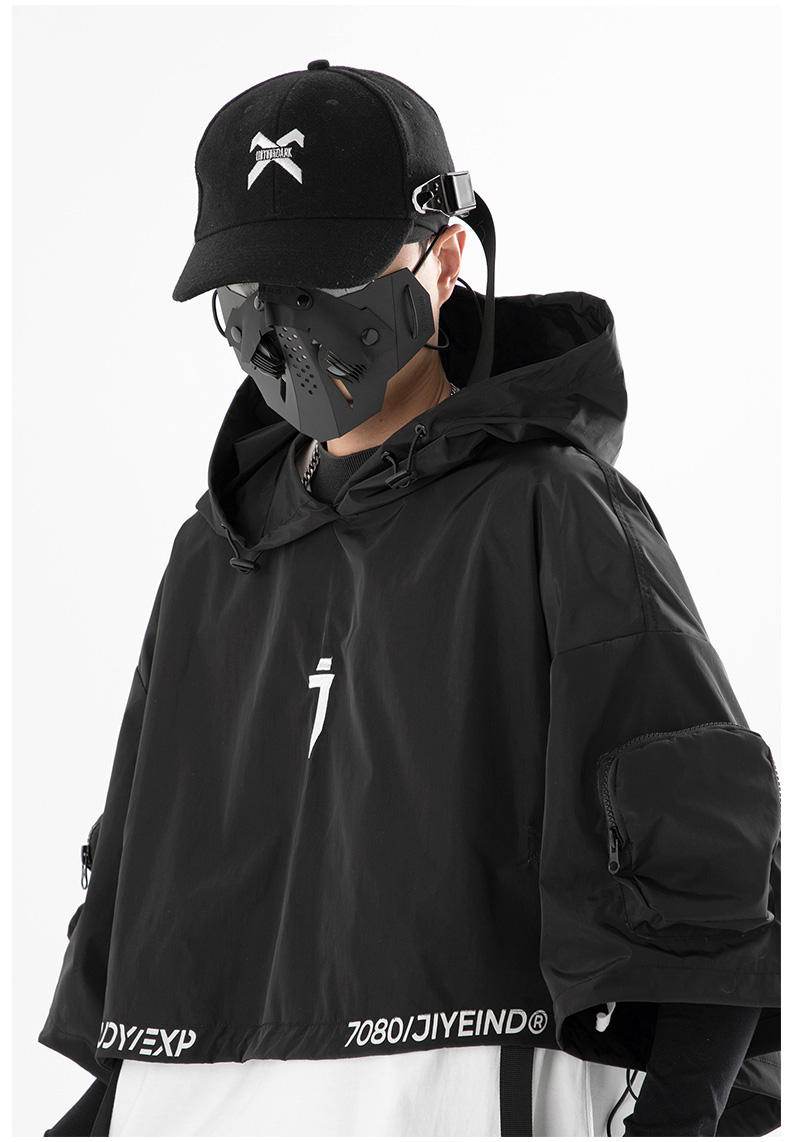 吉業重工2023春夏機能風連帽披肩短夾克男女休閒嘻哈潮牌短外套