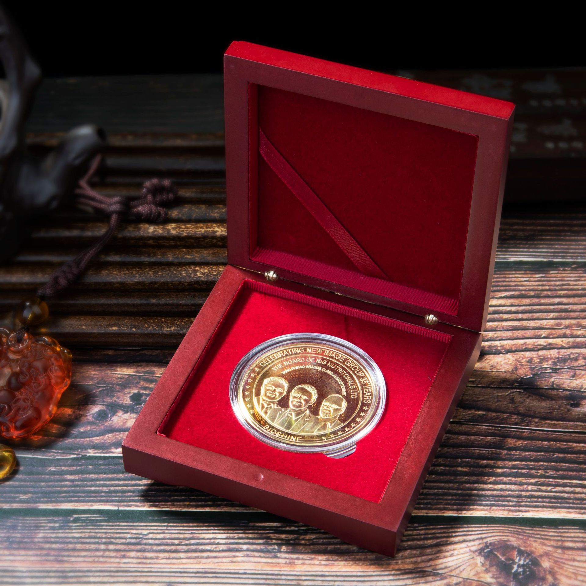 现货木盒徽章盒子 纪念币礼盒纸盒木质奖章银币胸章收藏盒