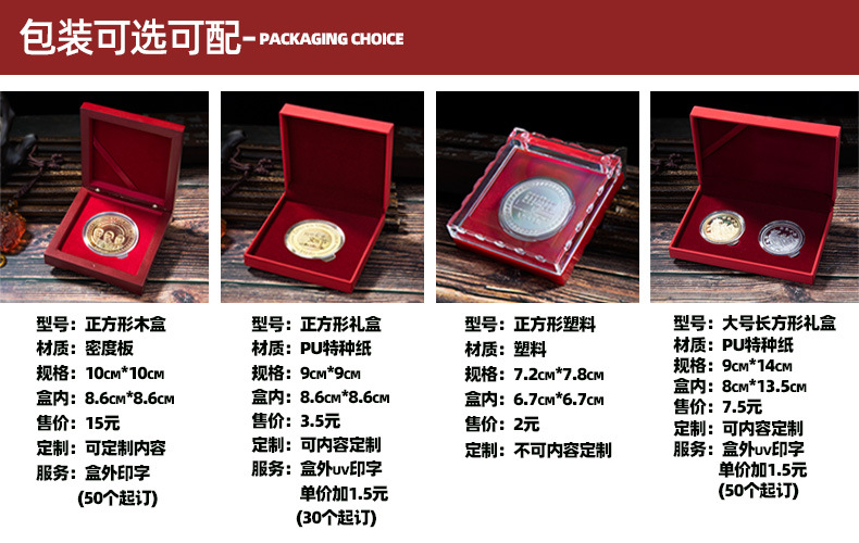颜色 小号16*21.5cm手提纸袋,大号19*28.5cm手提纸袋,7.2*7.8cm 塑料盒40币,9*9cm pu特种纸红色,9*9cm pu特种纸黑色,10*10cm 木盒,9*14 pu特种纸双枚,7.5*12.5cm双枚塑料盒,7.2*7.8cm 塑料盒45币