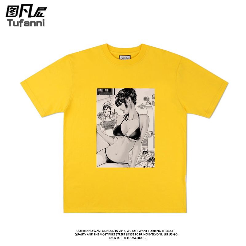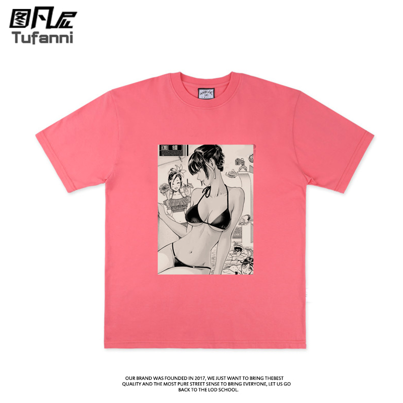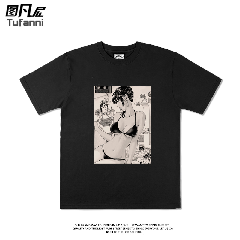 日系高街地獄吹雪日漫ins圓領小眾設計感手繪寬鬆短袖T恤男女夏