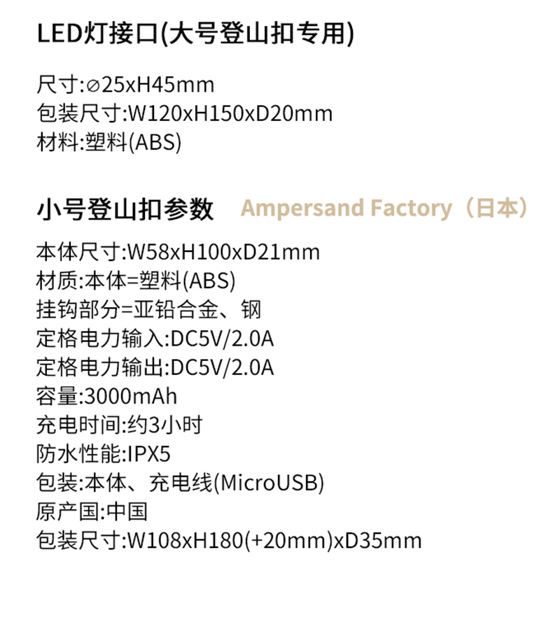日本ampersand戶外露營輕量快掛移動充多功能防水戰術風登山扣D字
