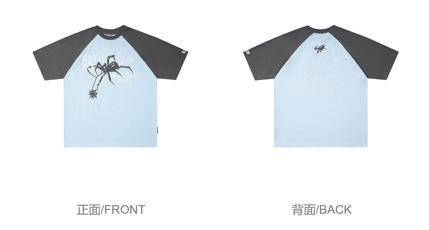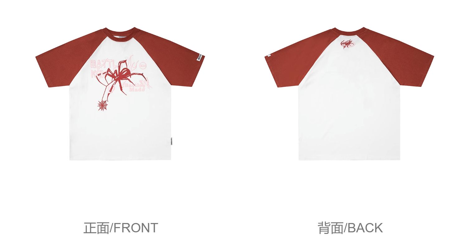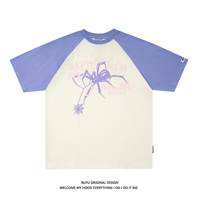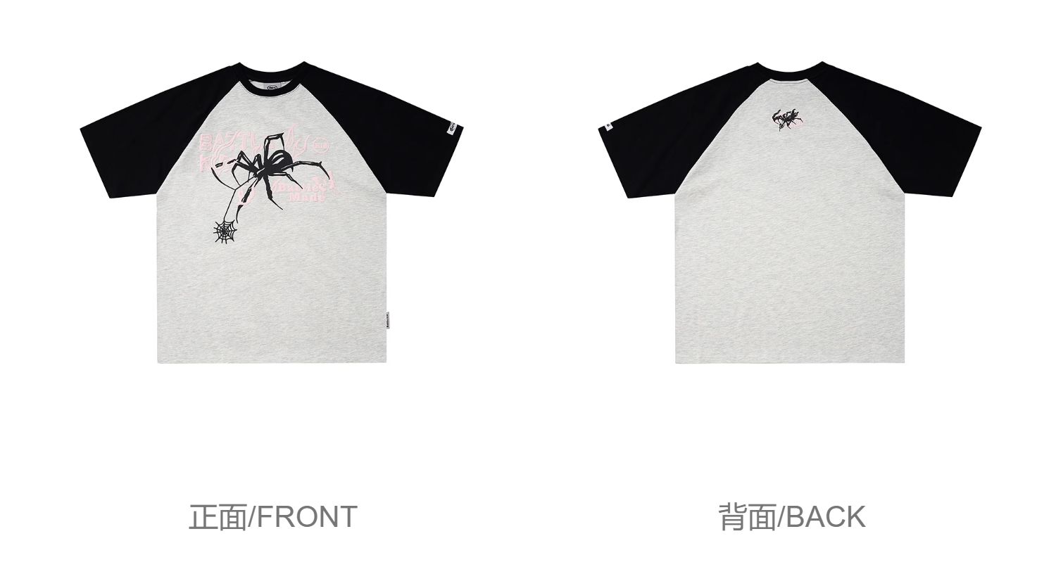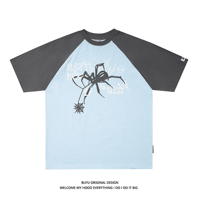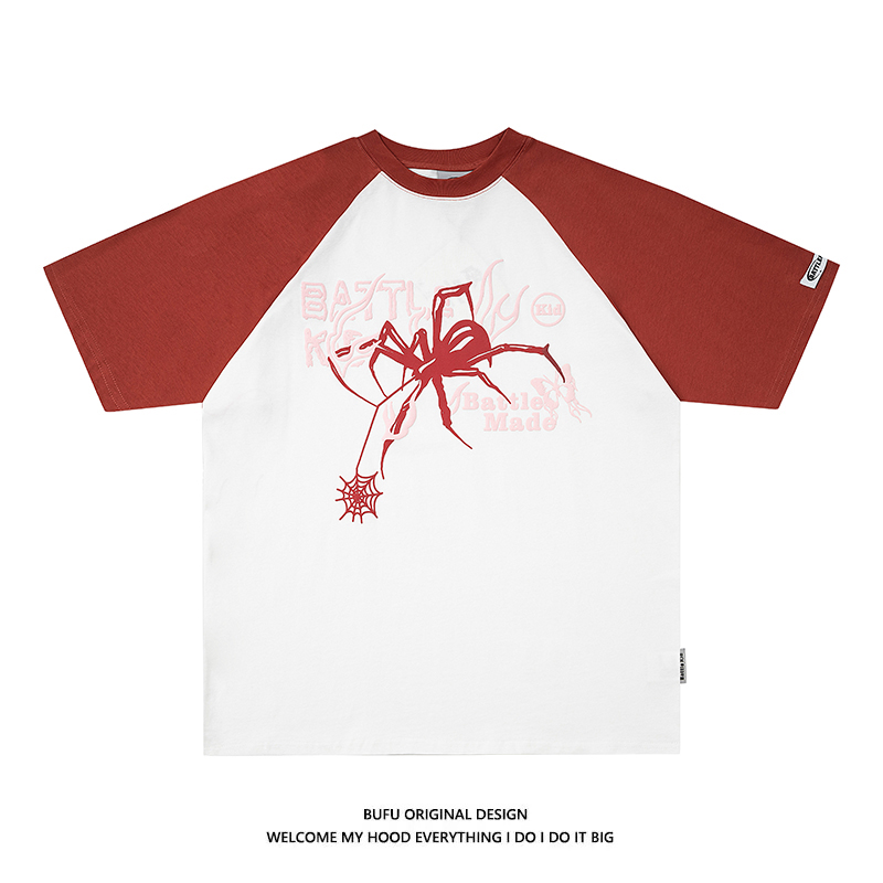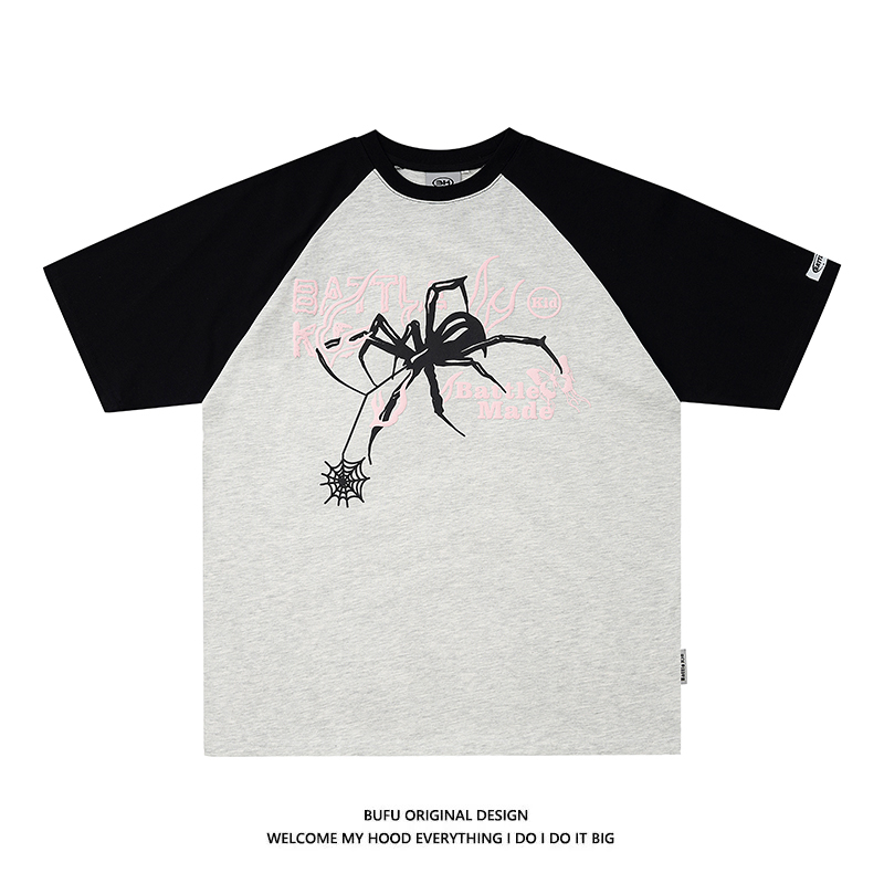 億萬少年BUFU美式復古蜘蛛短袖T恤男女夏季情侶甜酷國潮牌插肩tee