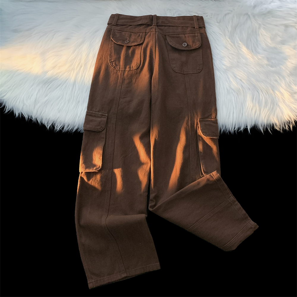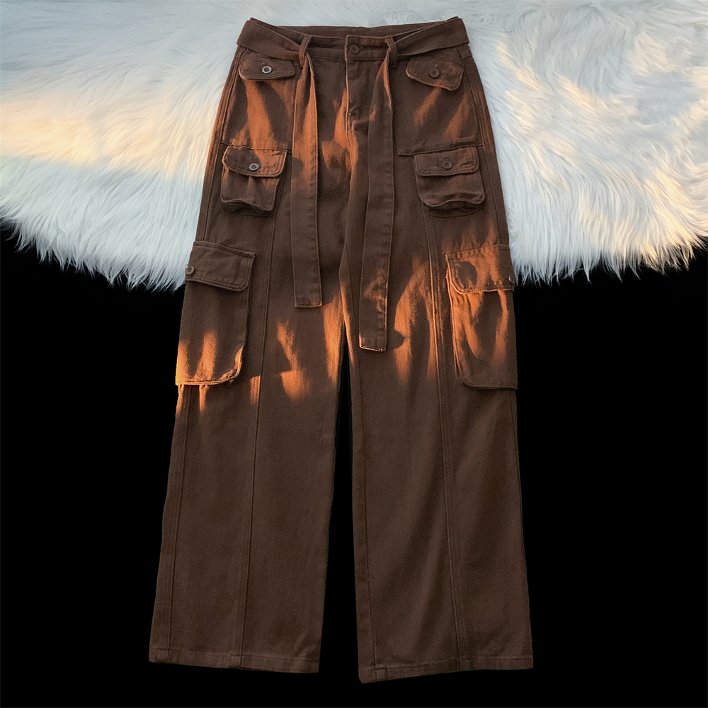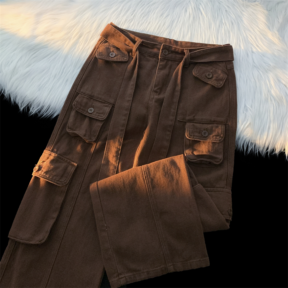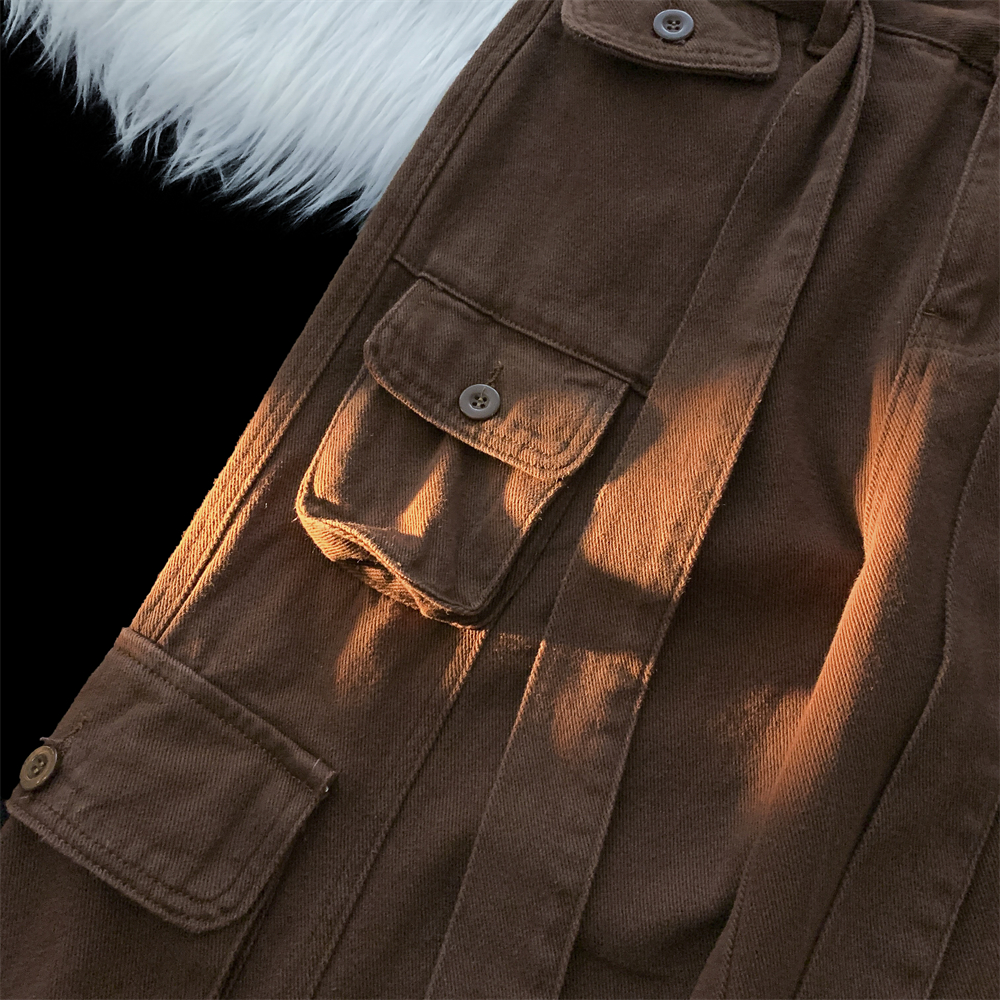 AMUP Vintage 美式街頭小眾設計復古情侶立體多口袋工裝休閒長褲