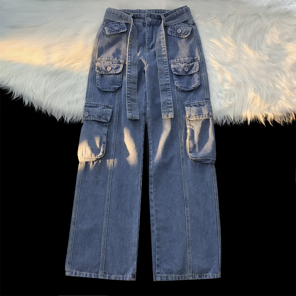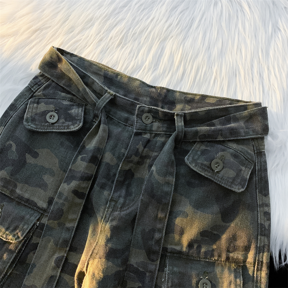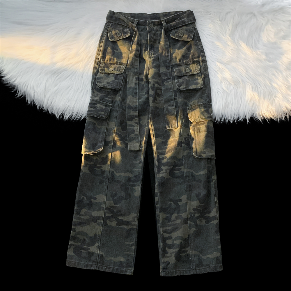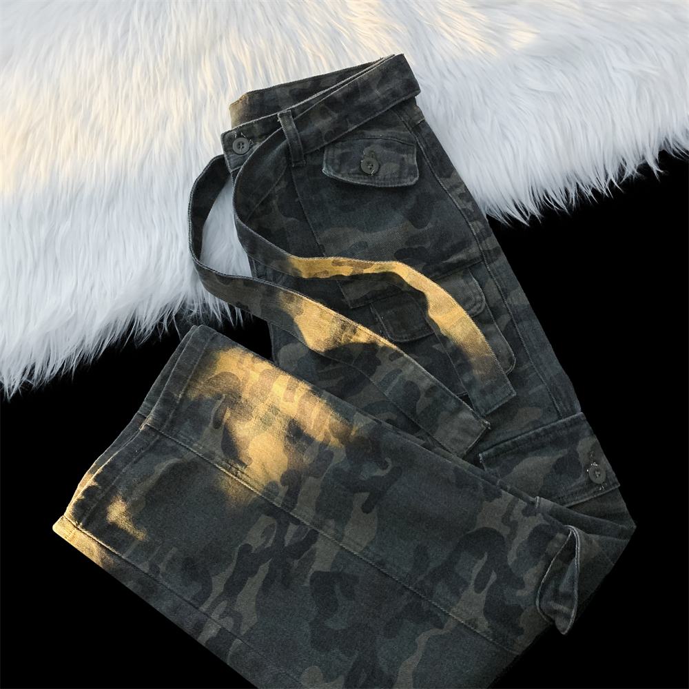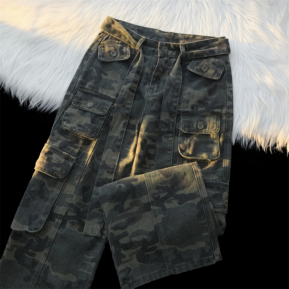 AMUP Vintage 美式街頭小眾設計復古情侶立體多口袋工裝休閒長褲
