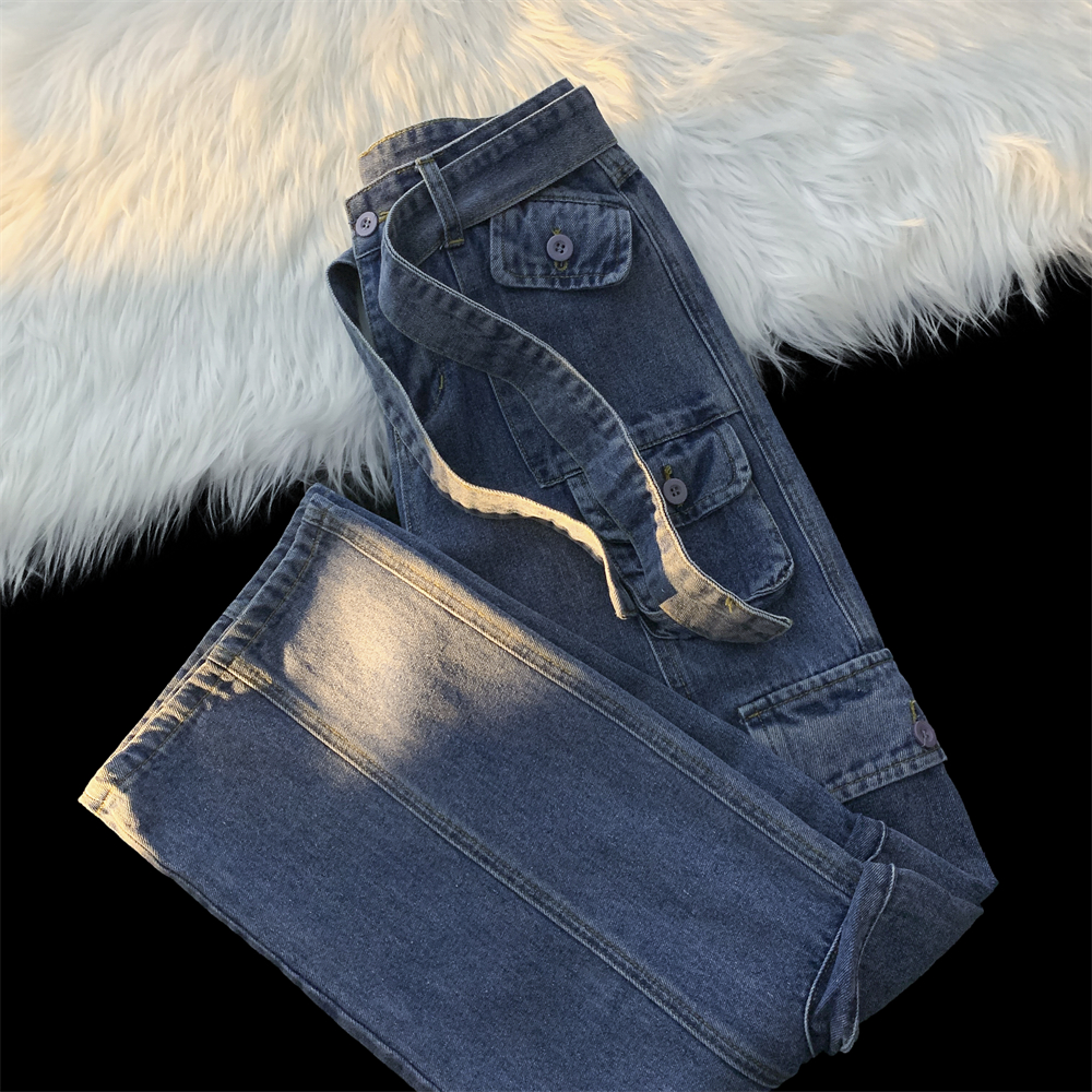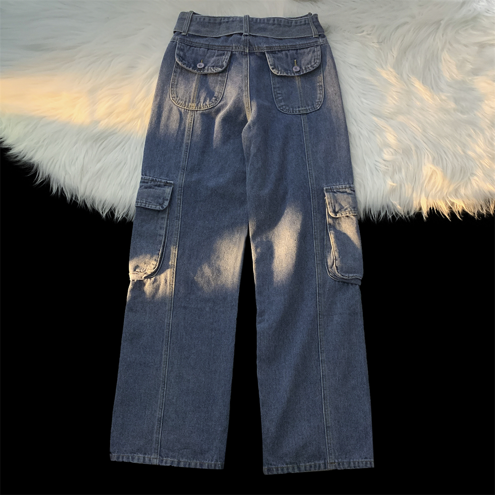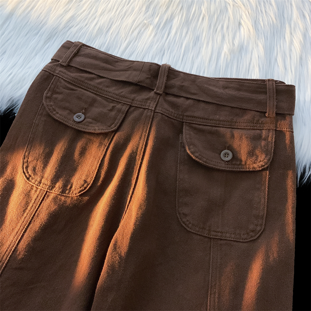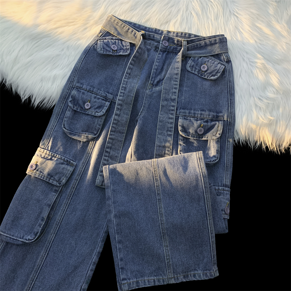 AMUP Vintage 美式街頭小眾設計復古情侶立體多口袋工裝休閒長褲