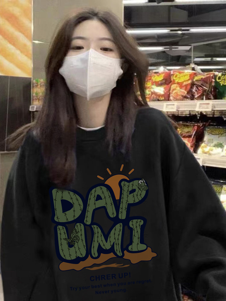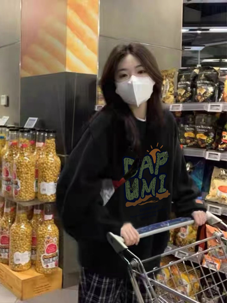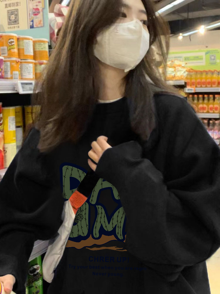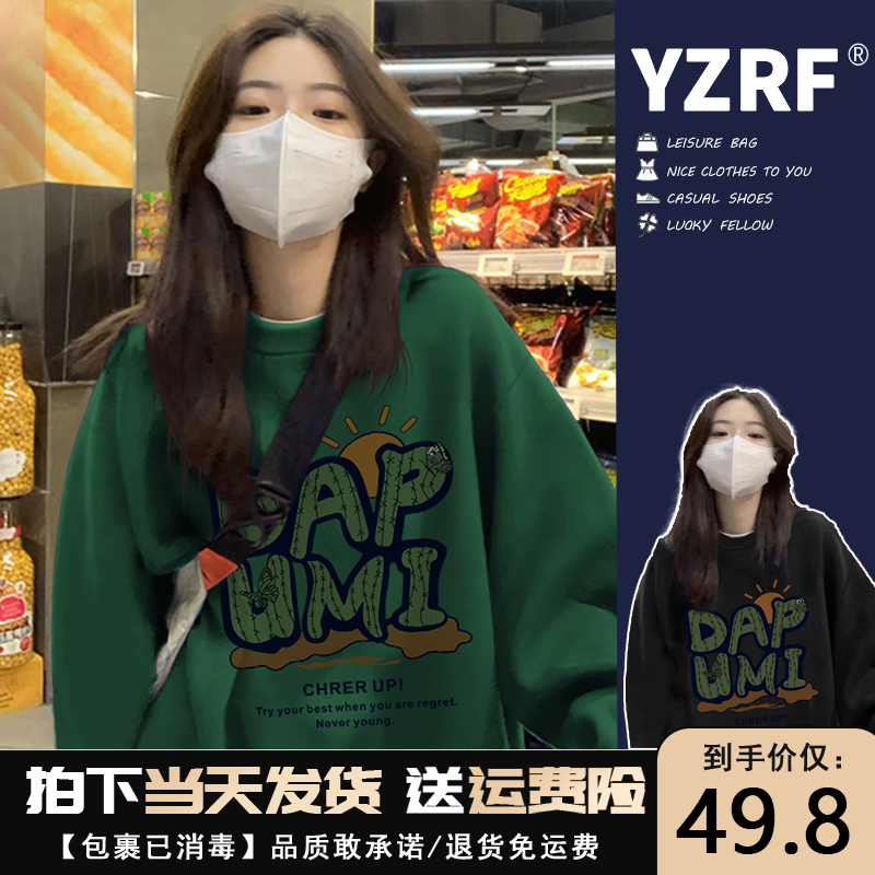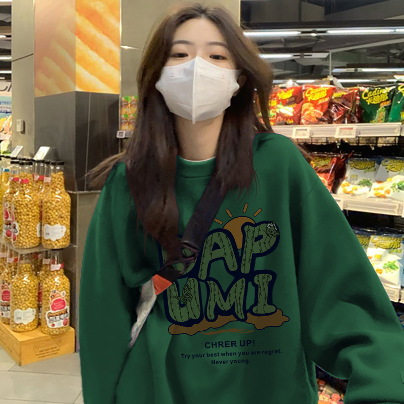 衛衣女春秋薄款寬鬆美式復古oversize潮牌小個子圓領無帽綠色上衣