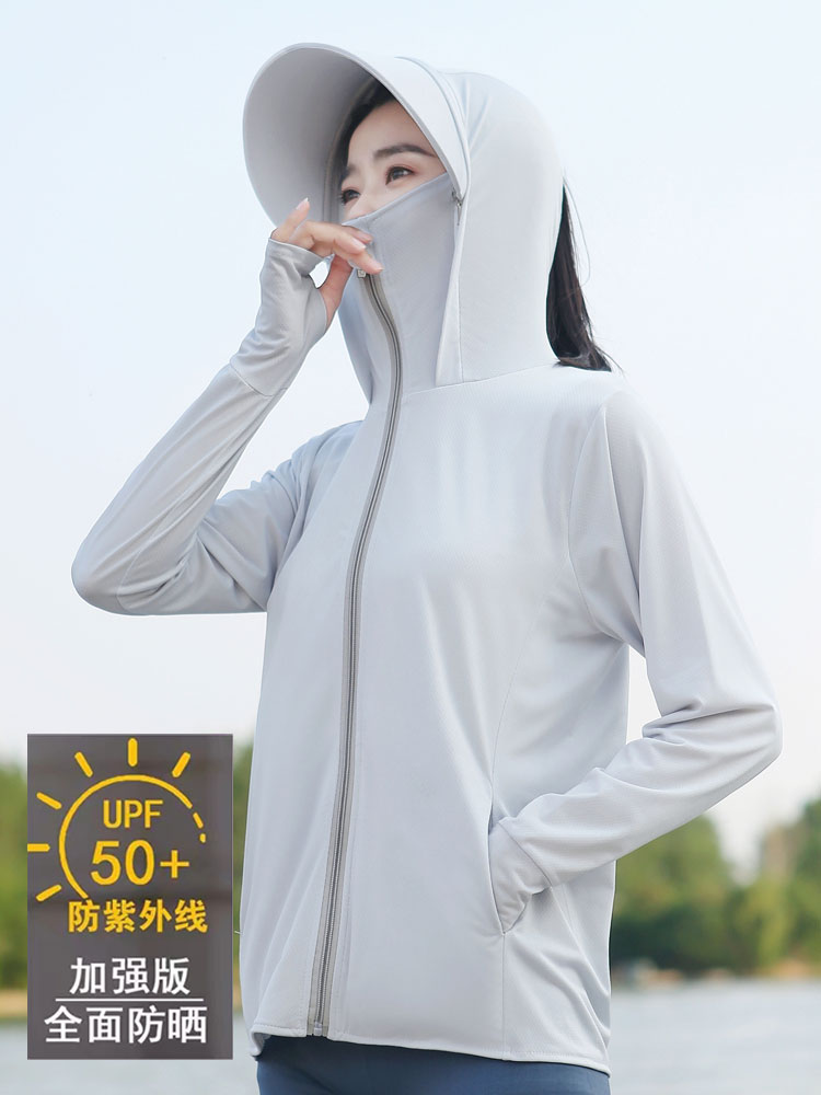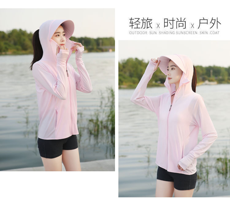 涼感冰絲防曬衣女夏季帽簷防曬服抗UV透氣皮膚衣戶外寬鬆薄款