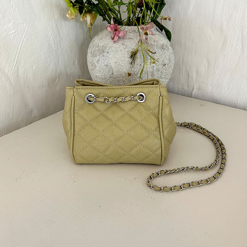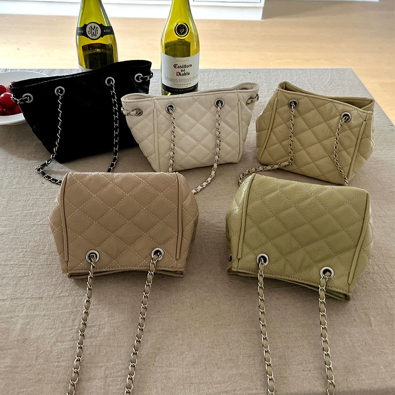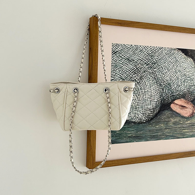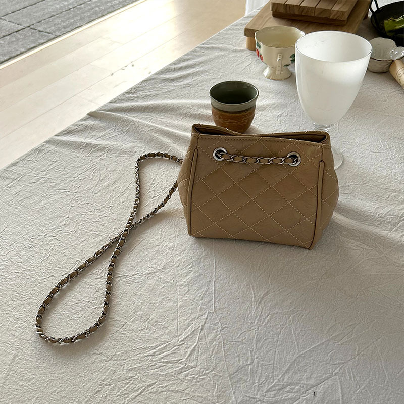 小众时尚菱格链条斜挎水桶包包女2024新款韩版百搭单肩菜篮子包批