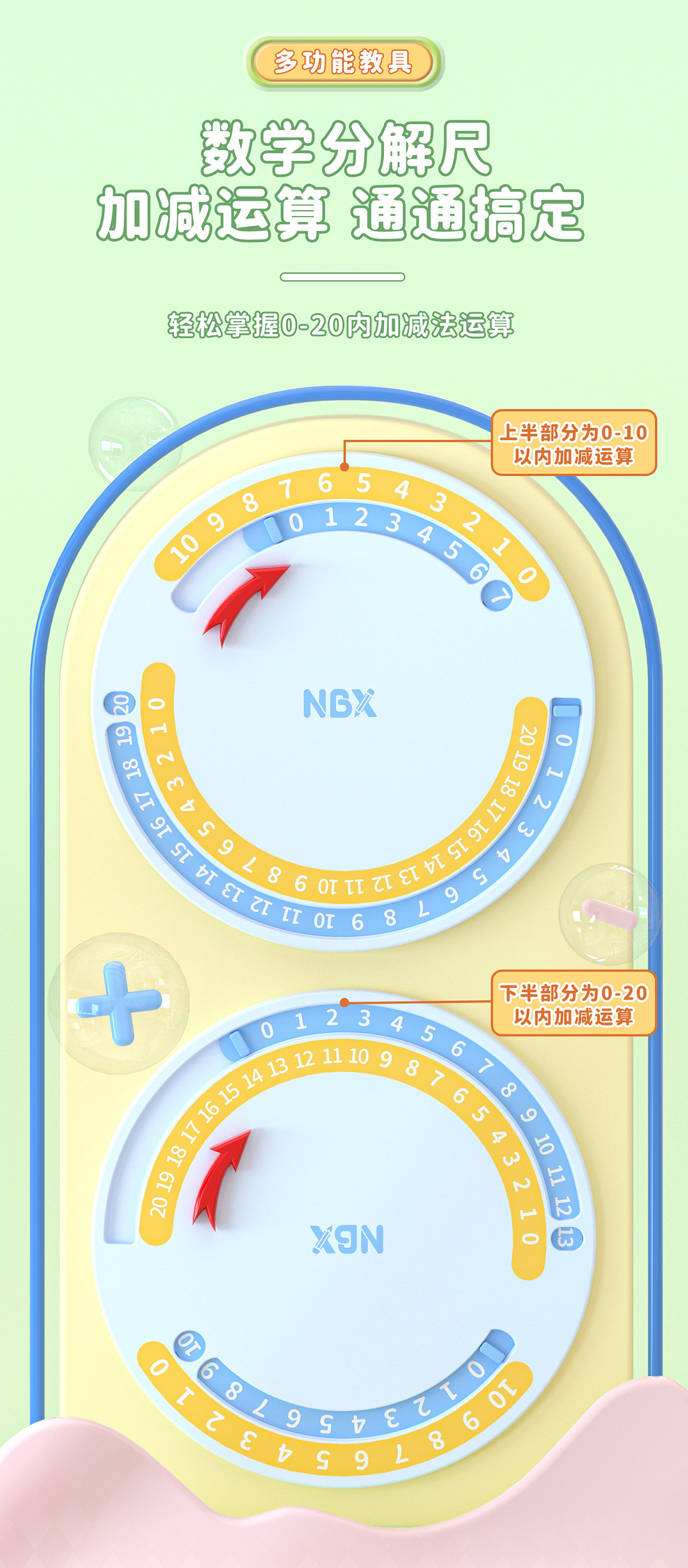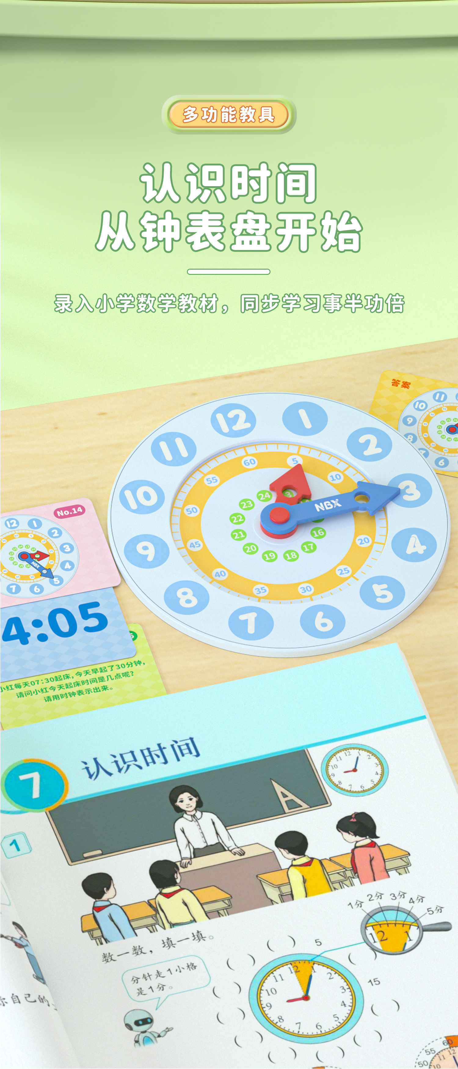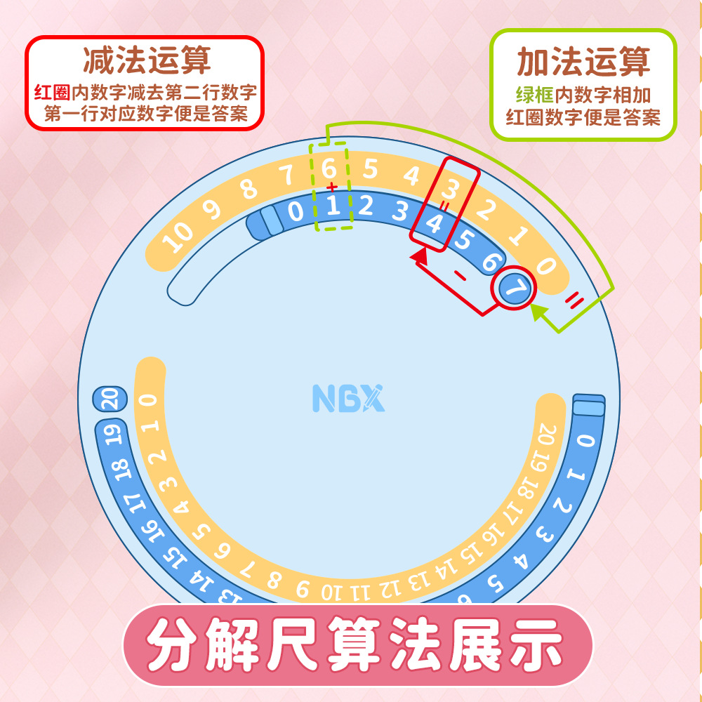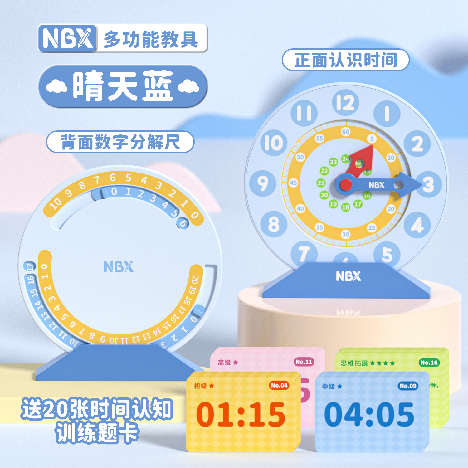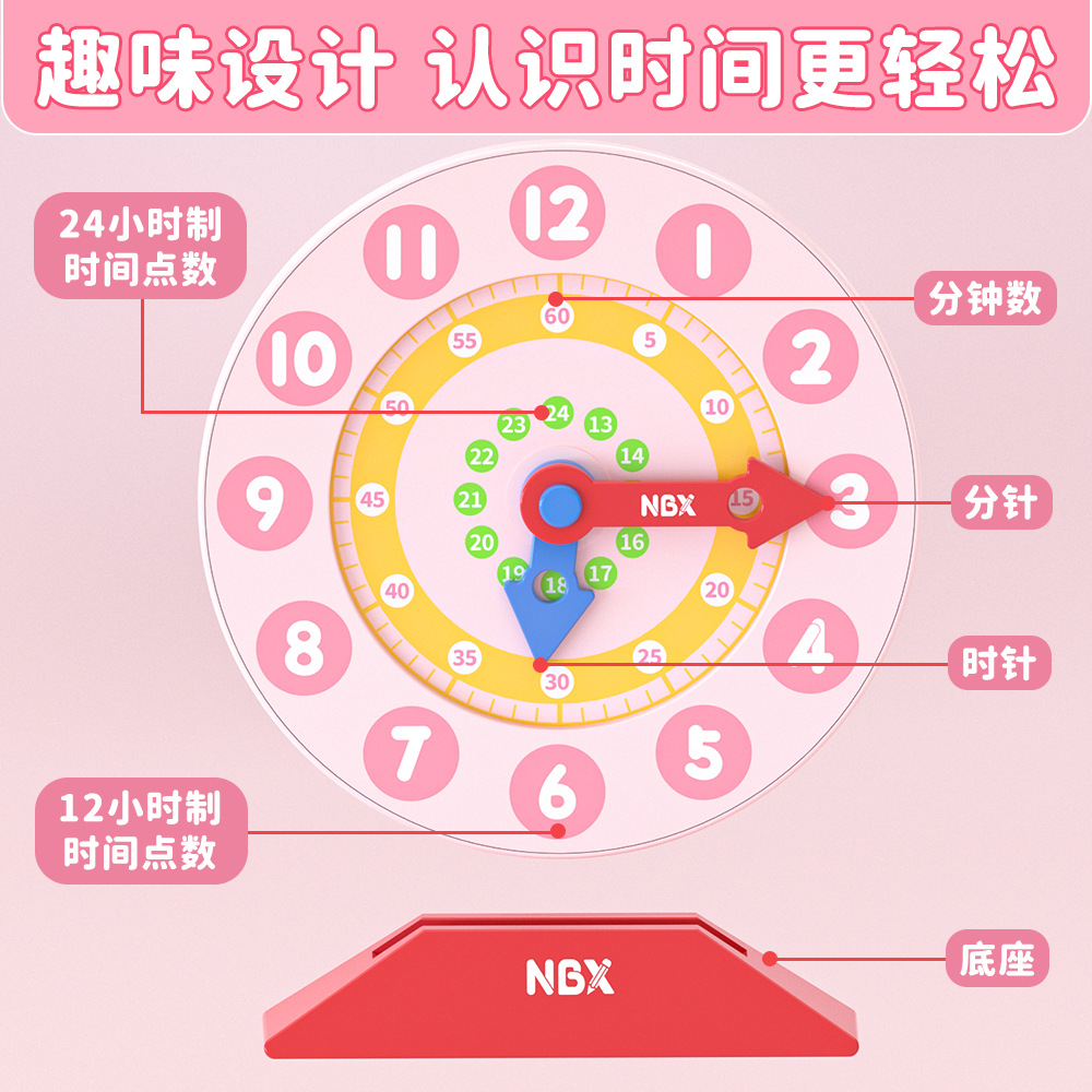 NBX多功能教具时钟模型20以内加减分解尺二合一认识时间算数学习