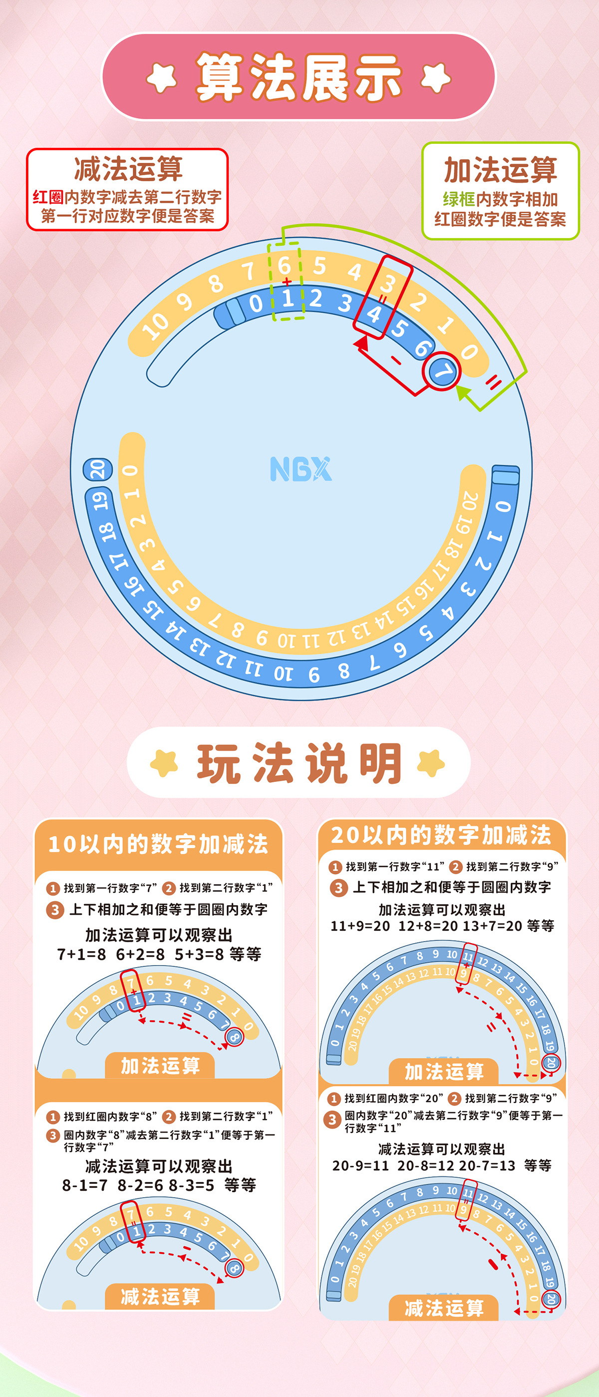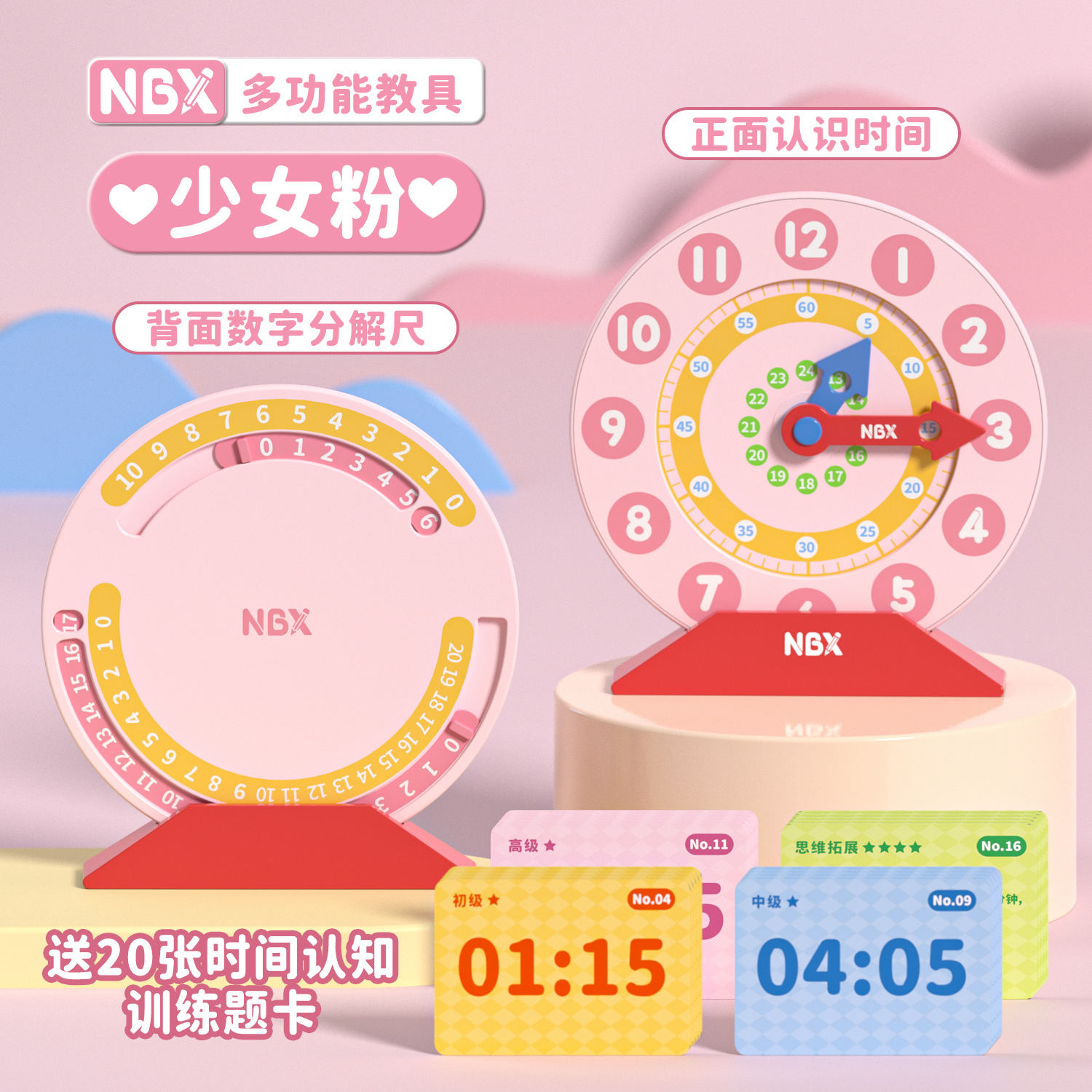 颜色 多功能教具-认识时间+数学分解-粉【赠20张题卡】,多功能教具-认识时间+数学分解-蓝【赠20张题卡】,多功能教具-认识时间+数学分解-粉+蓝【赠40张题卡】