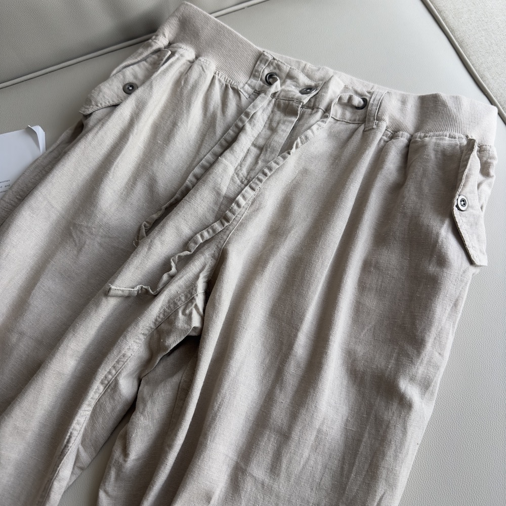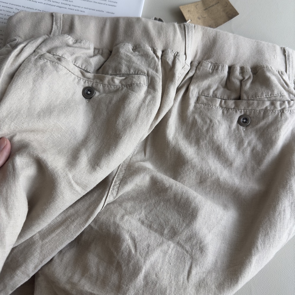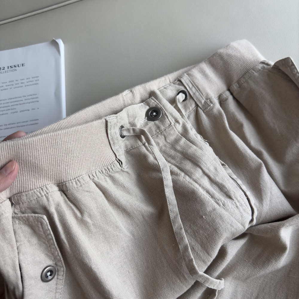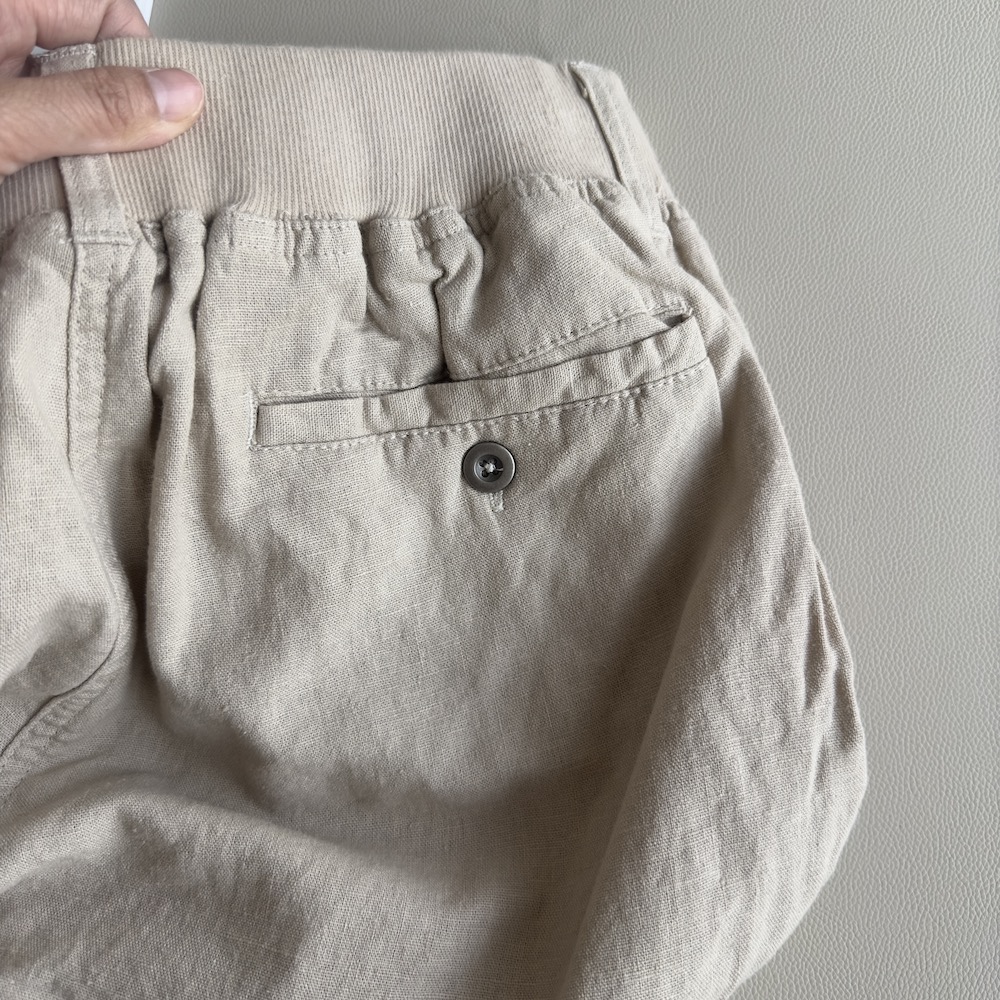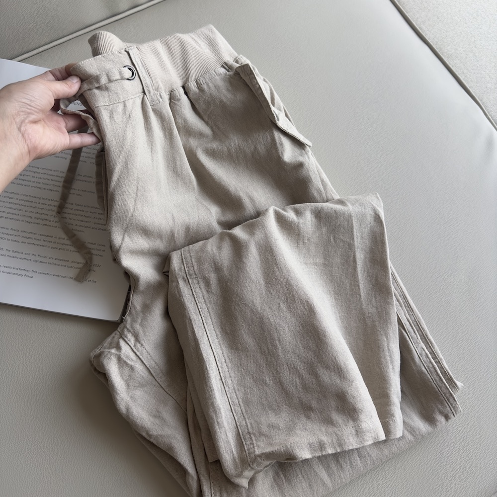 出口英國訂單 55亞麻+45棉 春夏男士鬆緊腰寬鬆直筒棉麻休閒褲