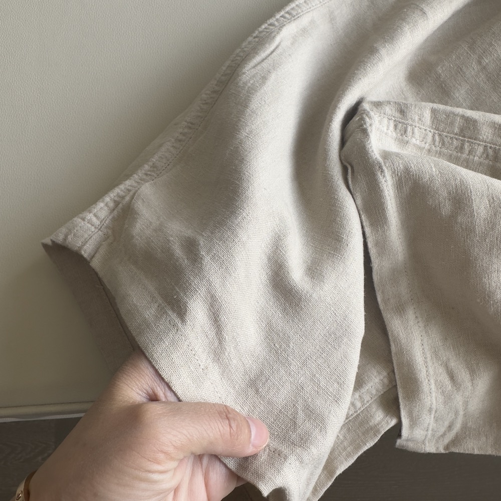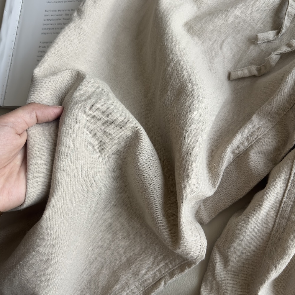 面料含55%亚麻45%粘纤,透气舒适好穿,