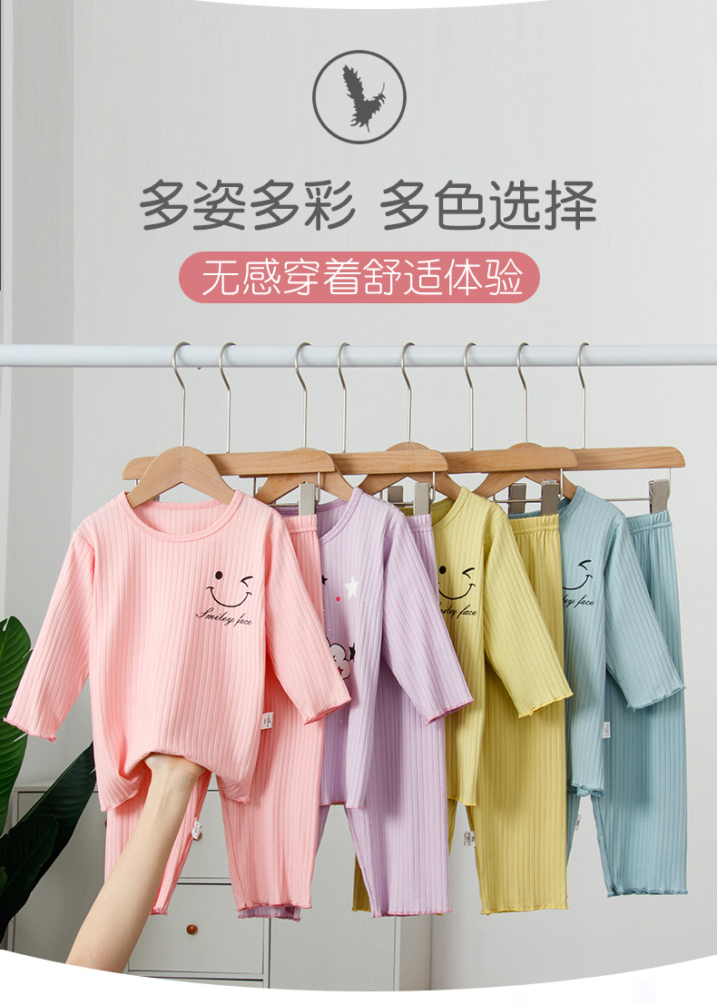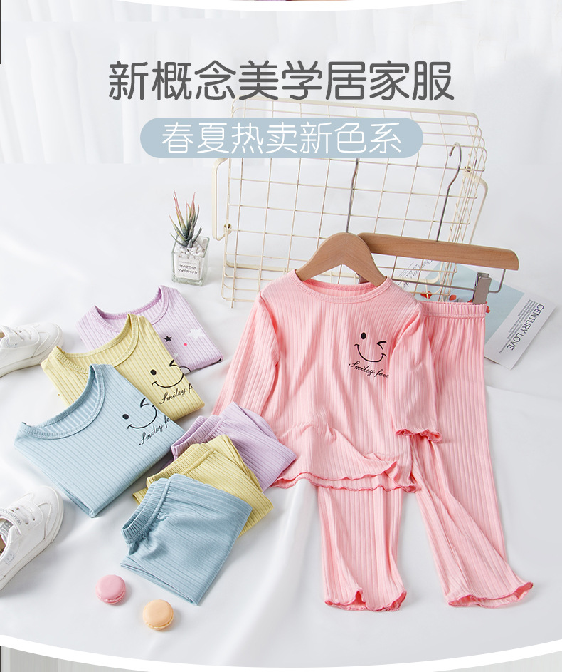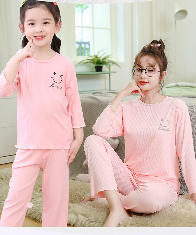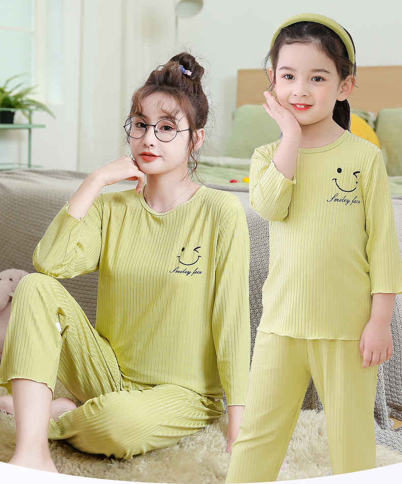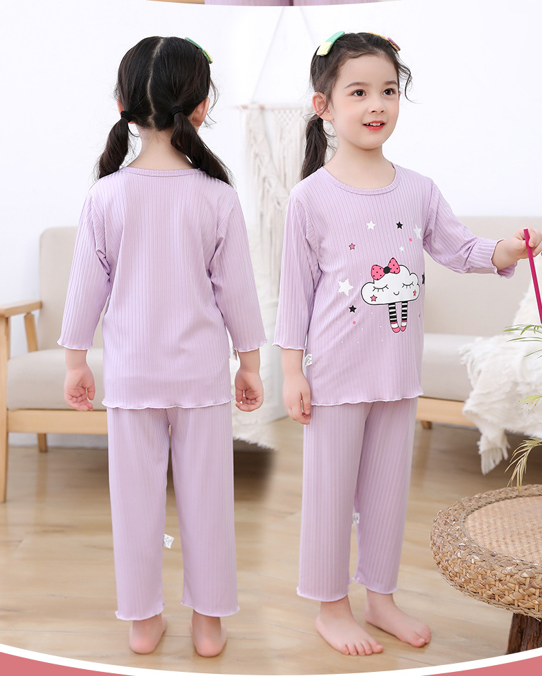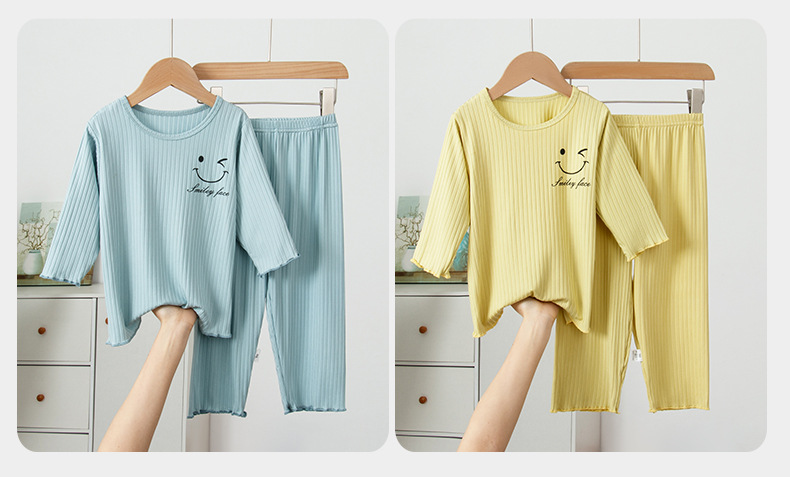夏季亲子冰丝七分袖套装宝宝卡通透气空调服中大童长裤睡衣家居服