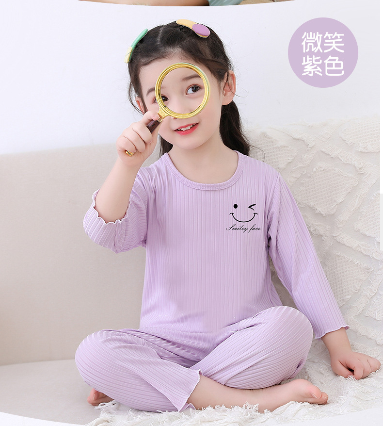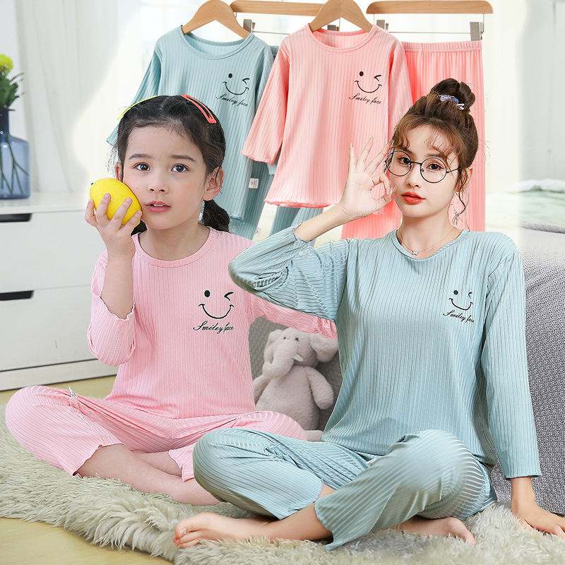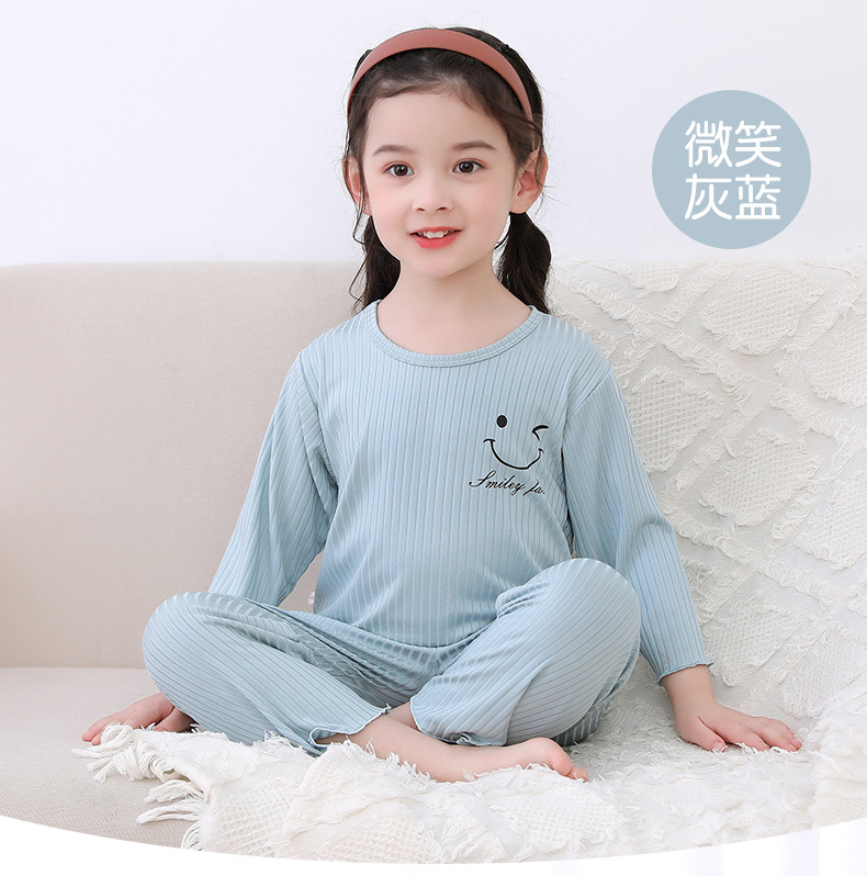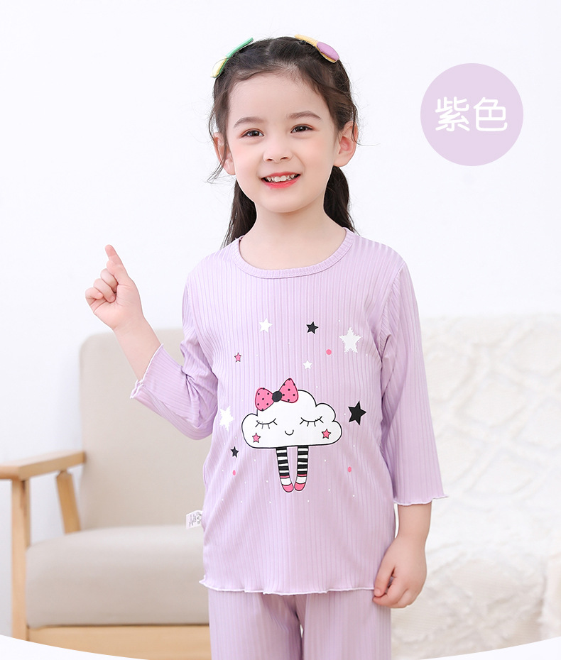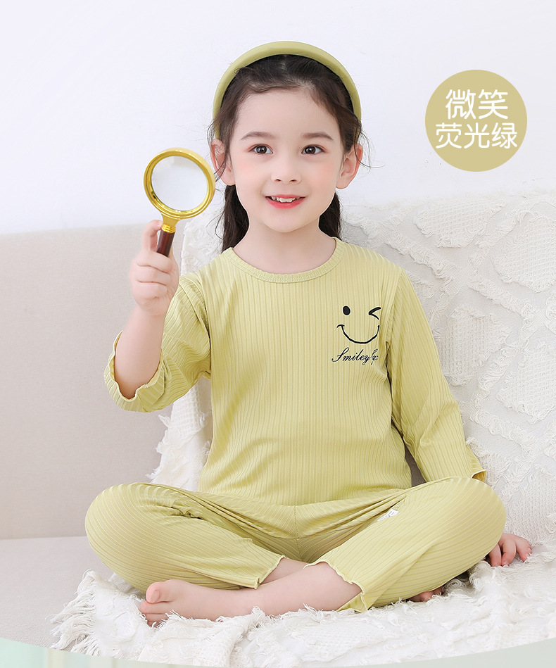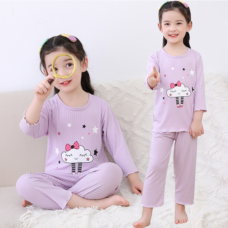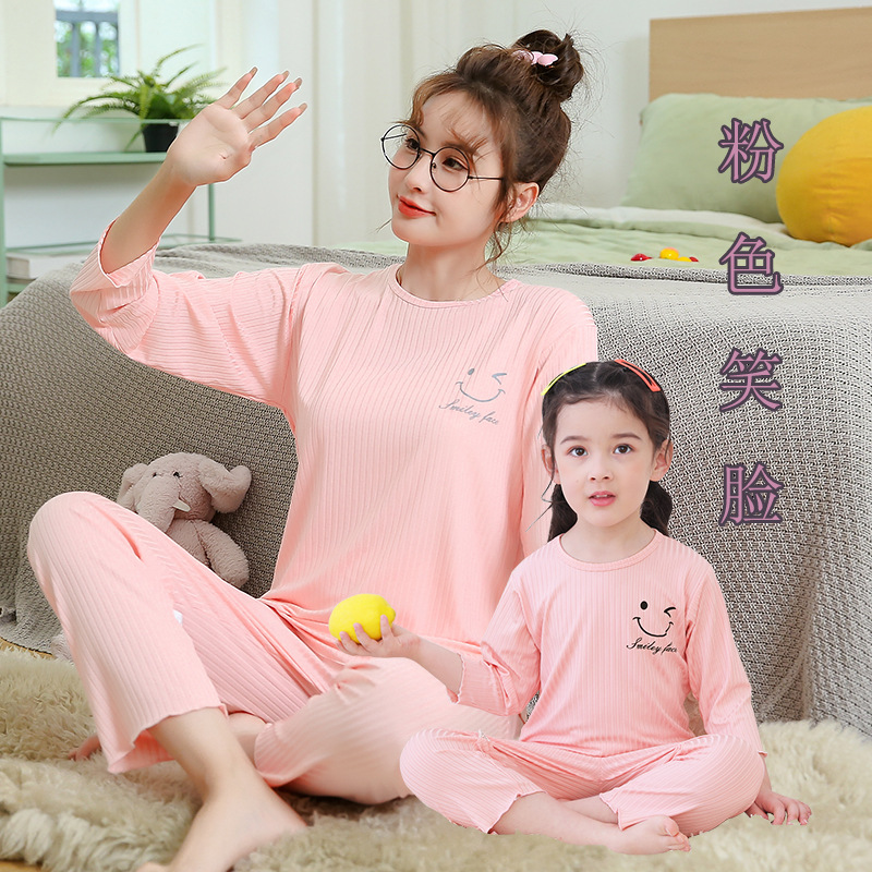 夏季亲子冰丝七分袖套装宝宝卡通透气空调服中大童长裤睡衣家居服