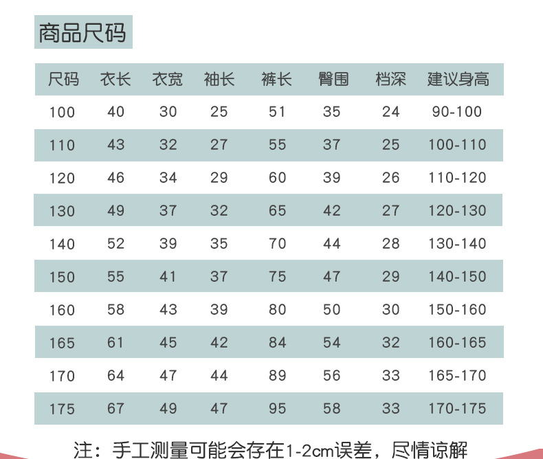 适合身高 100cm,110cm,120cm,130cm,140cm,150cm,160cm,165cm,170cm,175cm