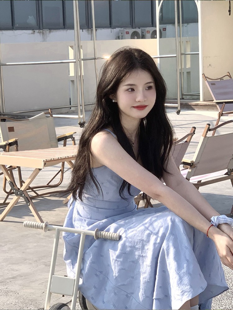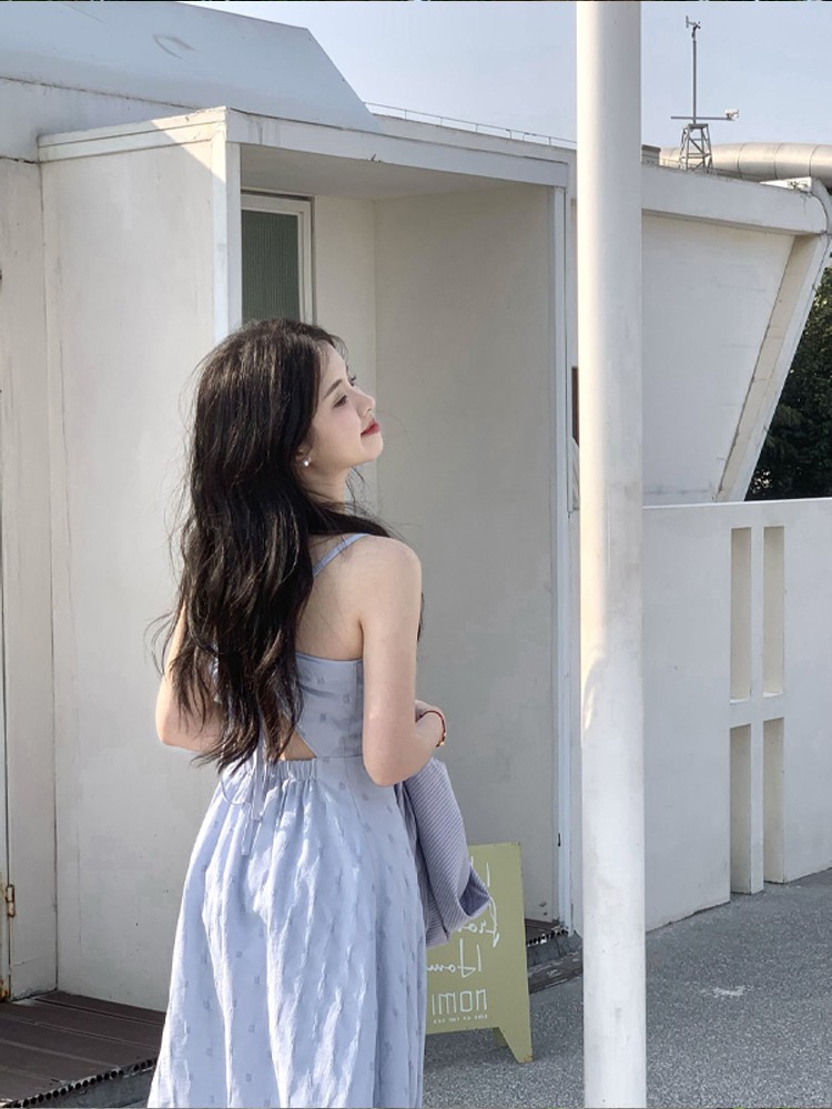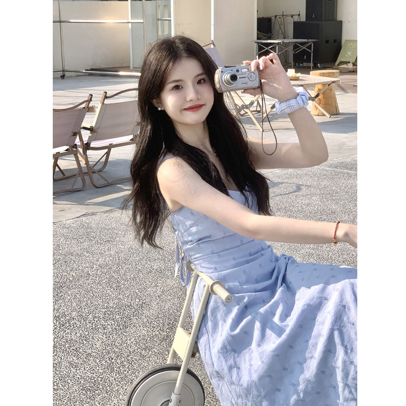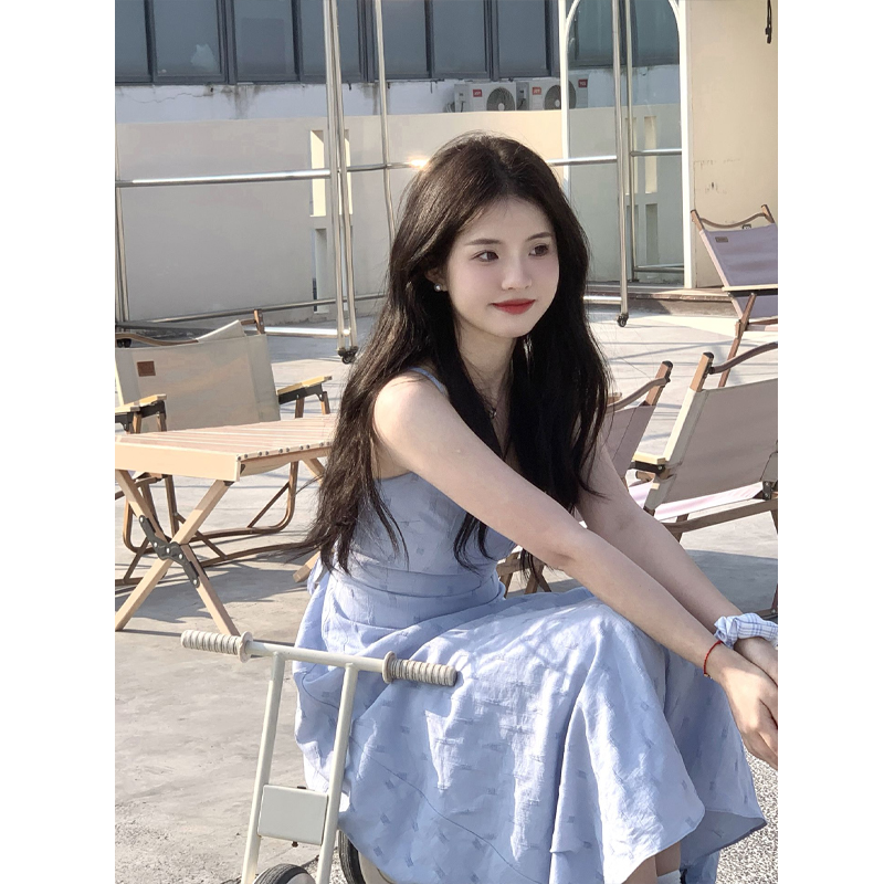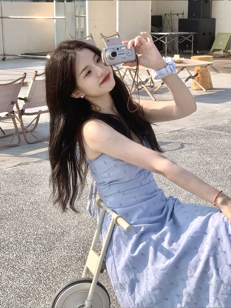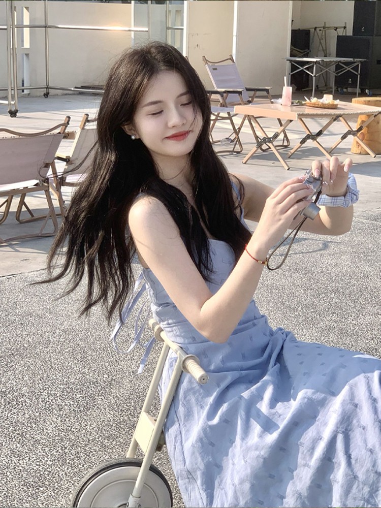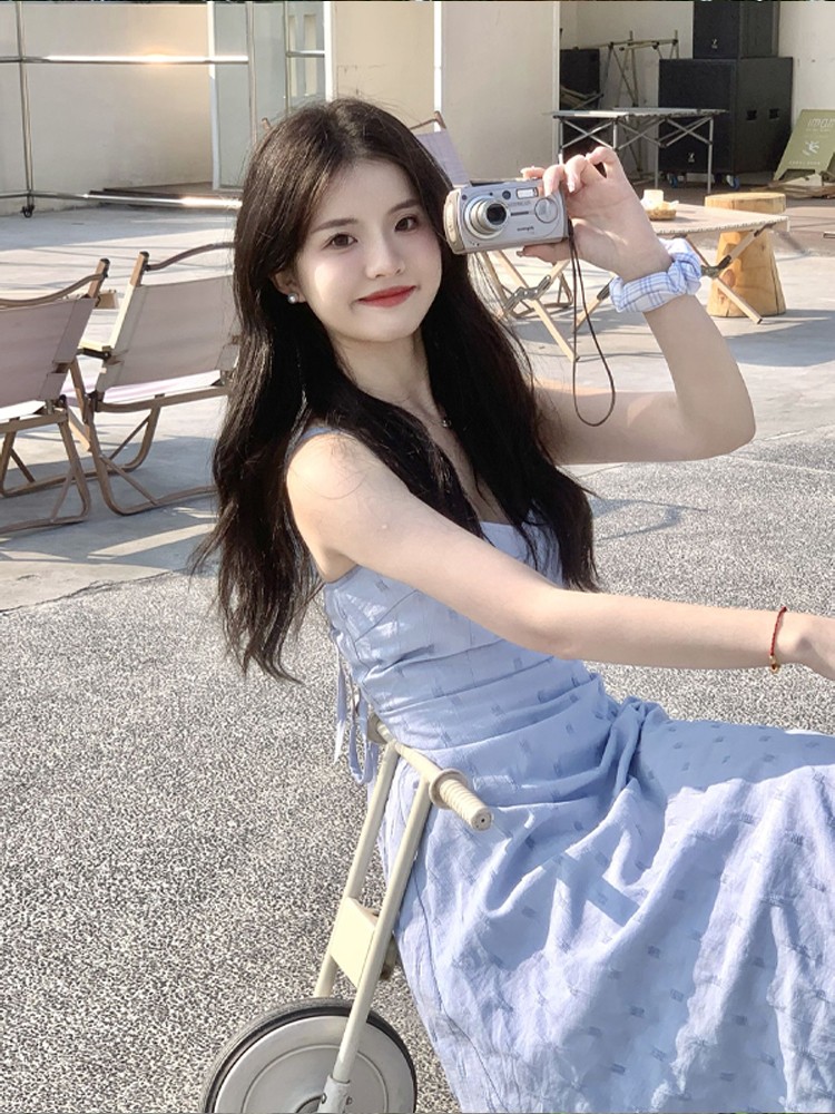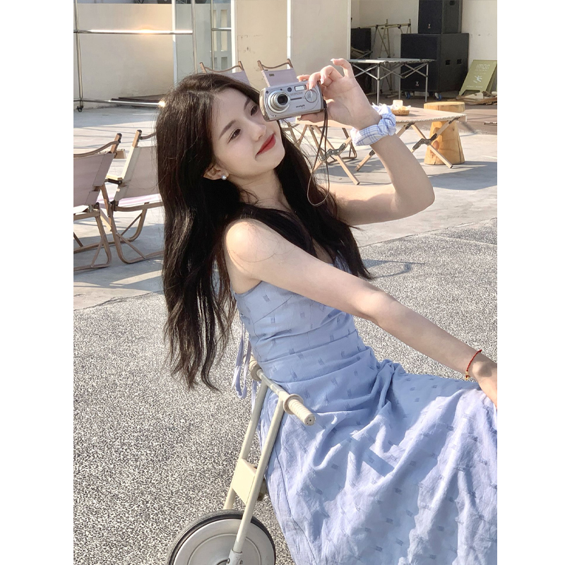 海邊度假雪紡吊帶洋裝女夏季高級感收腰露背氣質無袖背心長裙子