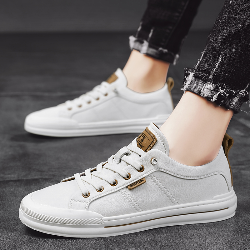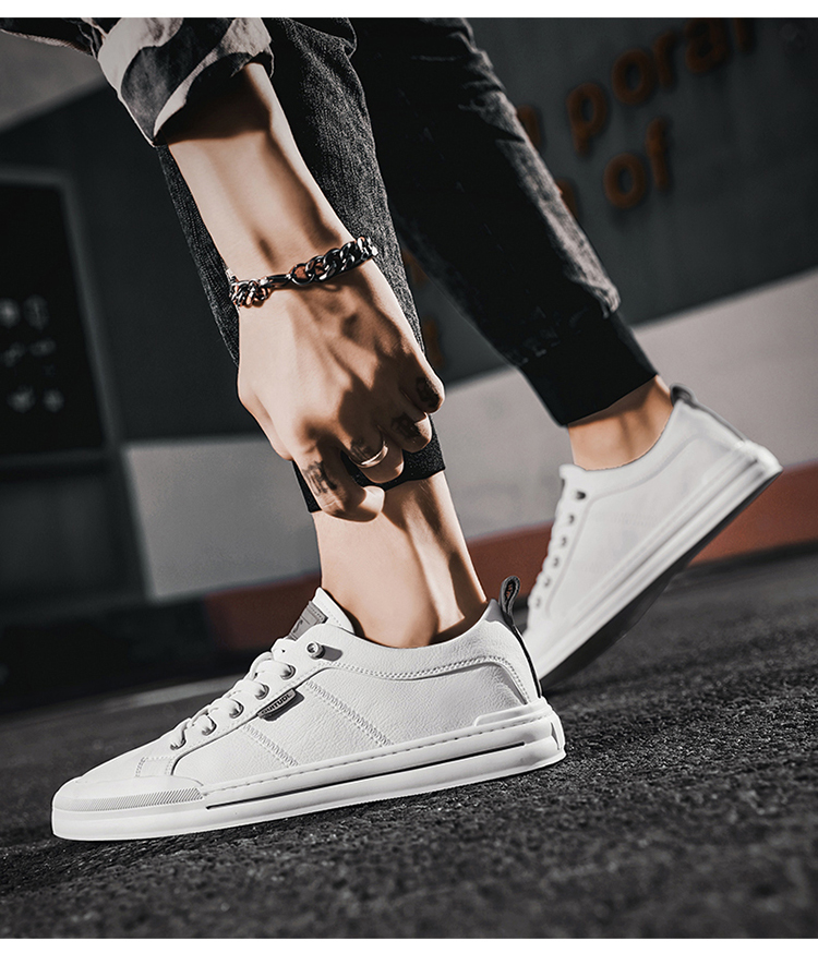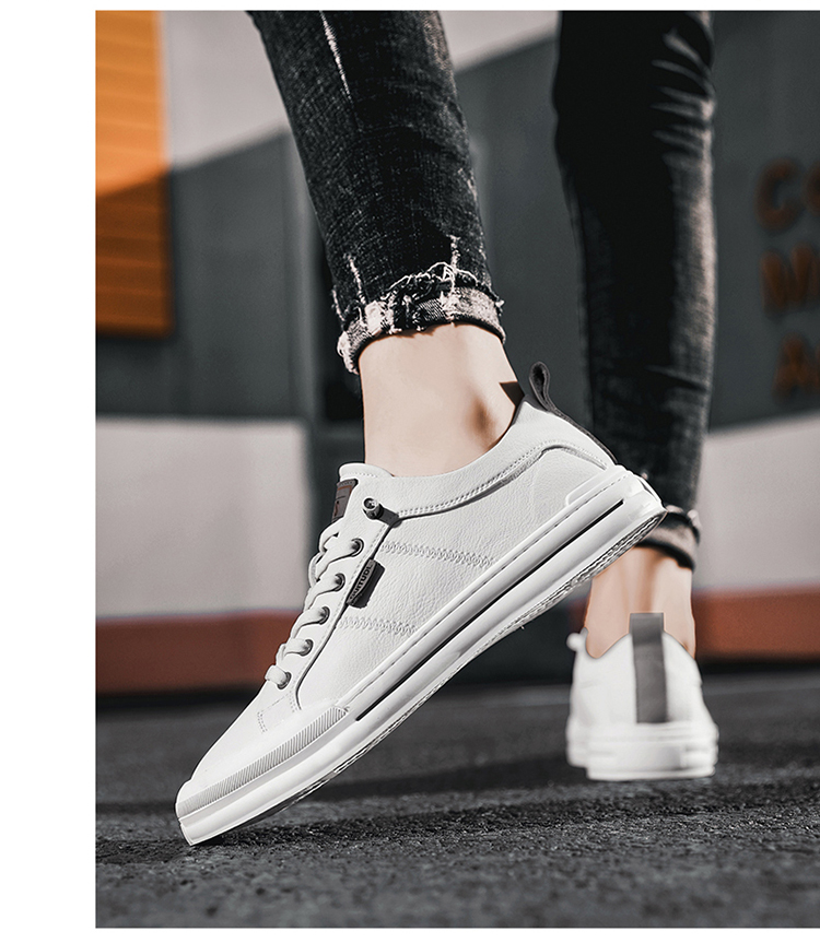 男鞋2023年新款夏季潮流百搭板鞋一腳蹬休閒皮鞋軟底真皮小白潮鞋