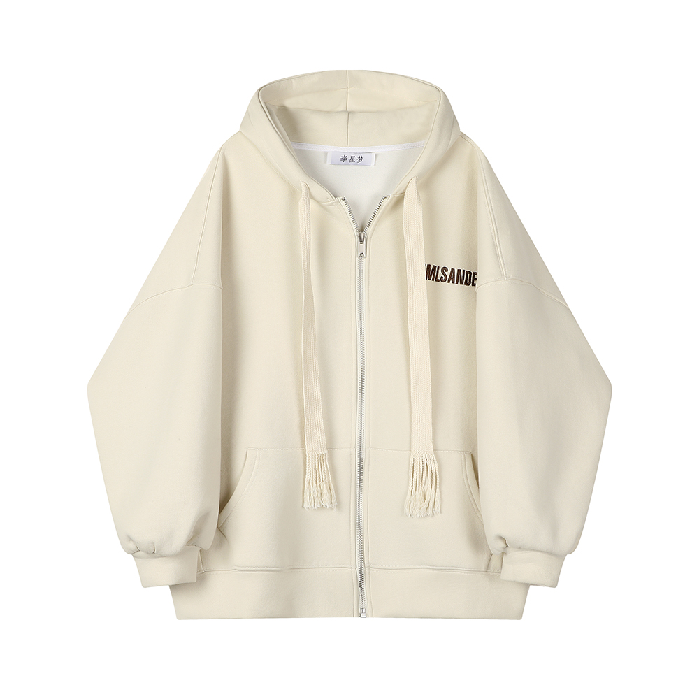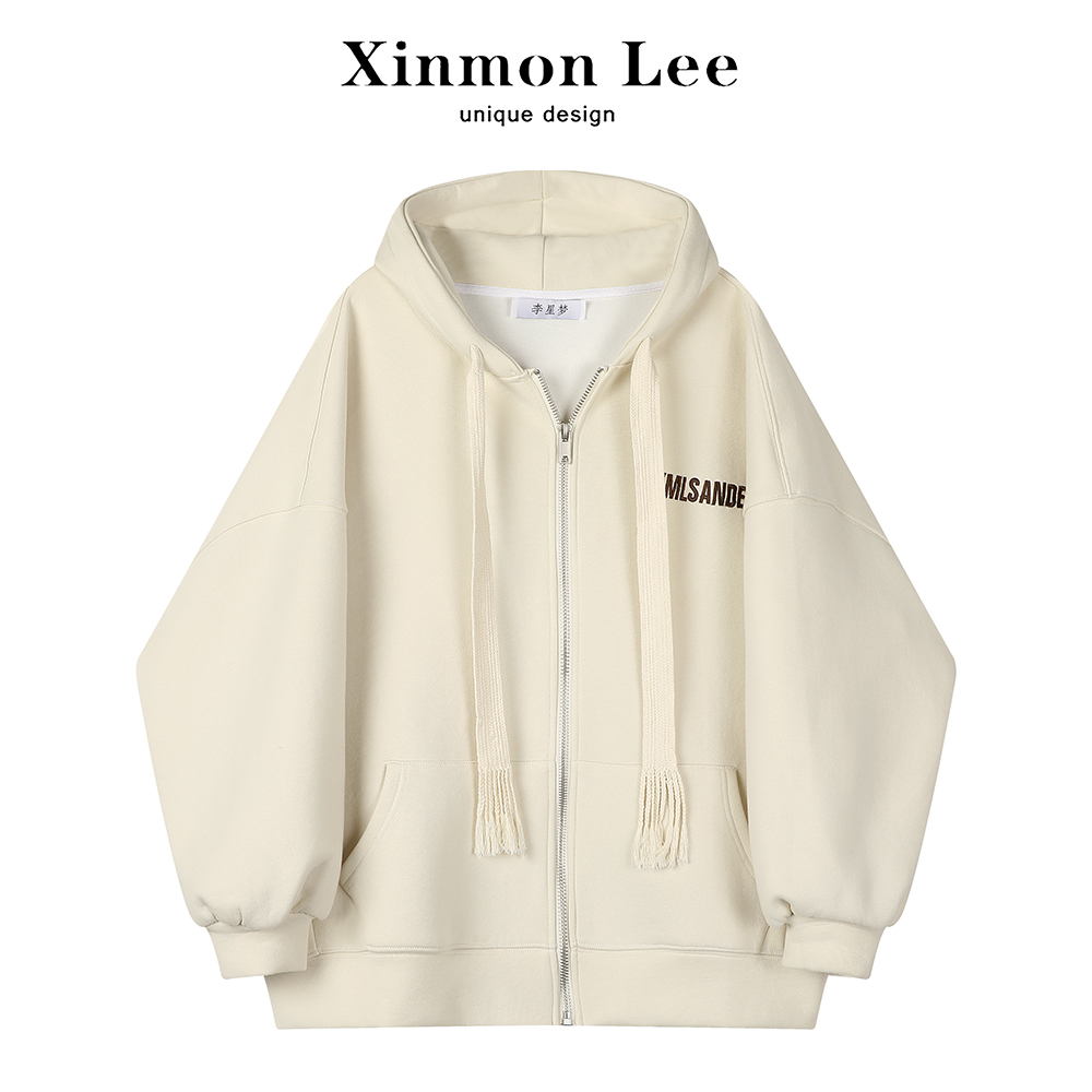 XinmonLee奶fufu連帽開衫衛衣寬鬆慵懶風女秋冬季設計感小眾外套