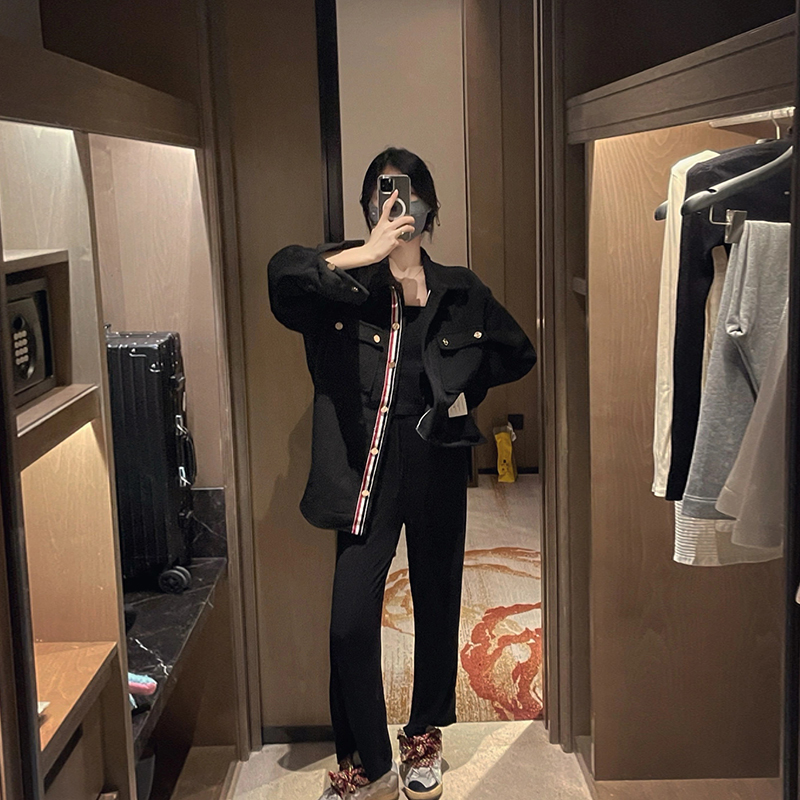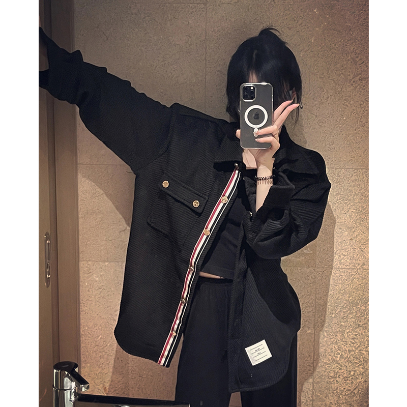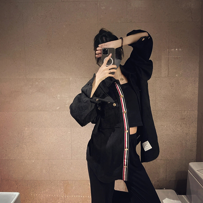 黑色襯衫外套女春秋季2023新款小香風高級設計感小眾襯衫chic上衣